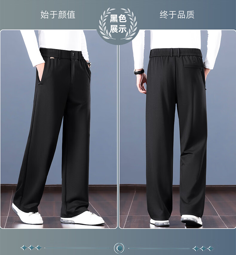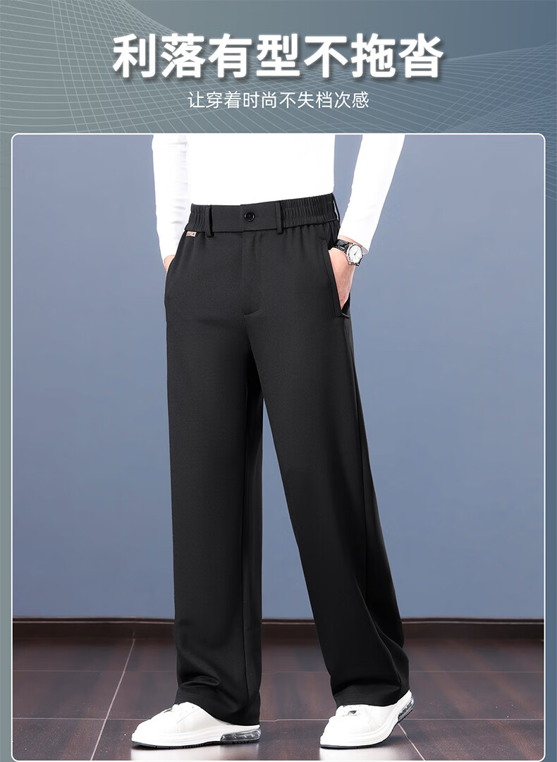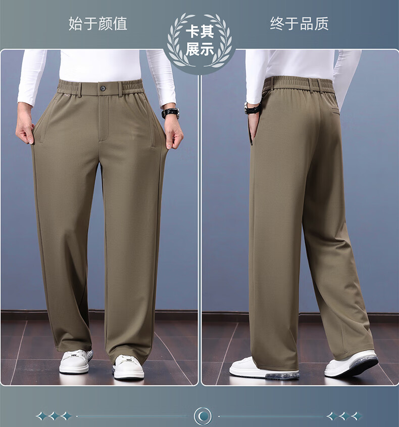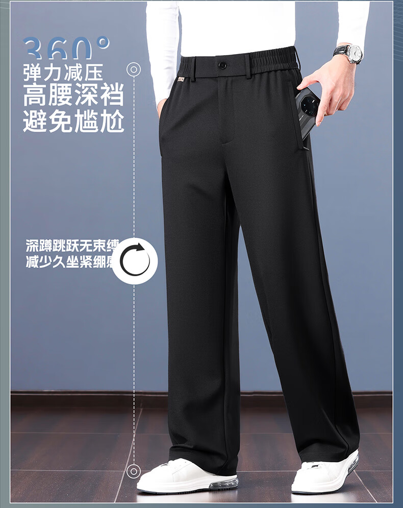 JEEP high-end four-way elastic men's sports pants autumn and winter loose straight leg middle-aged and elderly dad's velvet wide-leg casual pants dark blue high-end four-way stretch XL recommended 142-152 Jin Jin equals 0.5 kg