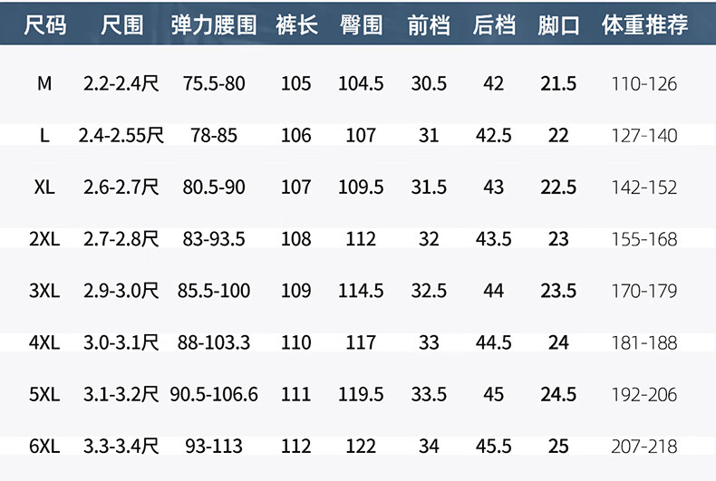 Outseam (cm) 99 cm 101.5 cm 104 cm 106.5 cm 109 cm