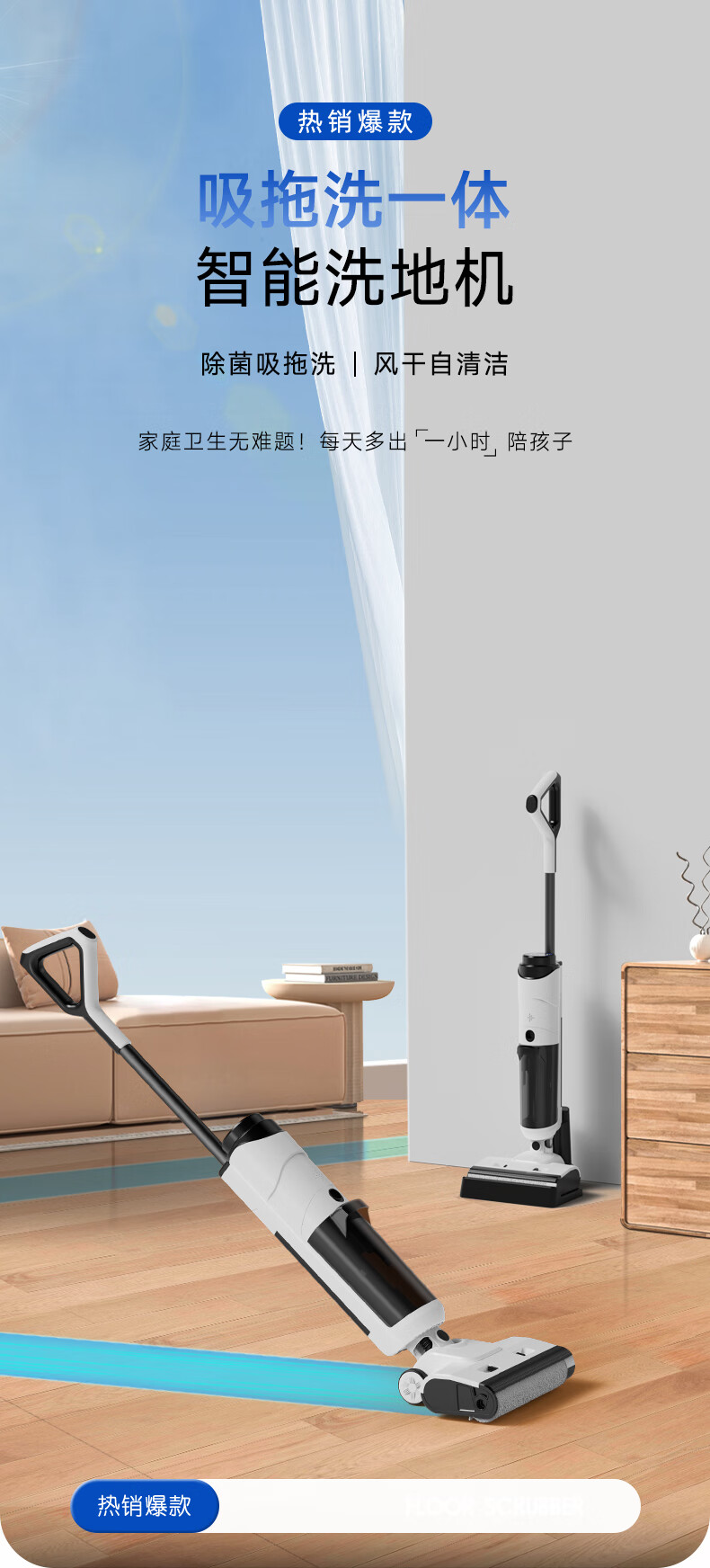 BMOI Fuwan floor washing machine is the same type of floor washing machine, suction and mopping, all-in-one robot mopping, three-in-one household sweeping, vacuuming, automatic cleaning, electric mop, can lie flat and explore the bottom, 30Lite 220000 suction power + 0 welt