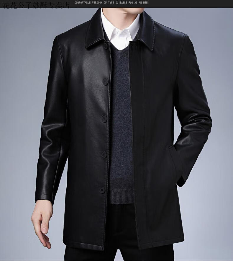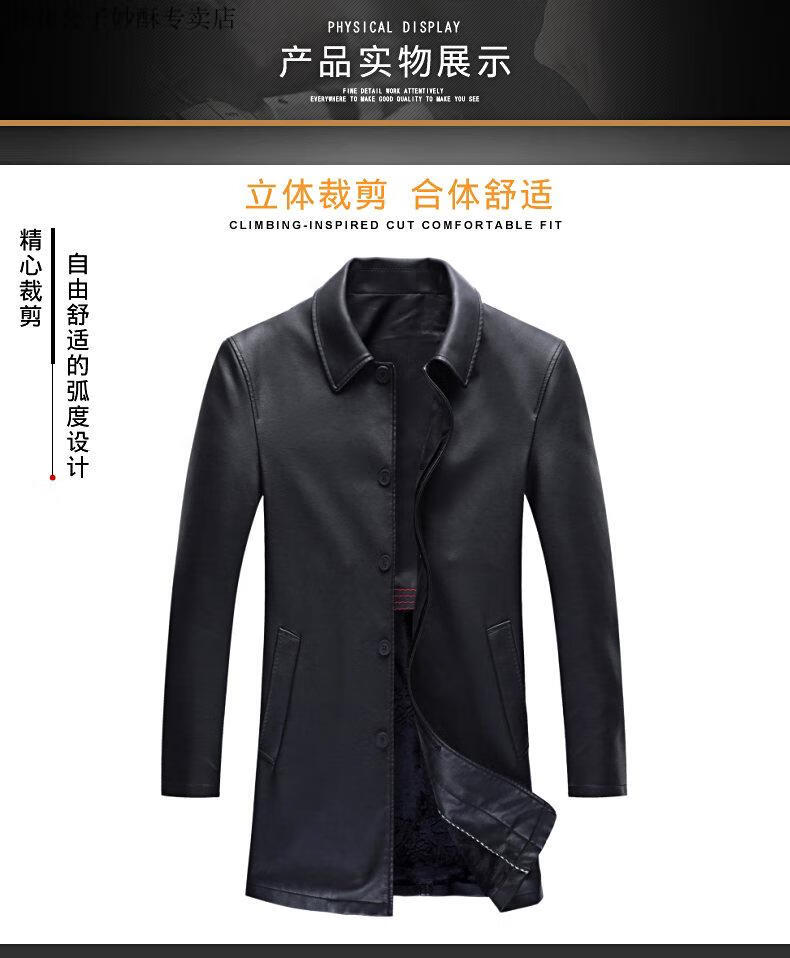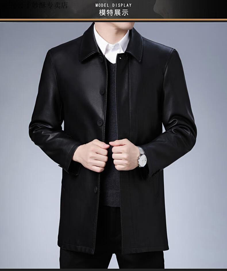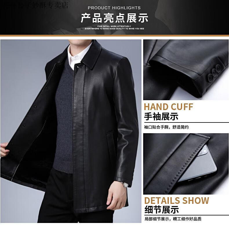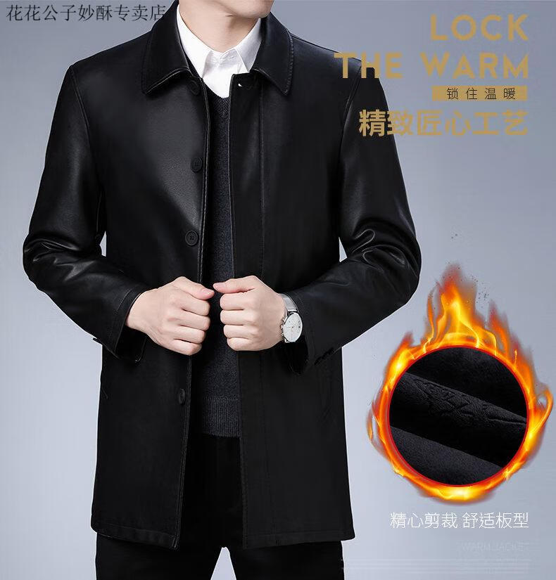 Playboy (PLAYBOY) leather jacket men's new winter business velvet long-sleeved jacket men's casual versatile mid-length warm windbreaker men's black M 170