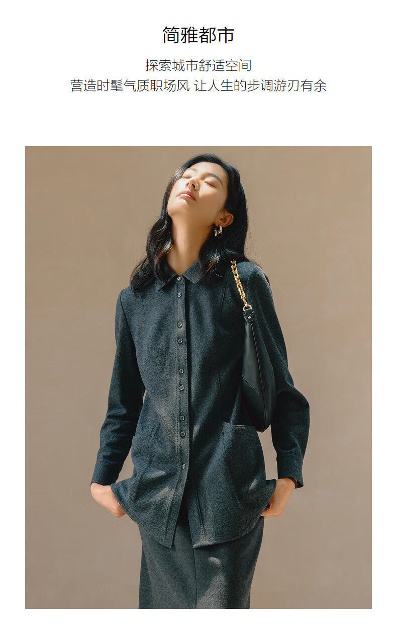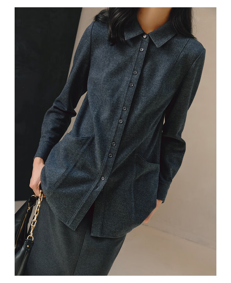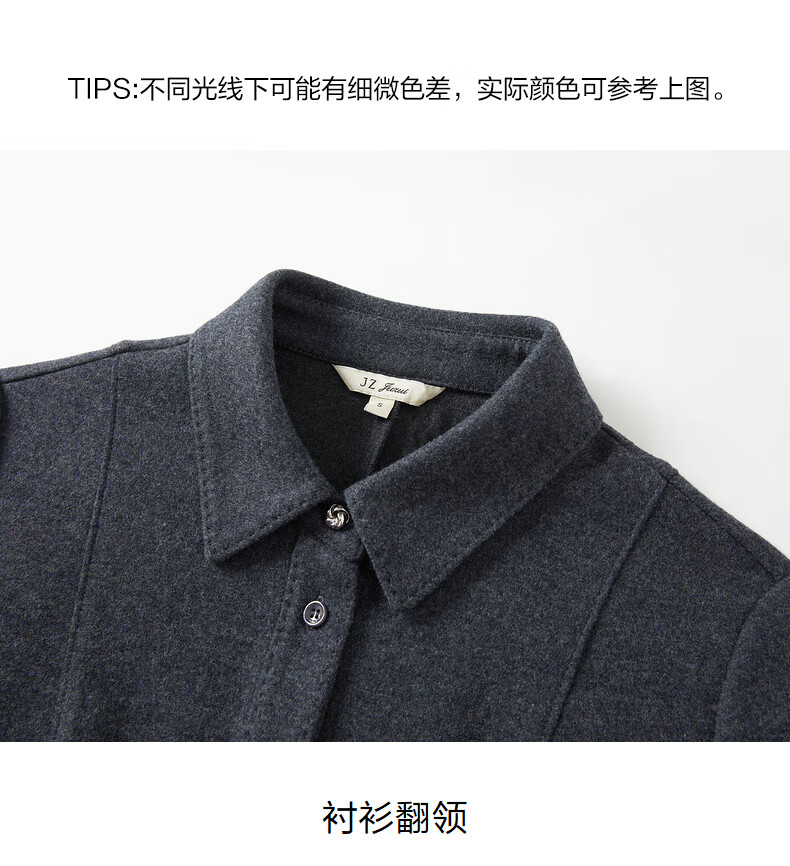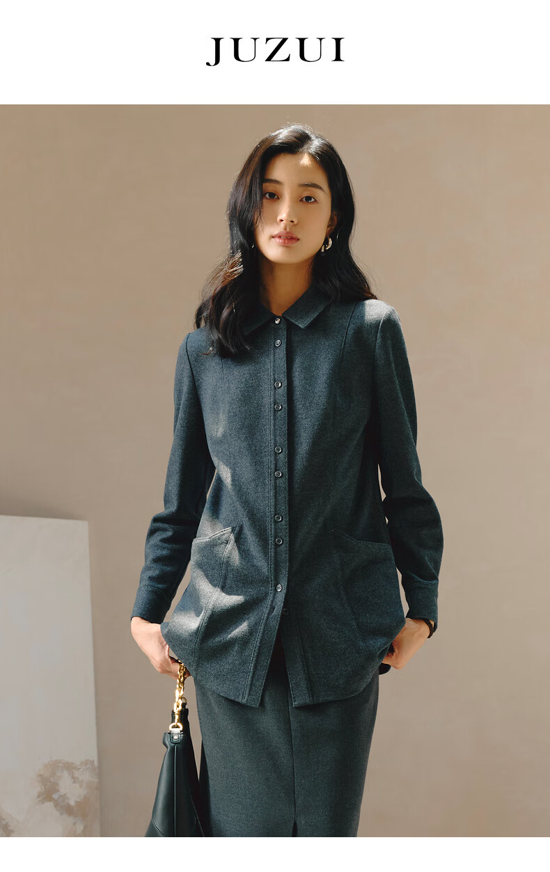 JUZUI Shopping Mall Same Style Zhimei Workplace Commuting Wool Shirt Women 2024 Winter Model JWED60108 Dark Gray L