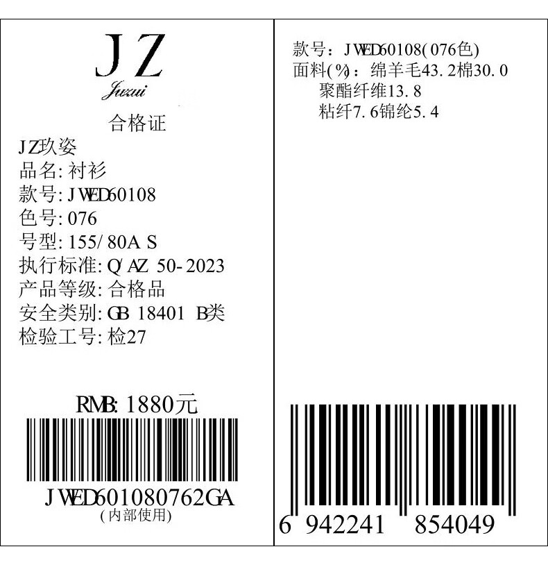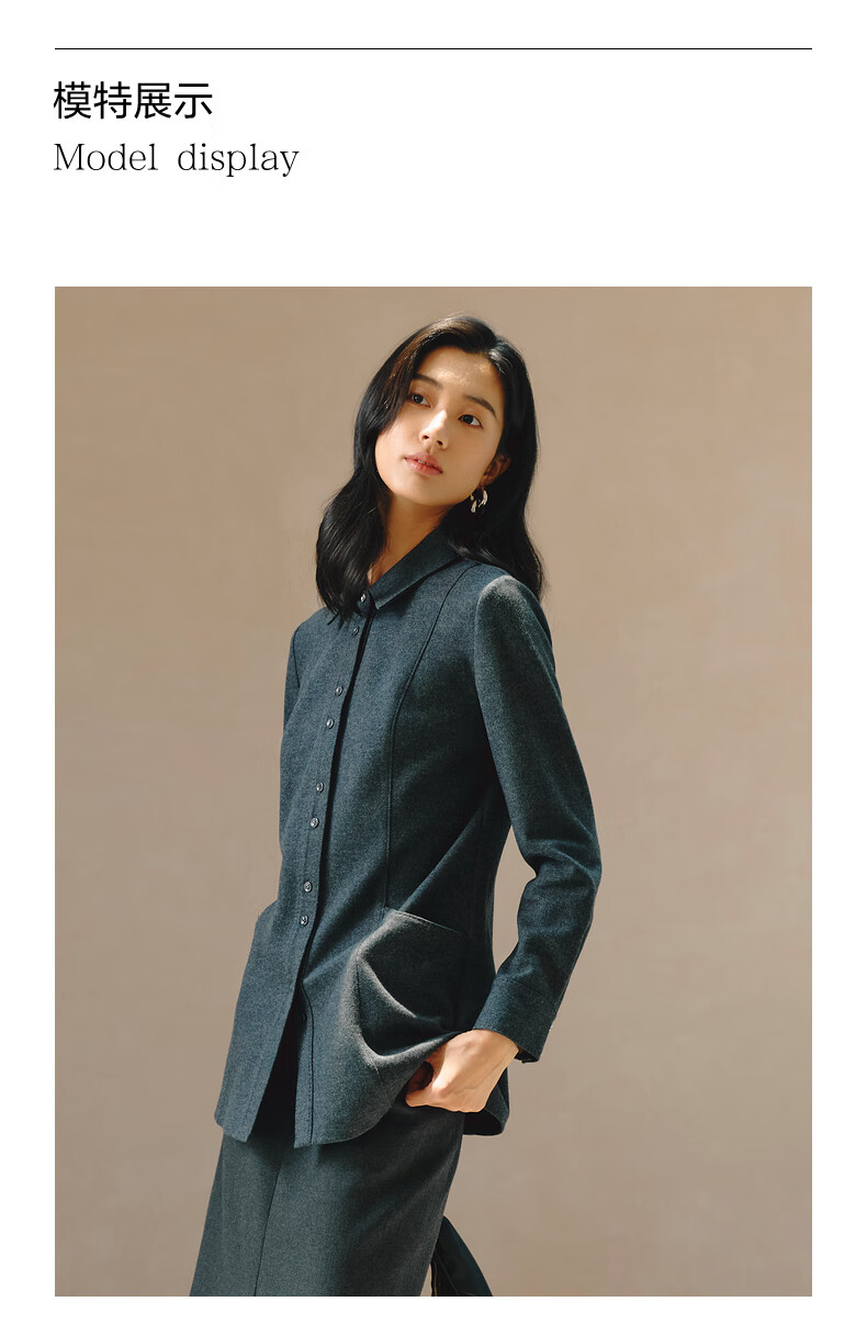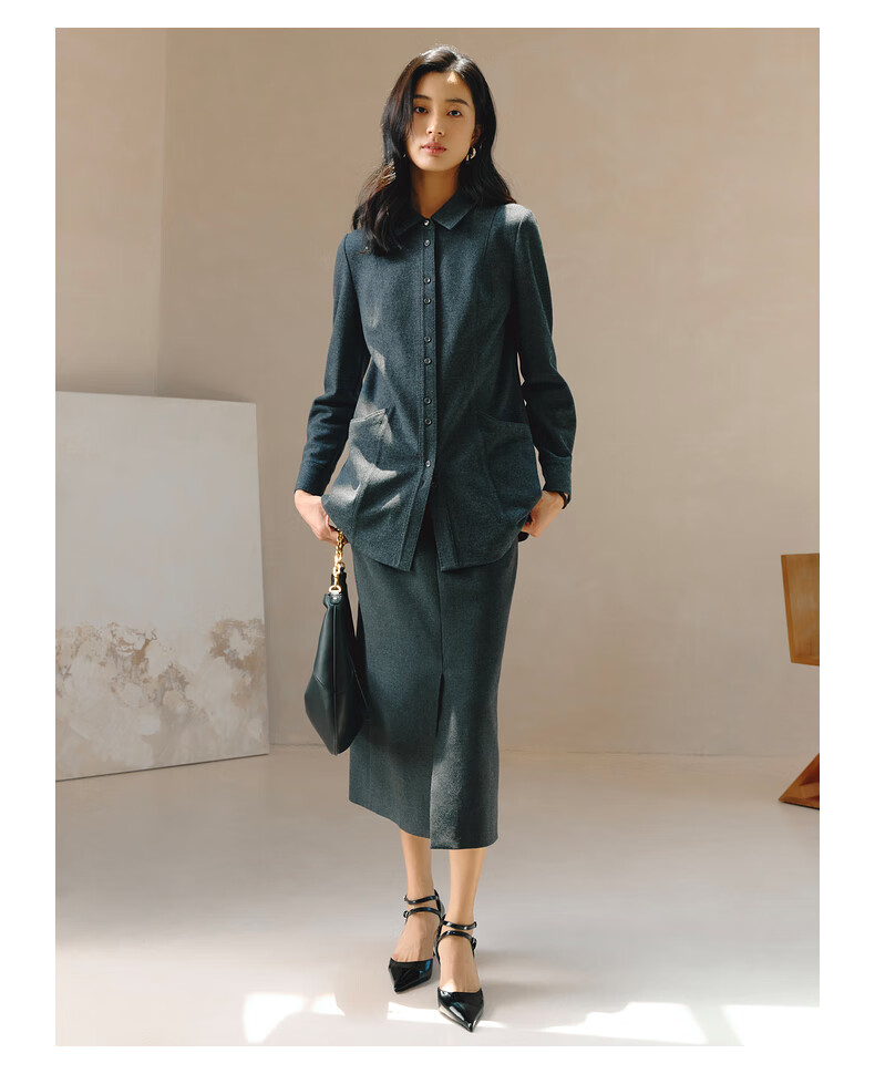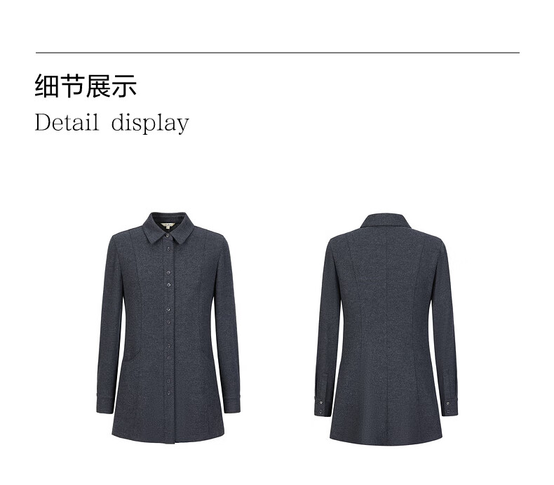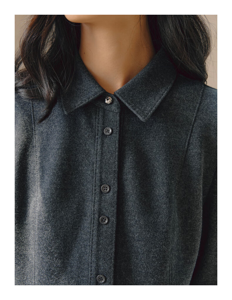 JUZUI Shopping Mall Same Style Zhimei Workplace Commuting Wool Shirt Women 2024 Winter Model JWED60108 Dark Gray L