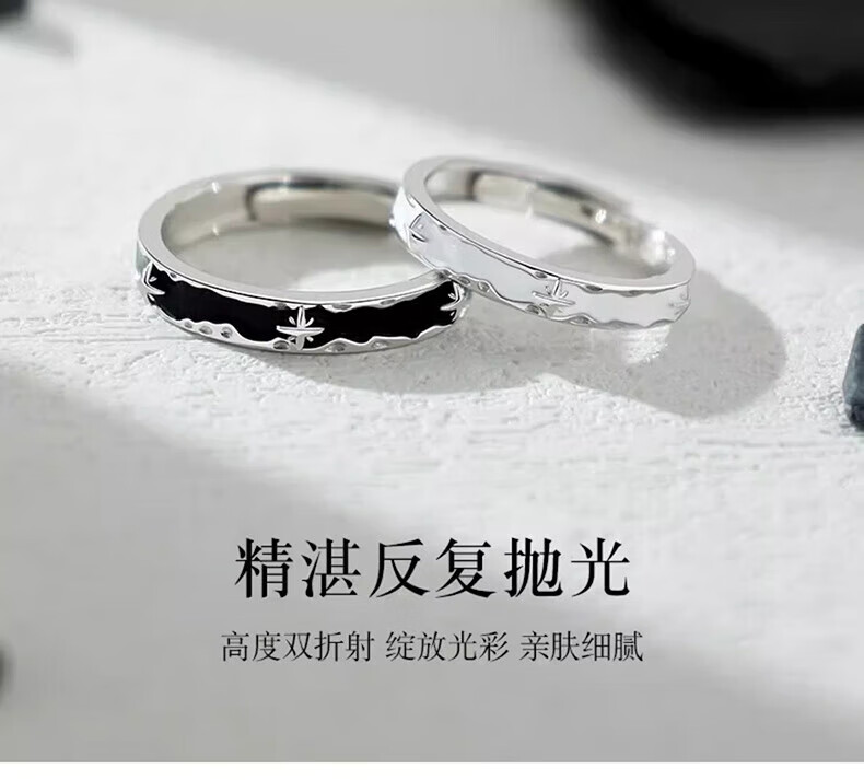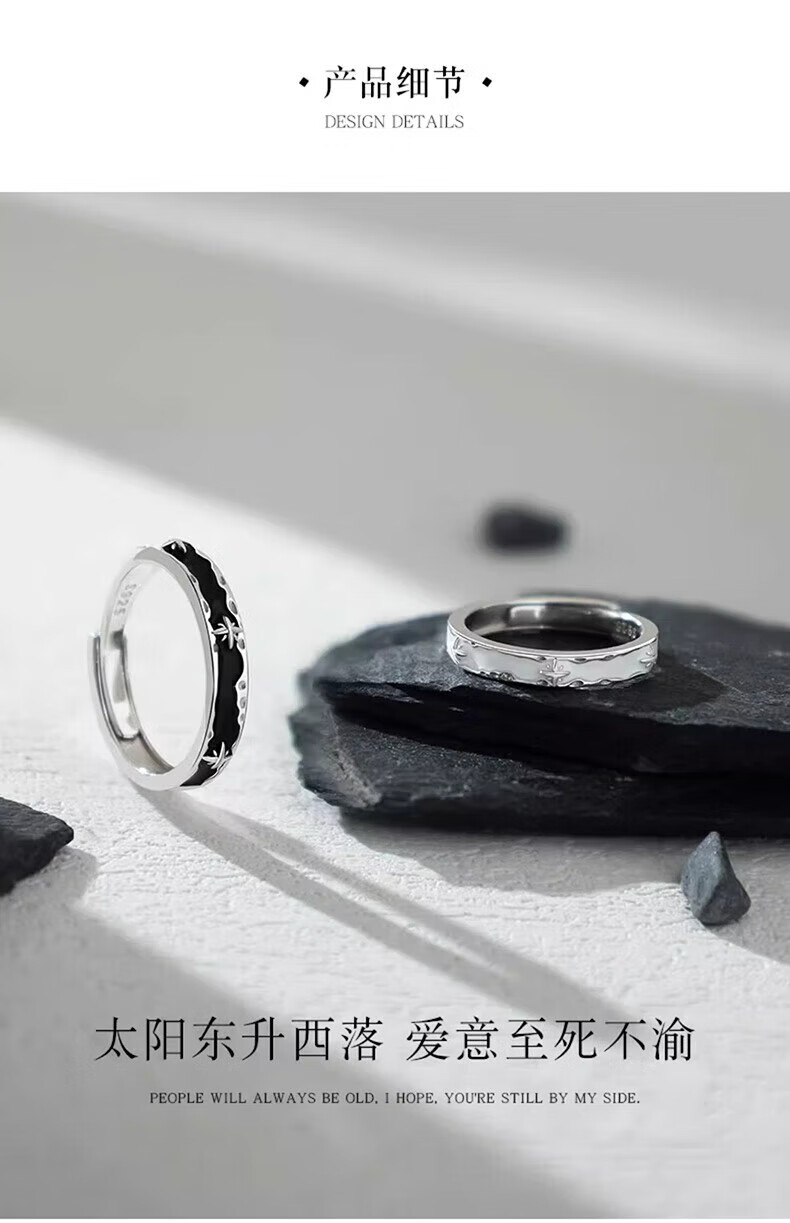 Ji Sifan's light luxury couple's ring, fashionable ring, wedding, proposal, anniversary, birthday, Valentine's Day, high-end practical gift for girlfriend, Morning and Dusk Pair of Rings