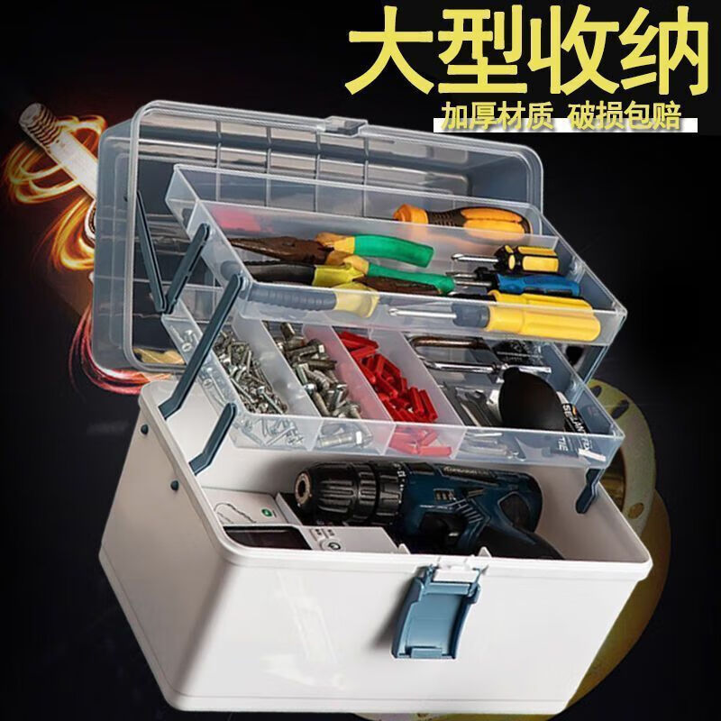 Fengxi multifunctional hardware car electrician multi-layer folding storage box three-layer tool box industrial grade home art box thick blue