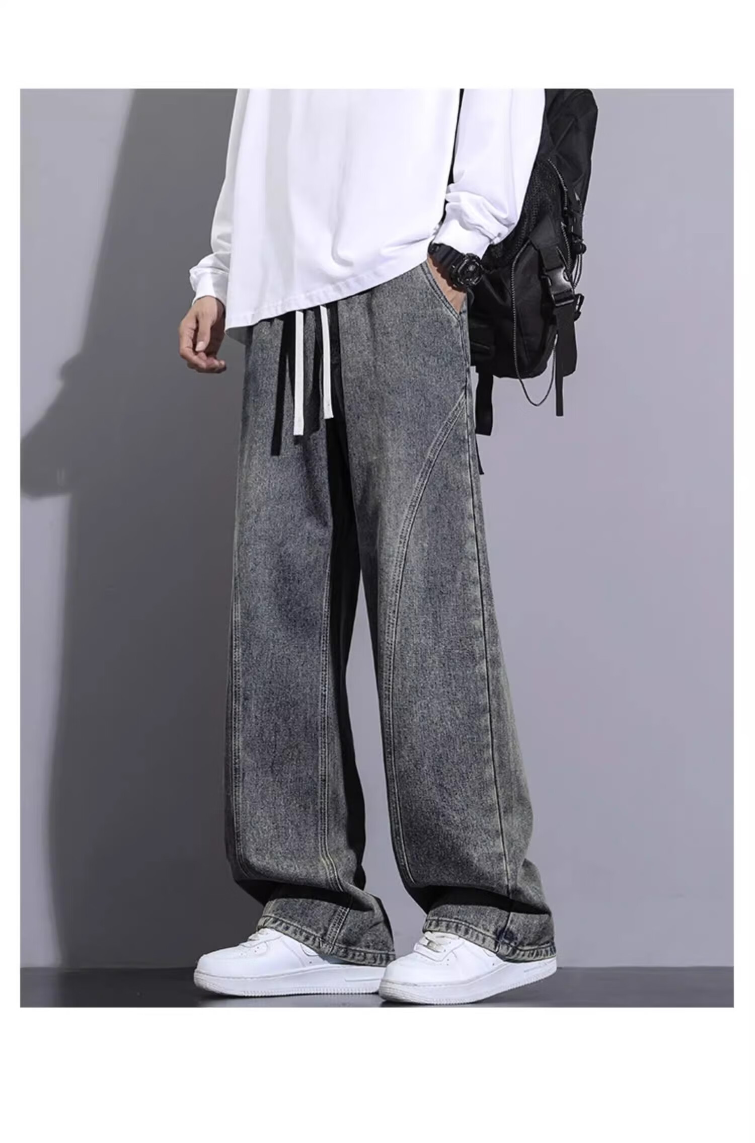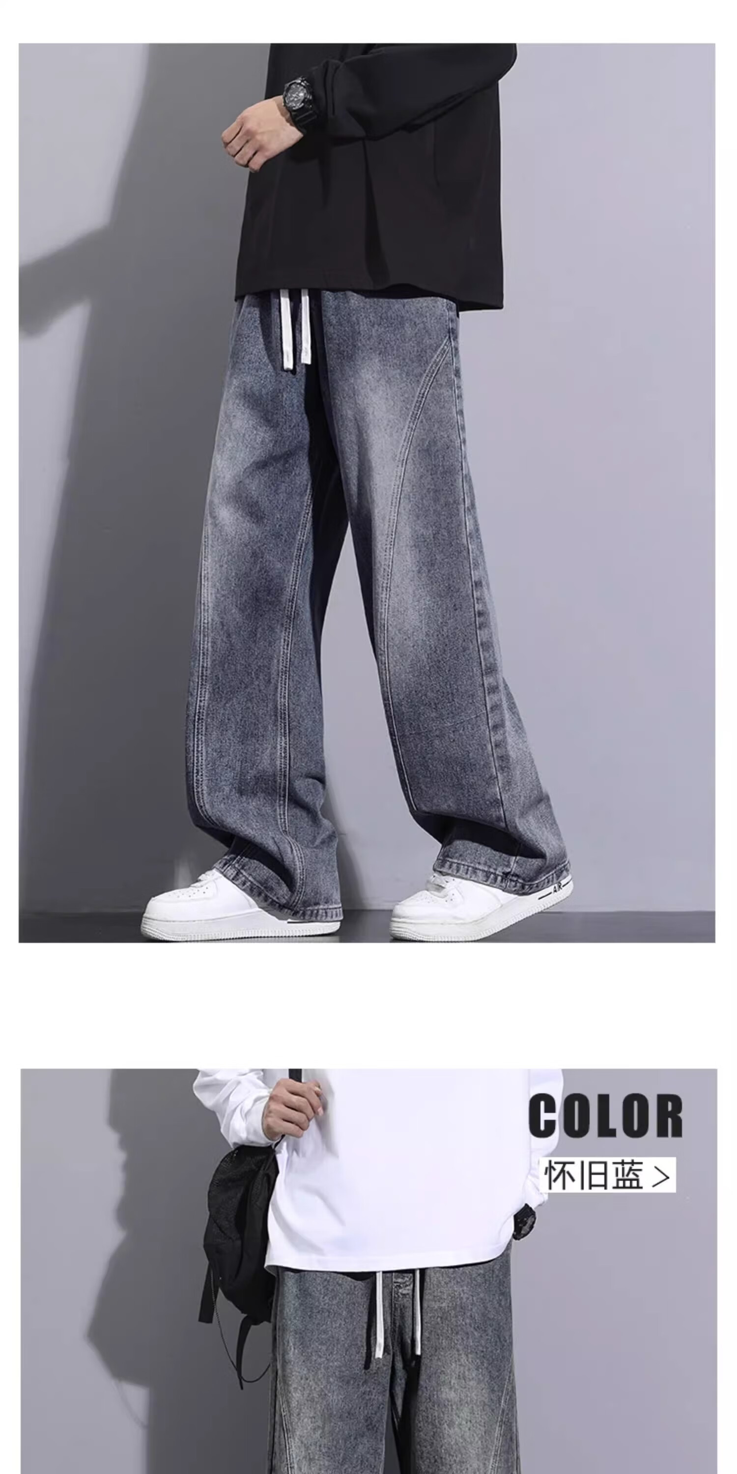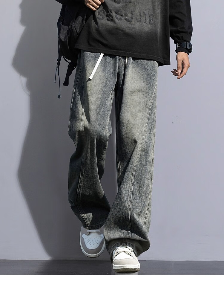 Woodpecker Jeans Men's Autumn New Retro Straight American Casual Pants Men's Trendy Brand High Street Casual All-match Scimitar Pants 160 Nostalgic Blue XL (Recommended 125-150 Jin Jin equals 0.5 kg)