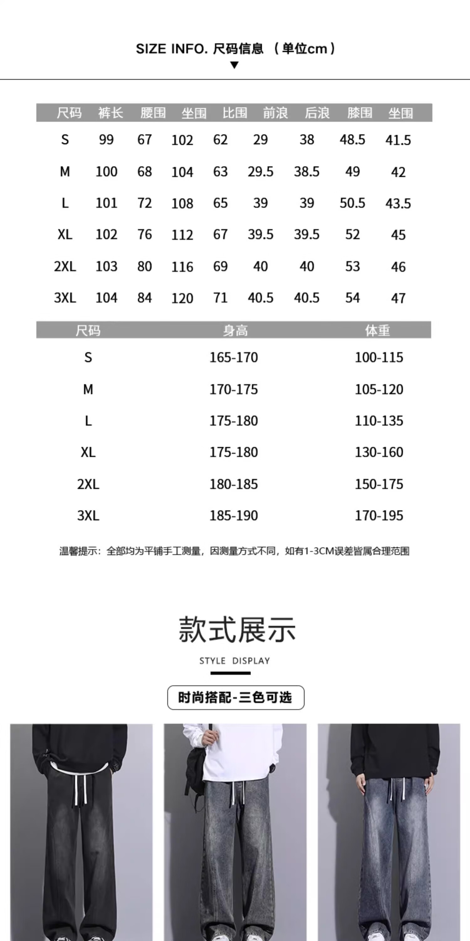 Outseam (cm) 99 cm 101.5 cm 104 cm 106.5 cm 109 cm
