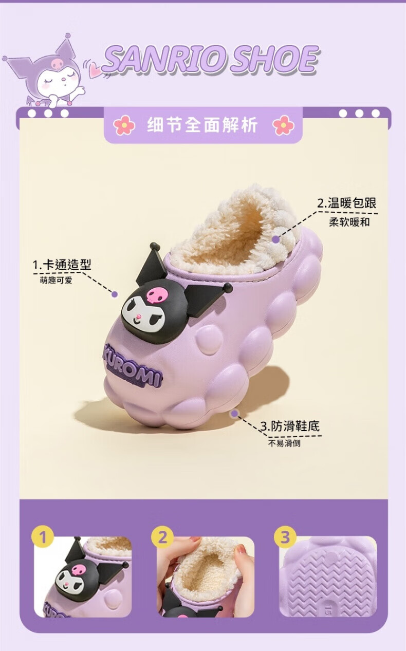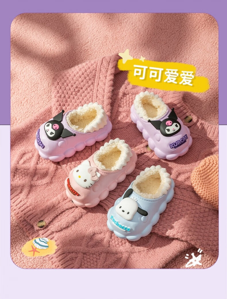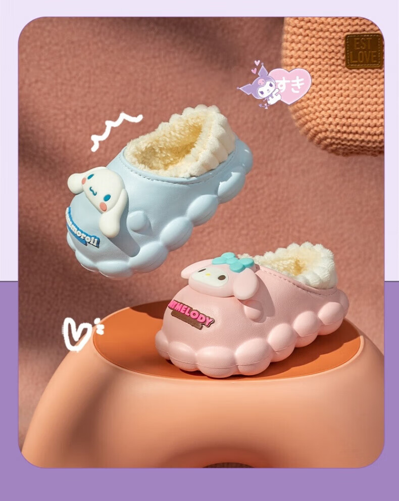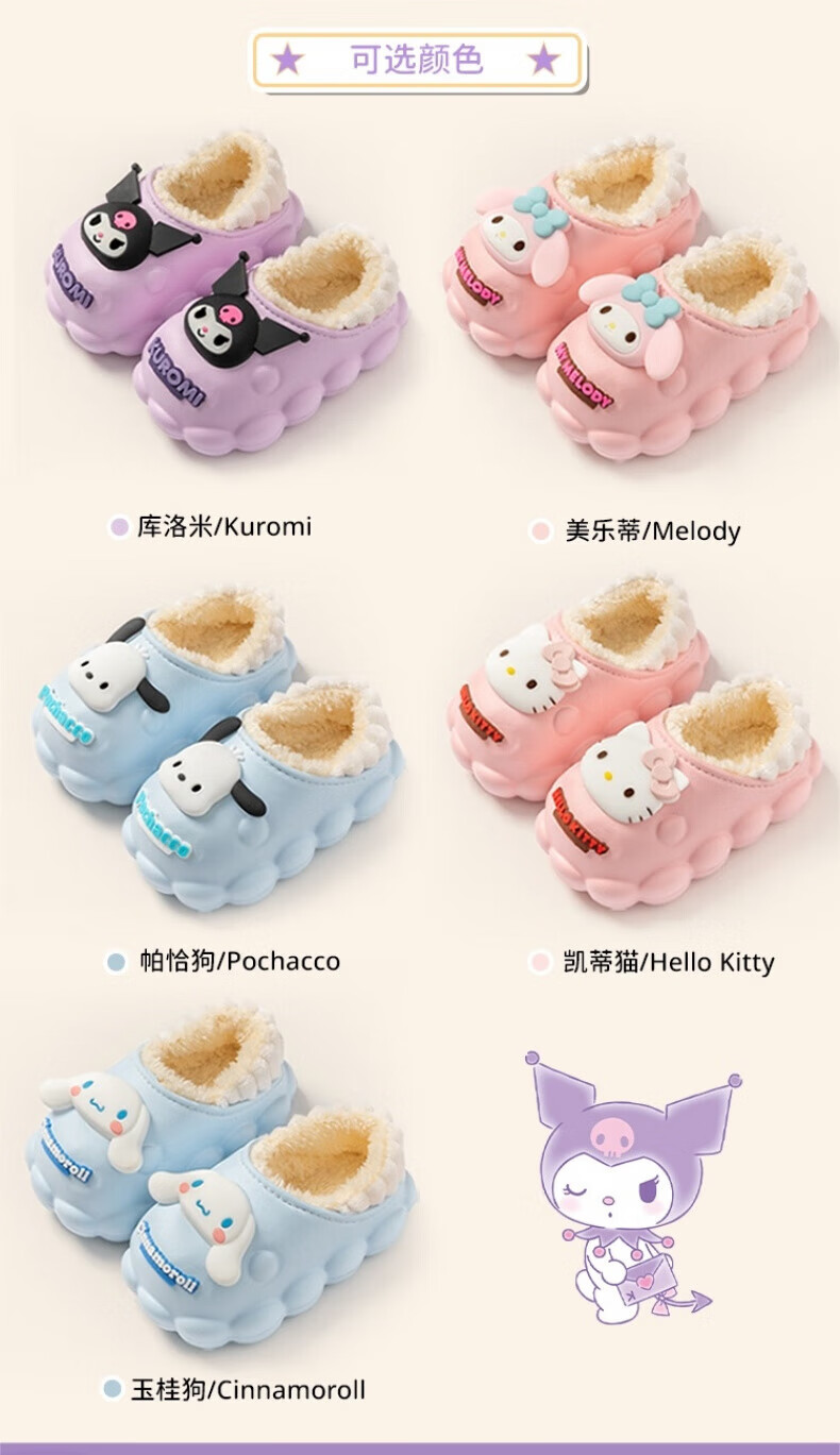 Skingcond Japan Kuromi children's cotton slippers waterproof and non-slip girls winter baby indoor plus velvet outer wear thermal bag Jade cinnamon dog waterproof and non-slip thickened warm plus velvet 19 140 inner length about 12.5CM18/yard