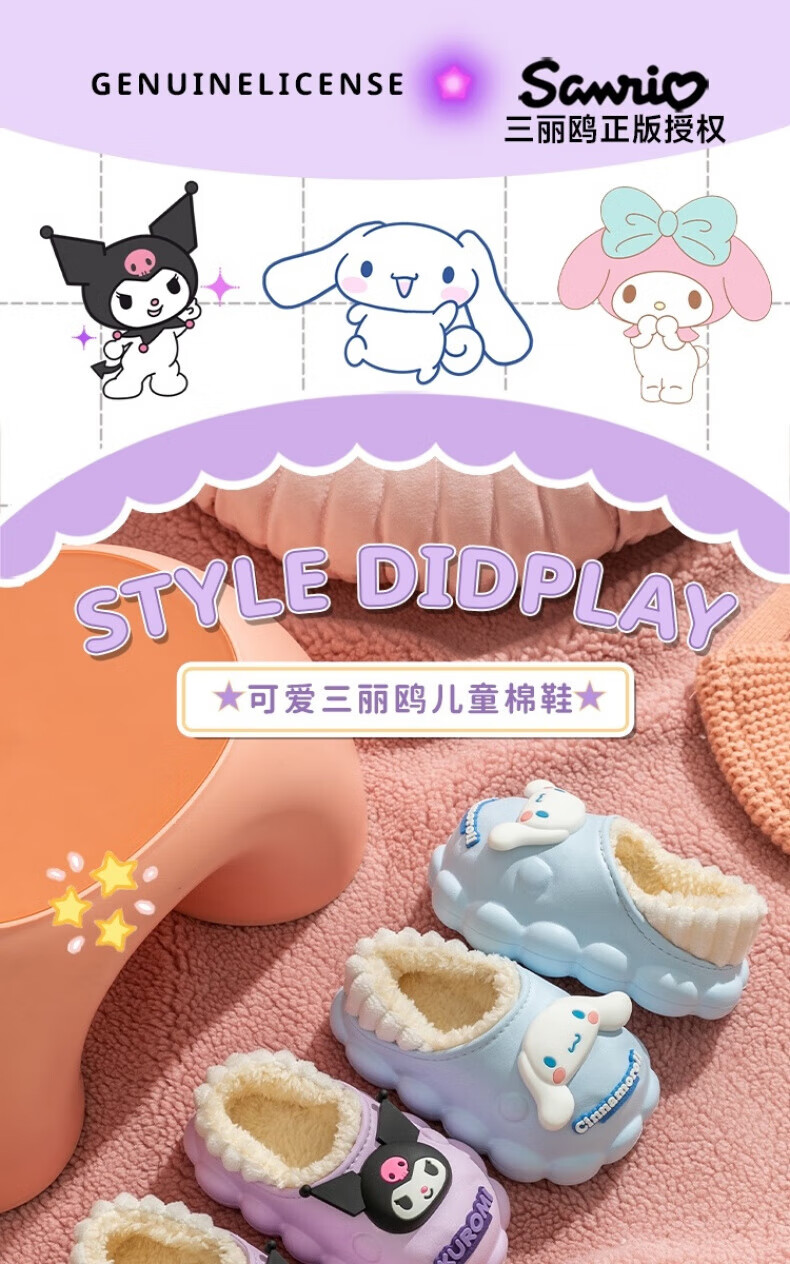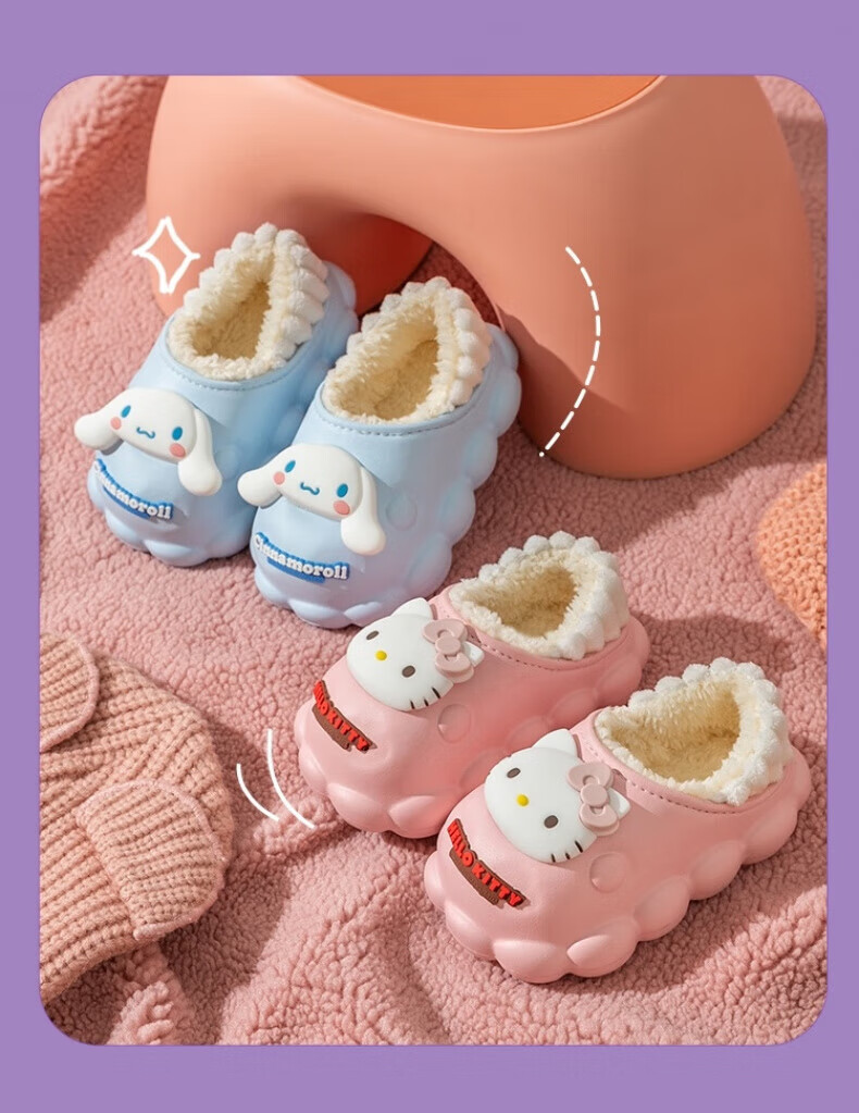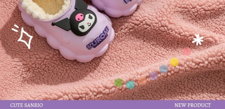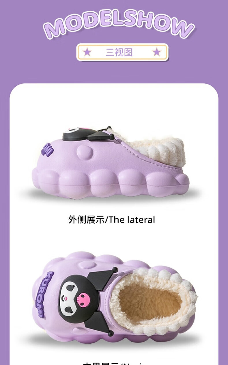 Skingcond Japan Kuromi children's cotton slippers waterproof and non-slip girls winter baby indoor plus velvet outer wear thermal bag Jade cinnamon dog waterproof and non-slip thickened warm plus velvet 19 140 inner length about 12.5CM18/yard