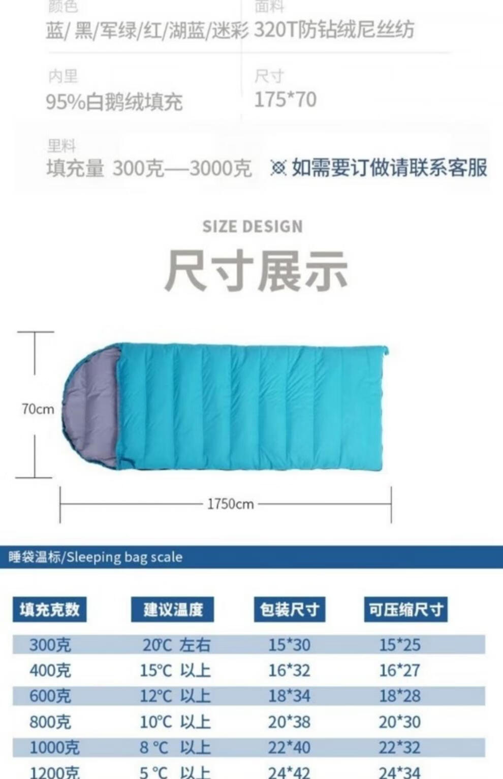 Jatu goose down outdoor anti-kick children's sleeping bag ultra-light camping thickened and warm 1000g 1