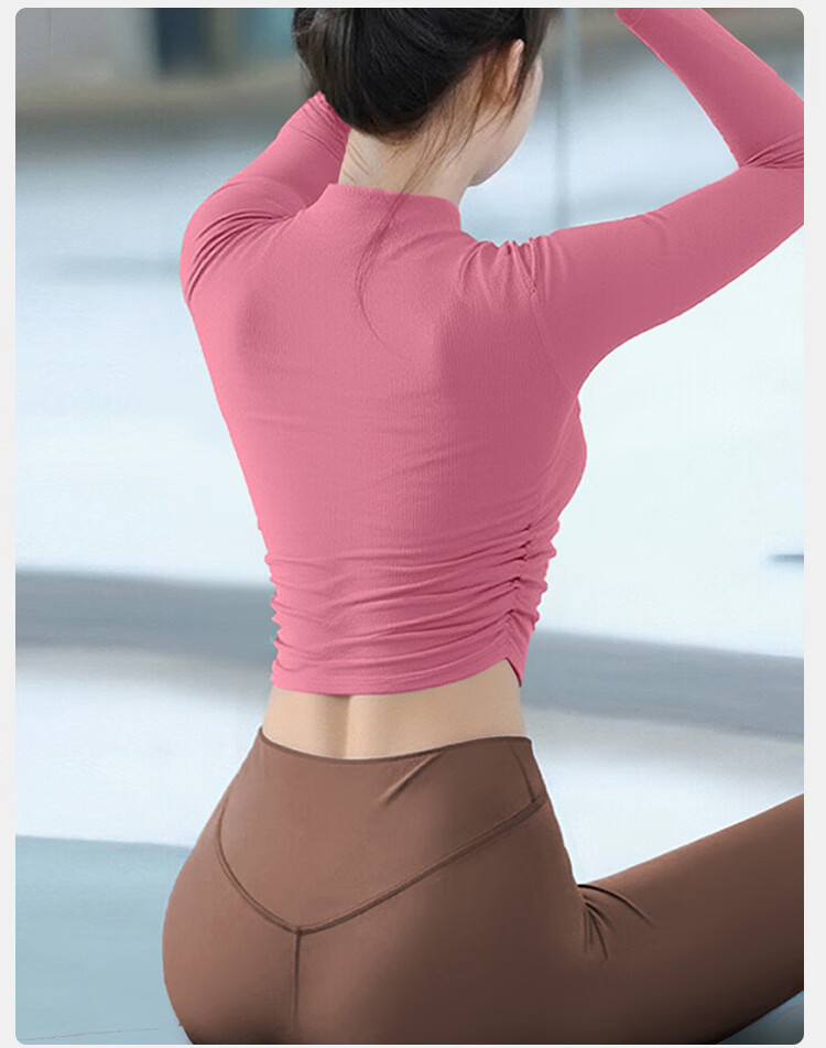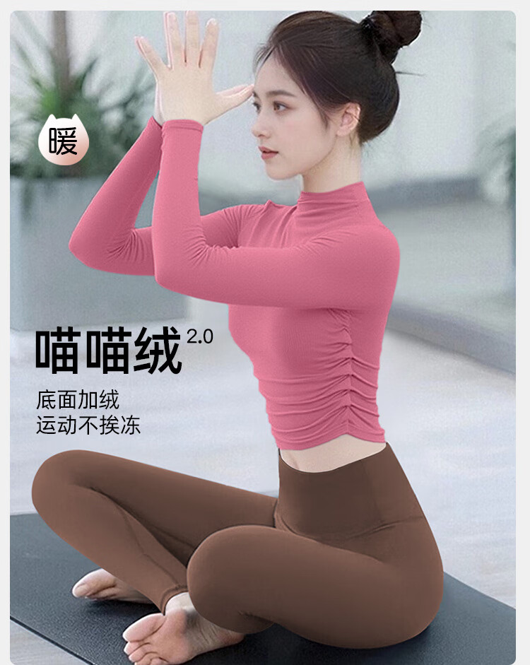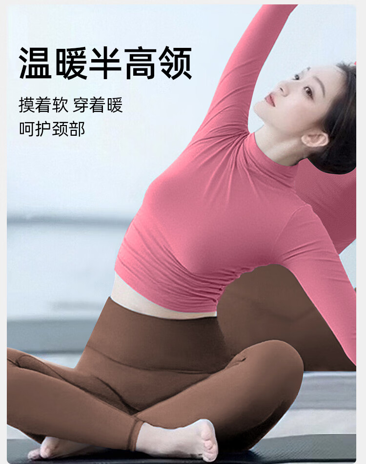 Shuangxiu plus velvet yoga suit for women 2025 new style half turtleneck sports top Pilates training fitness long-sleeved autumn and winter pink velvet top M 100-115
