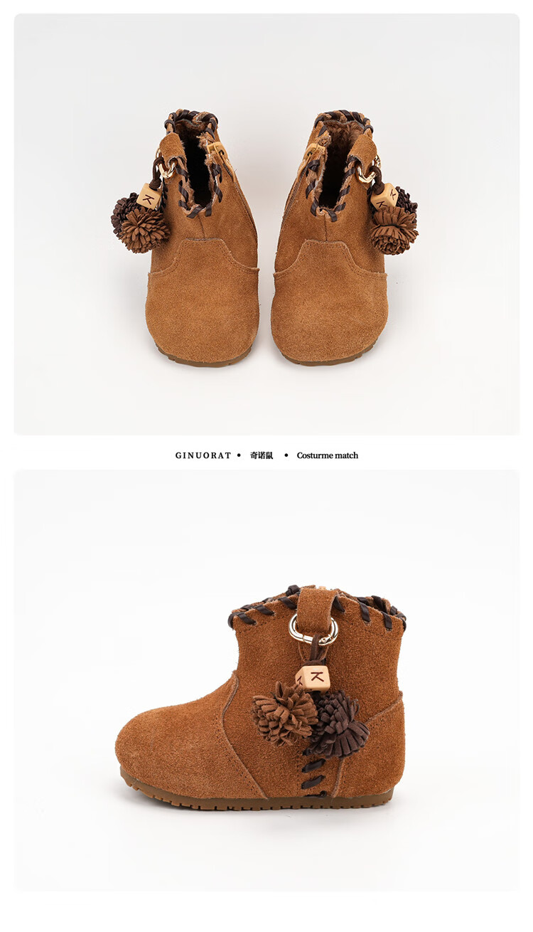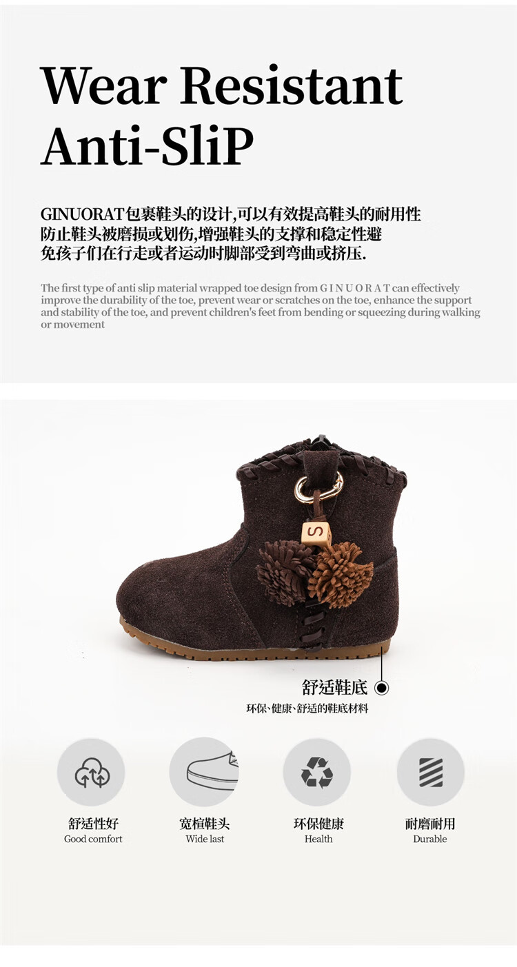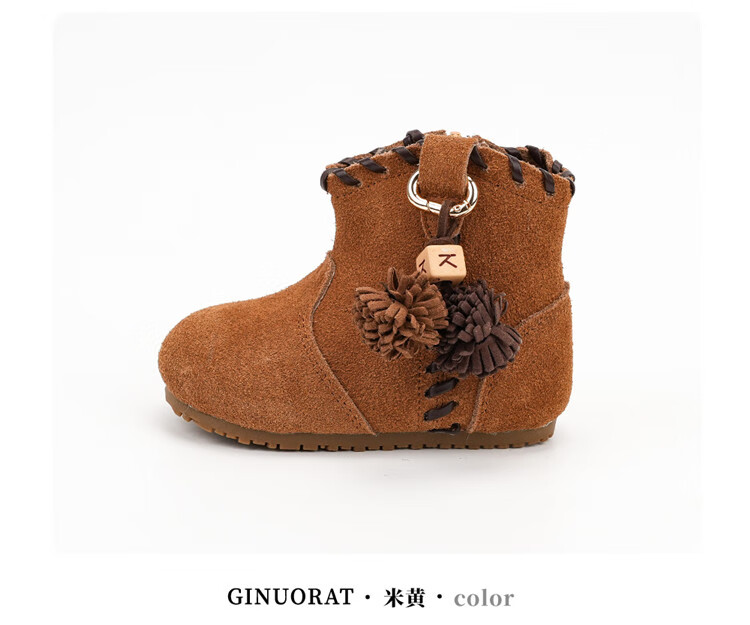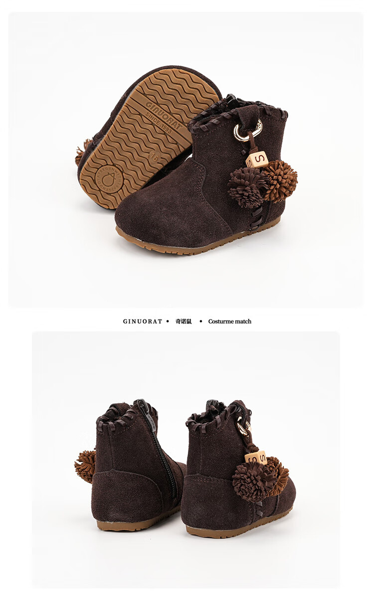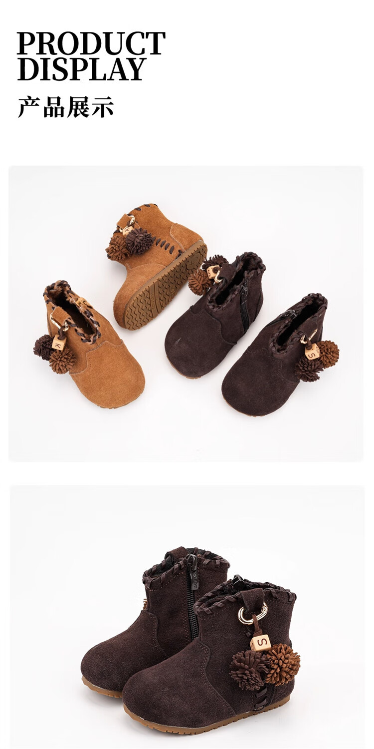 Chino Mouse Official Genuine Children's Cotton Shoes Winter New Velvet Warm Cotton Boots Girls Short Boots Baby Toddler Shoes Khaki Velvet Size 16 (Suitable for Feet Length 11.5-12.0cm)