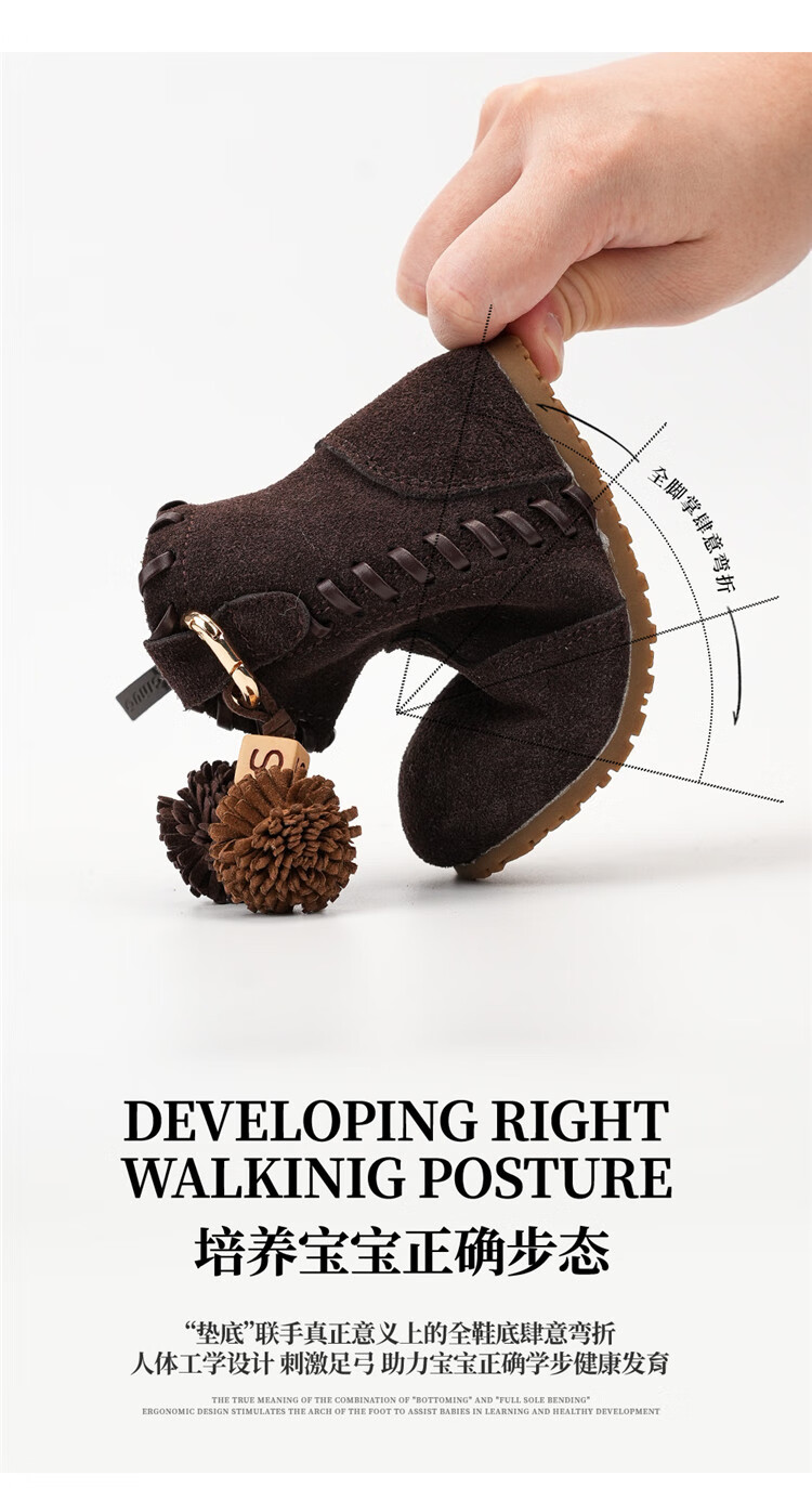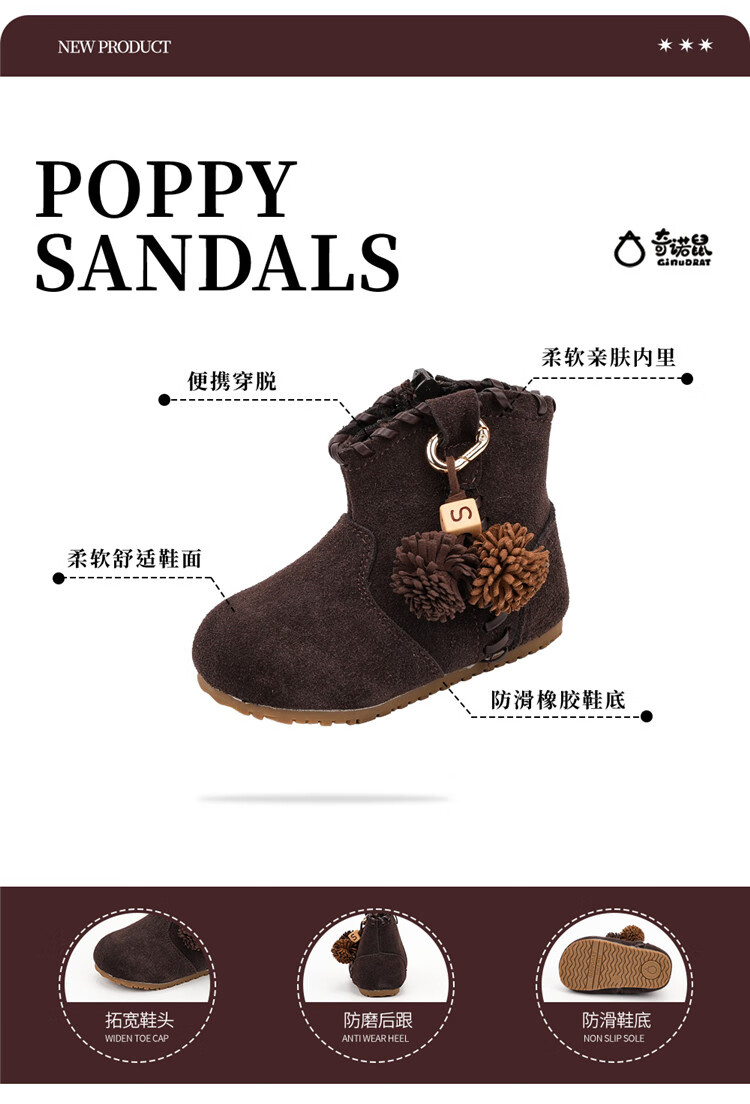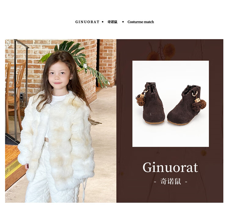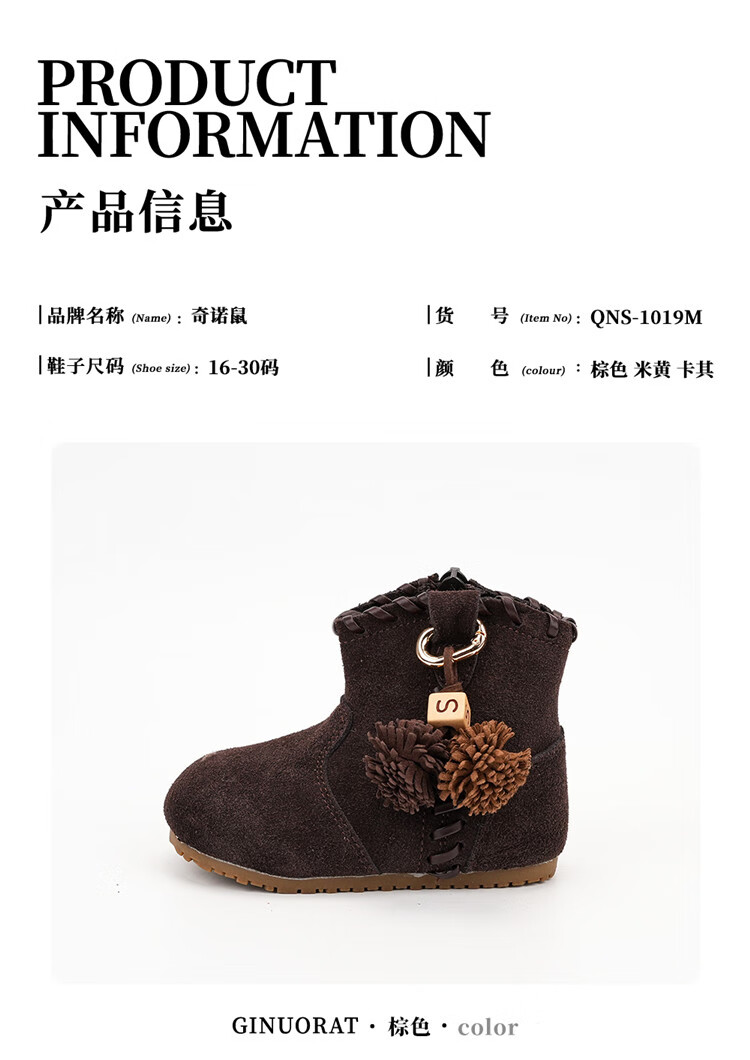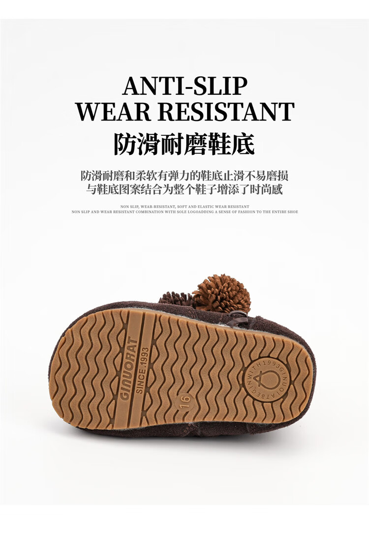 Chino Mouse Official Genuine Children's Cotton Shoes Winter New Velvet Warm Cotton Boots Girls Short Boots Baby Toddler Shoes Khaki Velvet Size 16 (Suitable for Feet Length 11.5-12.0cm)