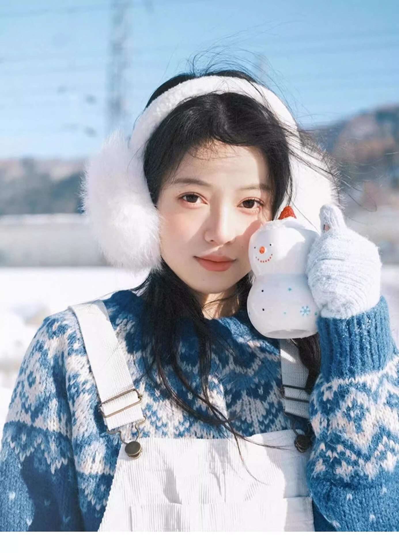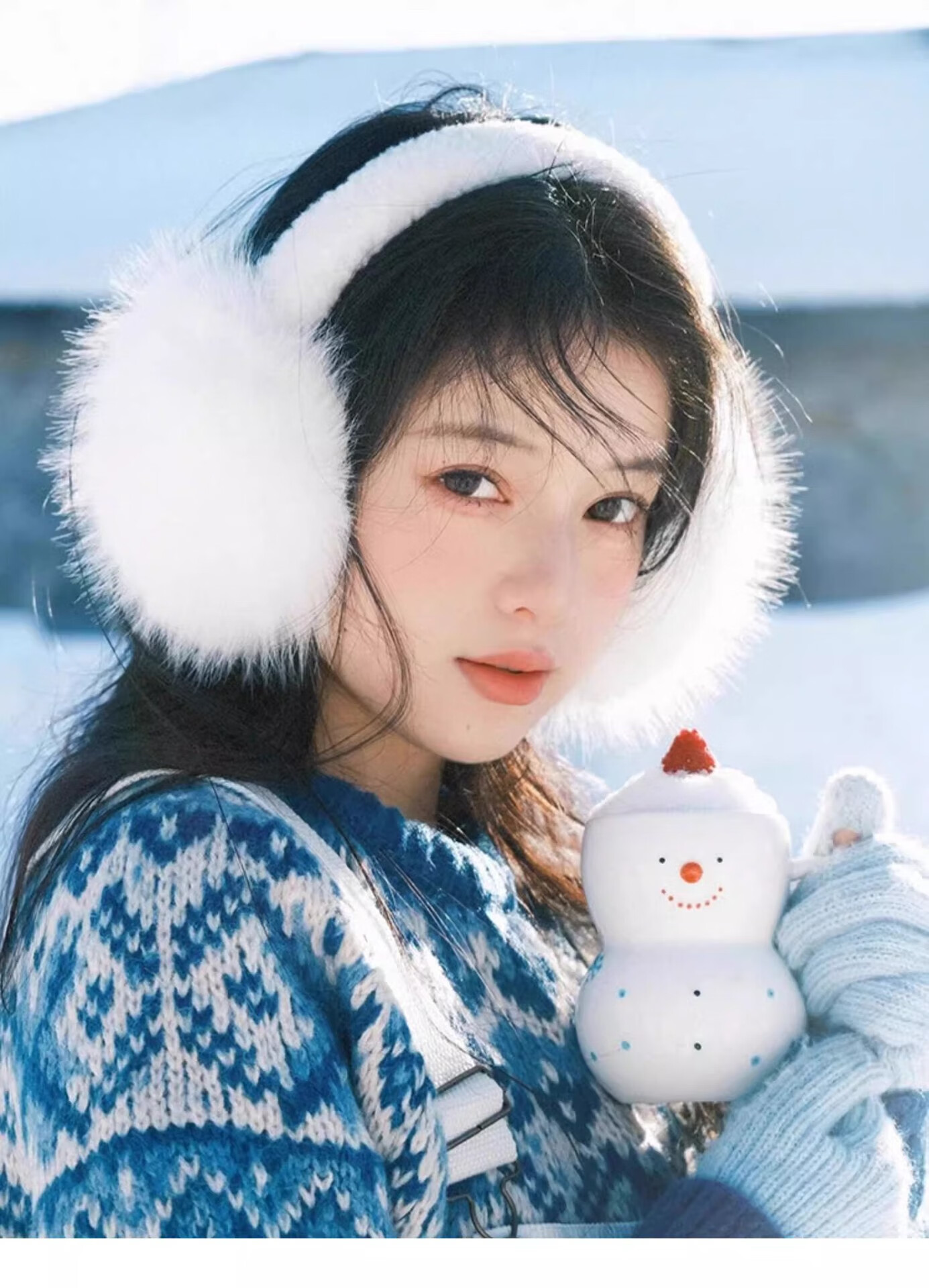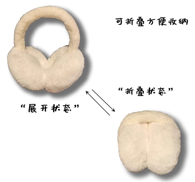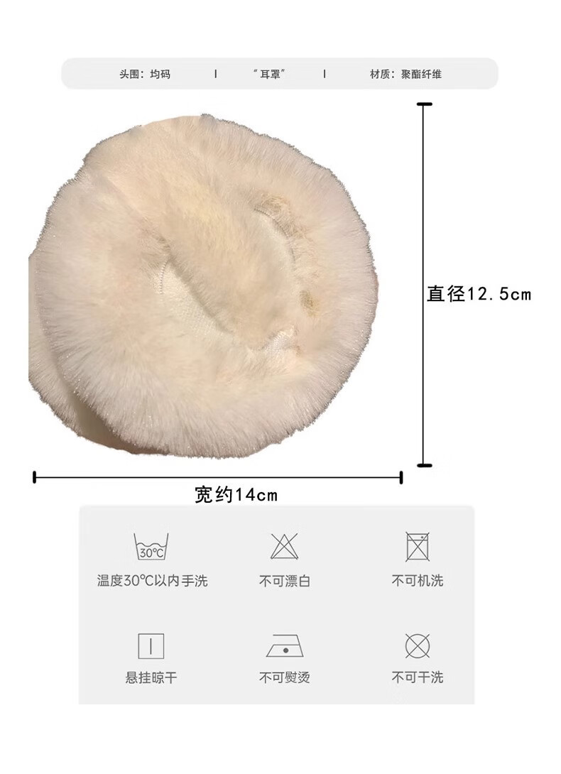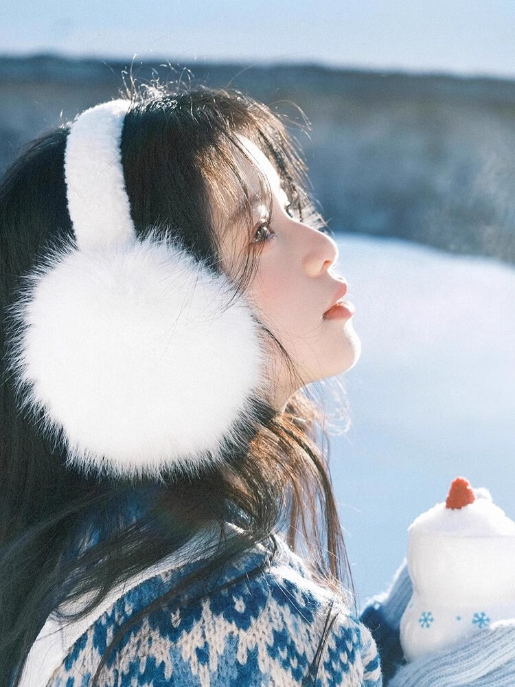 JIOESC earmuffs, warm women's Korean style earmuffs, winter cycling white plush earmuffs, anti-freeze, cute and versatile earmuffs for women, white, diameter 12.5cm, width 14cm 1 piece