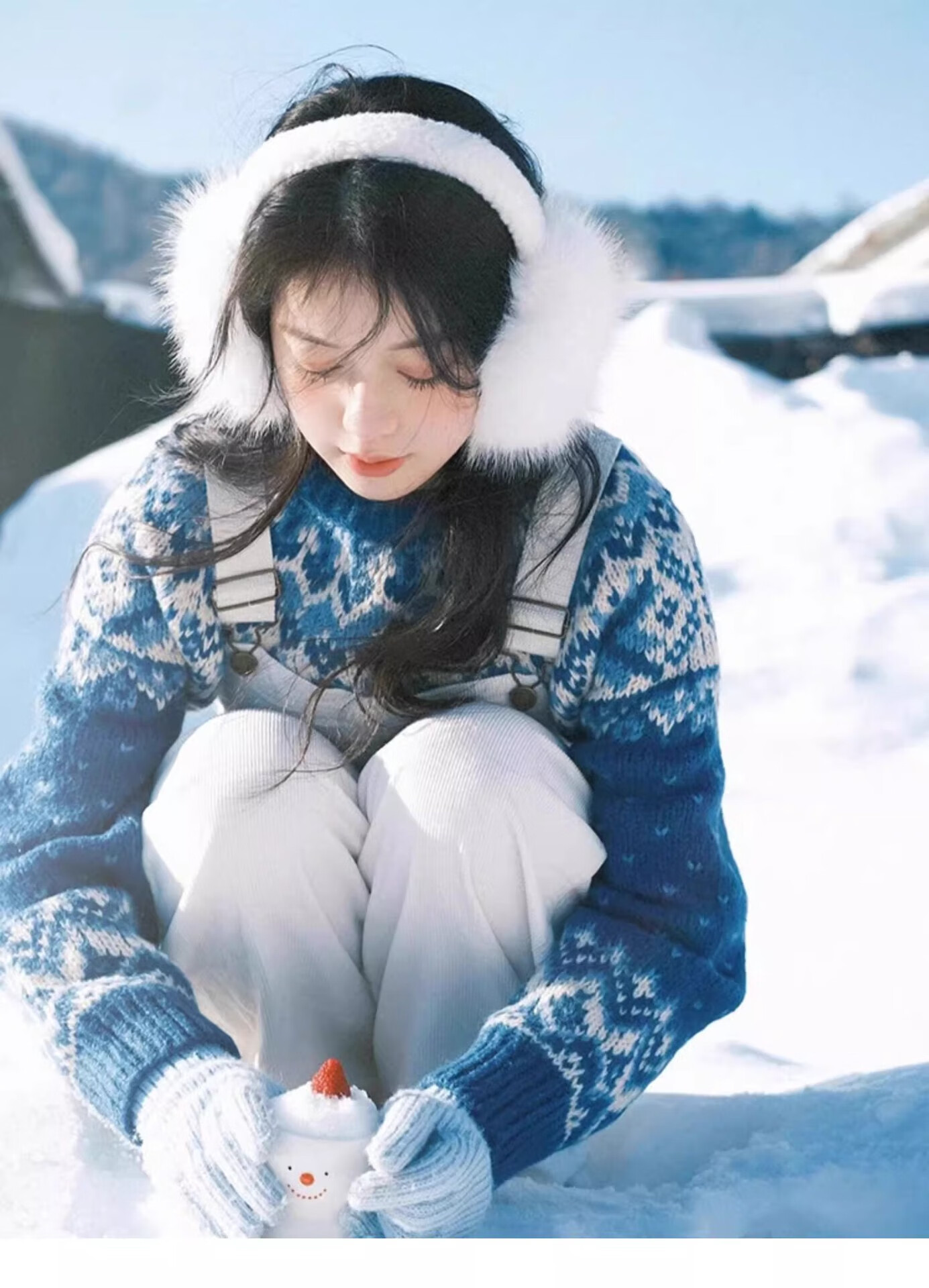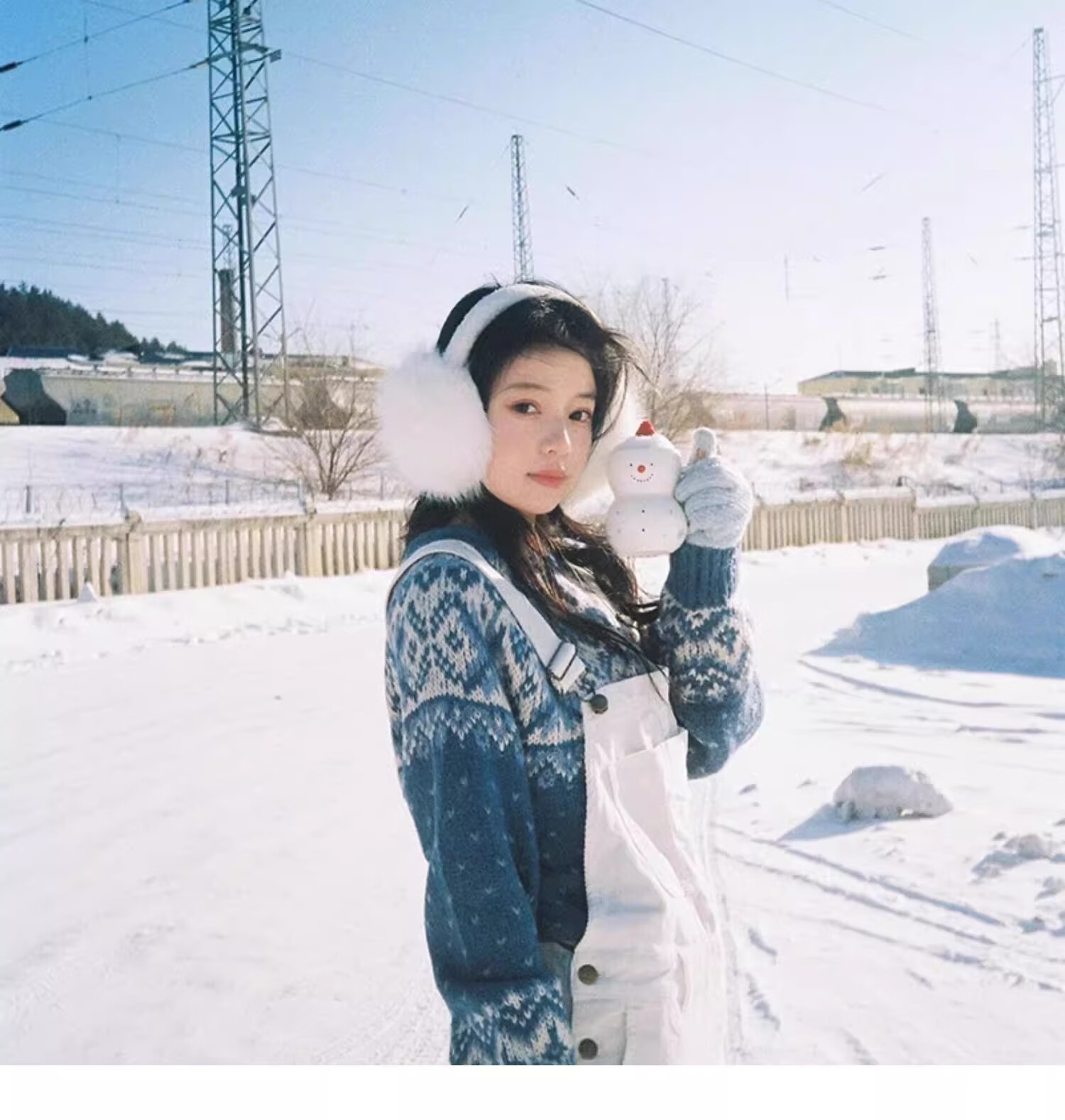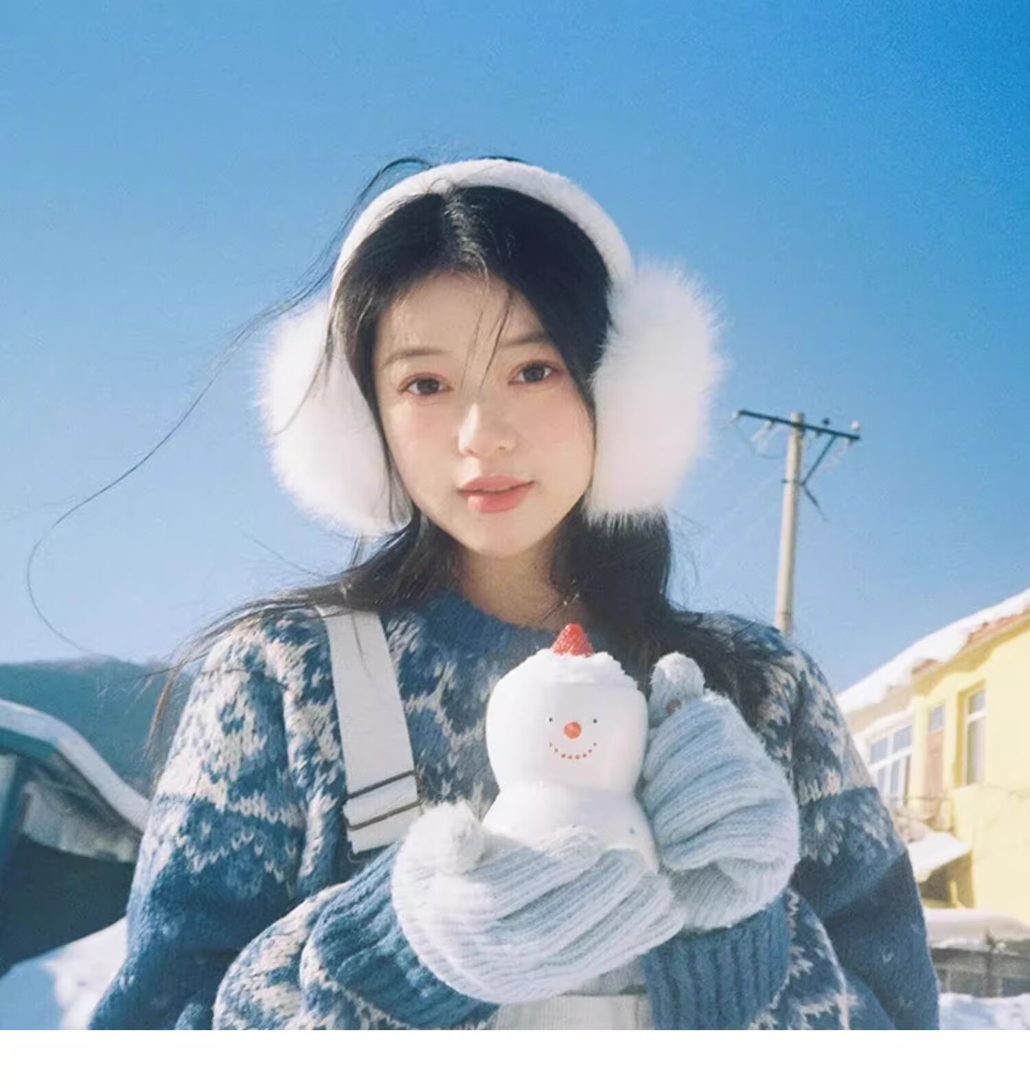 JIOESC earmuffs, warm women's Korean style earmuffs, winter cycling white plush earmuffs, anti-freeze, cute and versatile earmuffs for women, white, diameter 12.5cm, width 14cm 1 piece