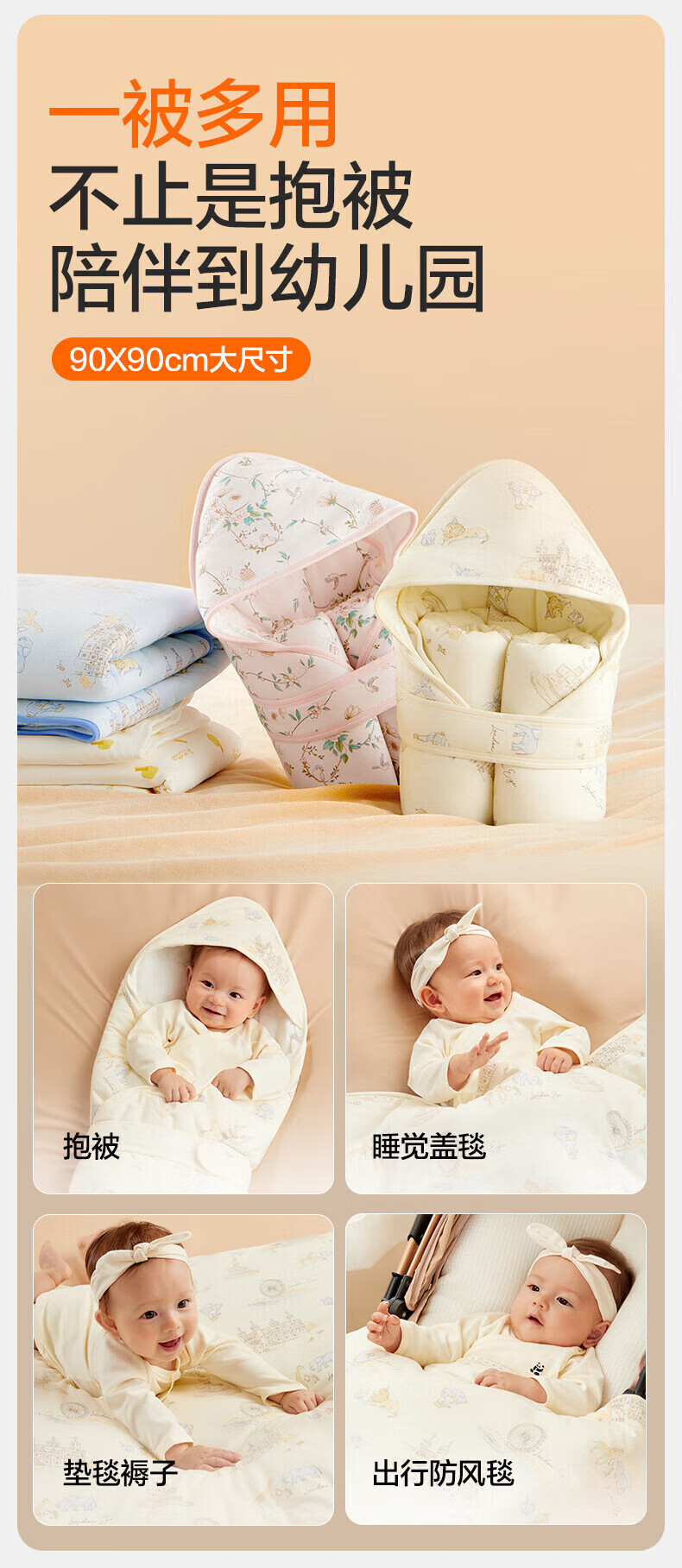 Pure cotton era baby blanket pure cotton baby blanket delivery room swaddle quilt bag single towel sleeping bag thermal insulation and breathable autumn and winter autumn and winter style Yunzhong Amusement Park 80 80cm