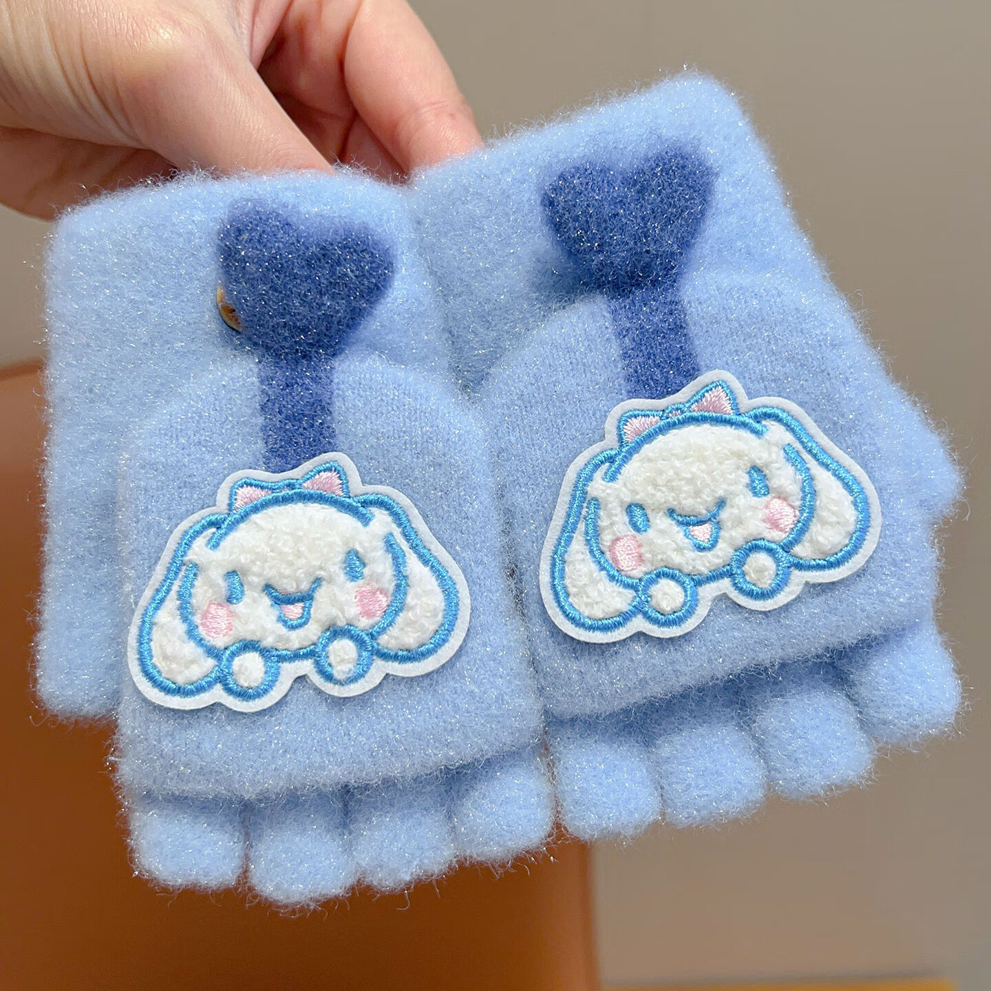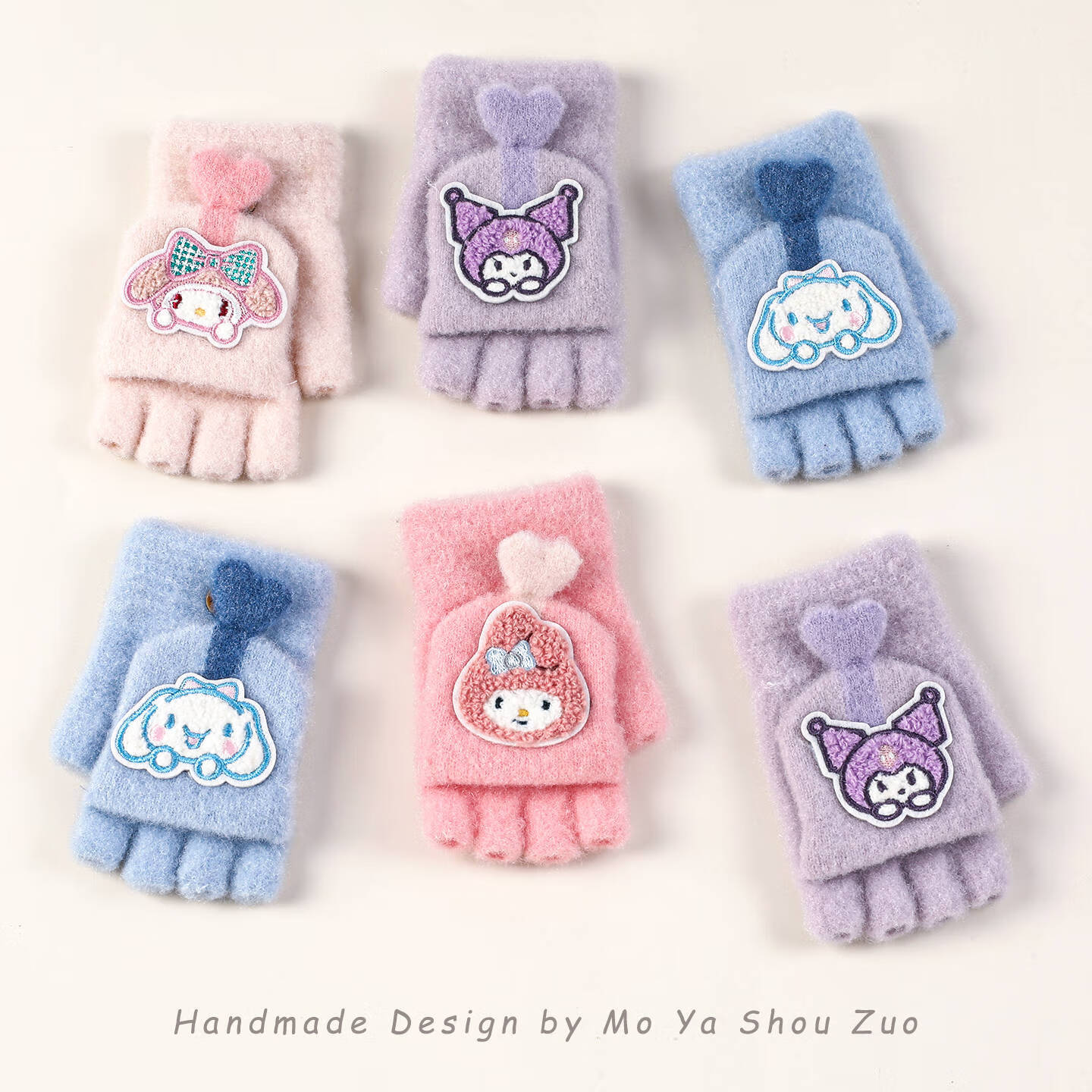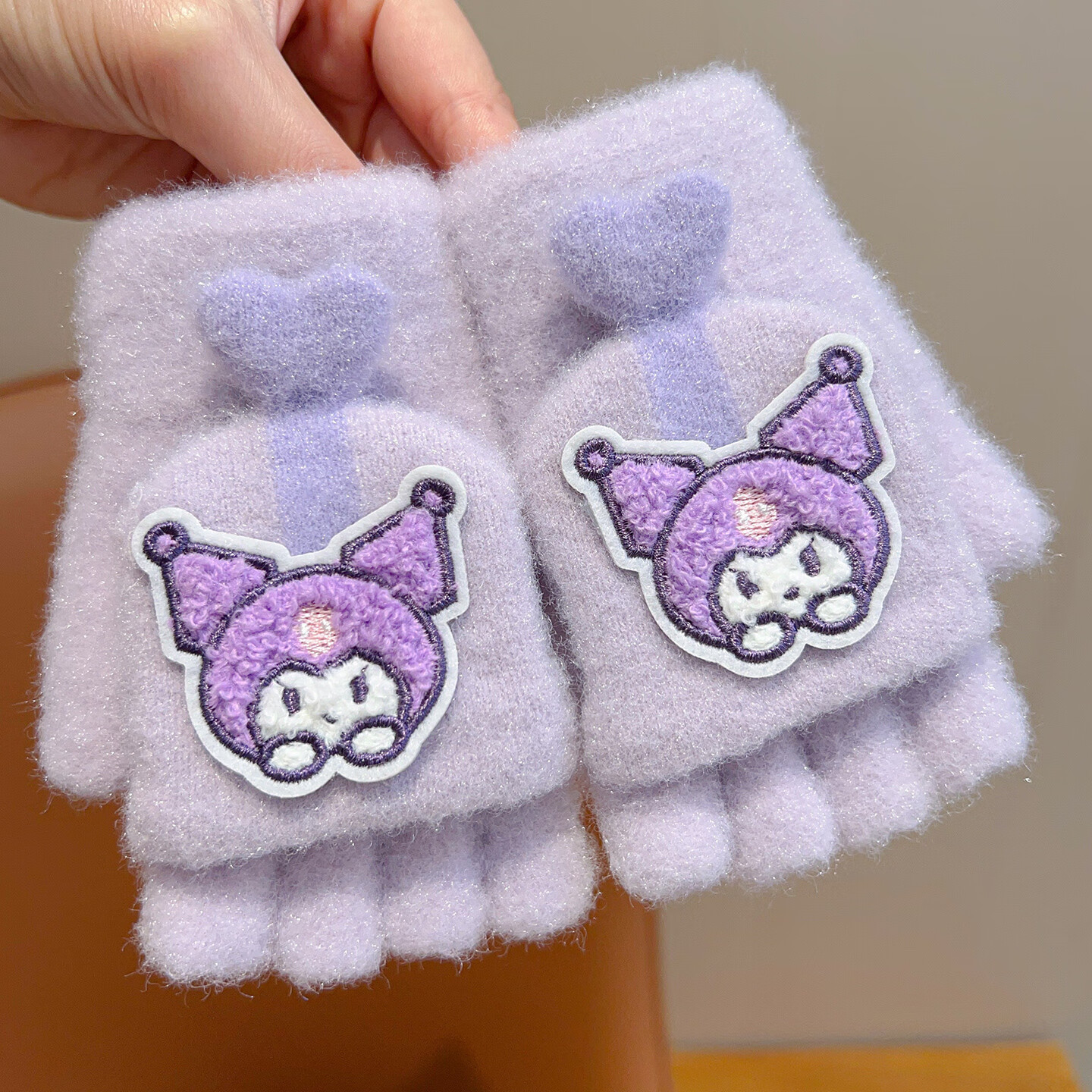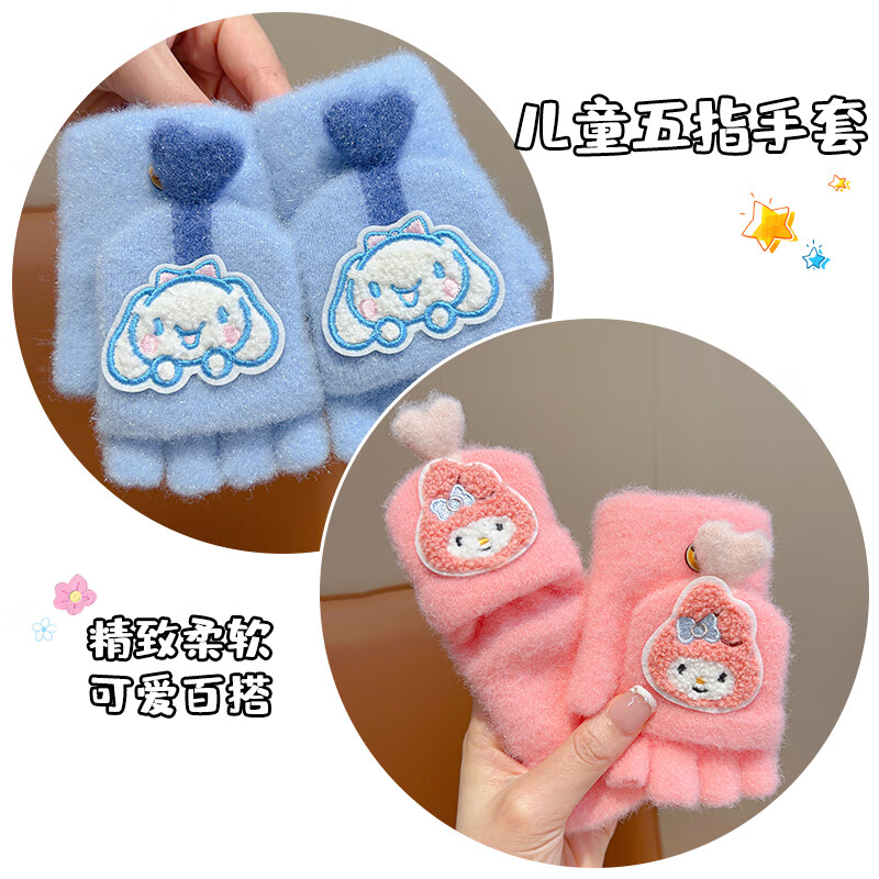 Sanrio Kuromi Children's Gloves Winter Warm Boys and Girls Plus Velvet Cold Warm Half Finger Flip Five Finger Gloves 1# Purple Kurome Warm Five Finger Gloves No Specifications