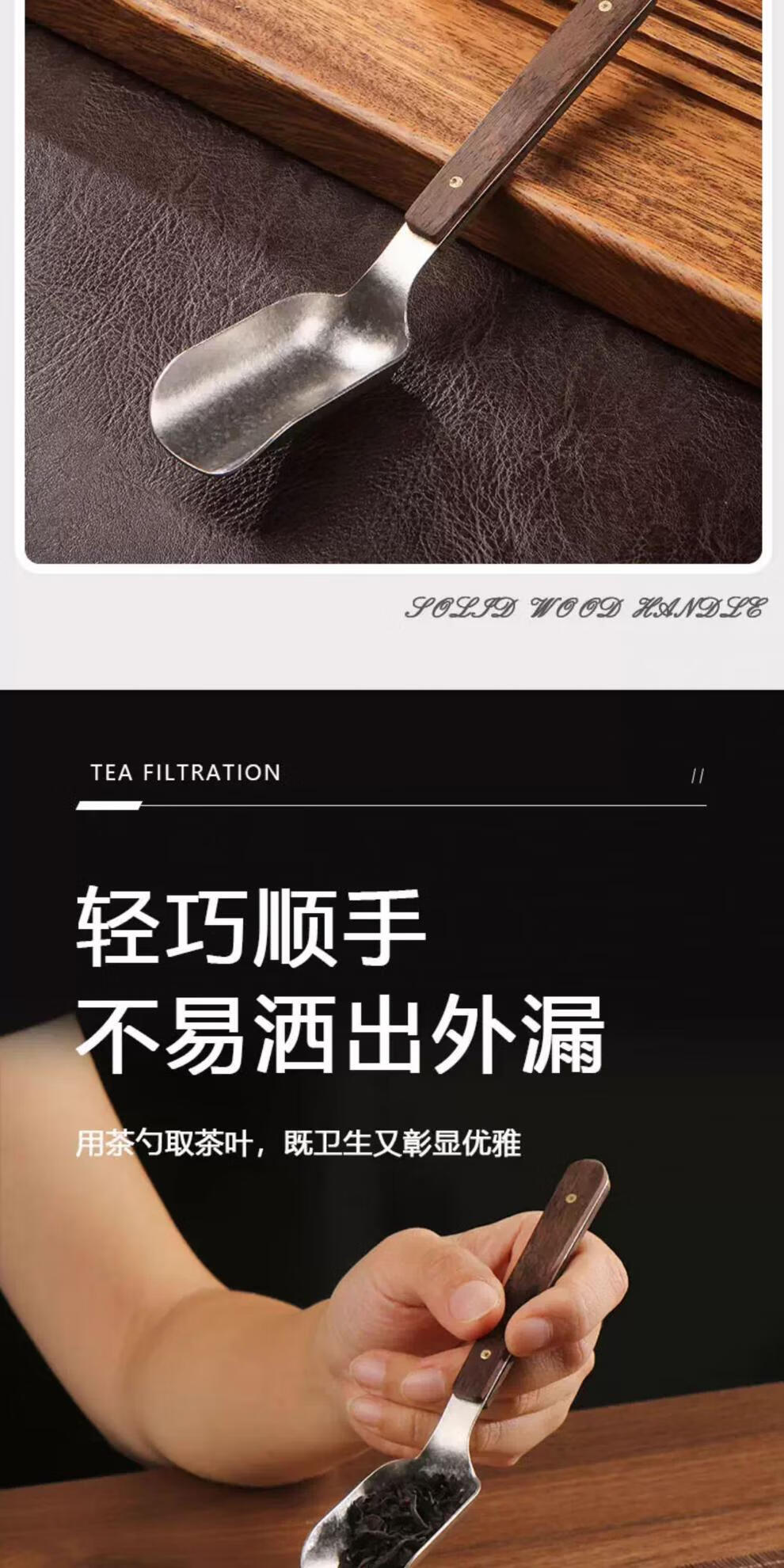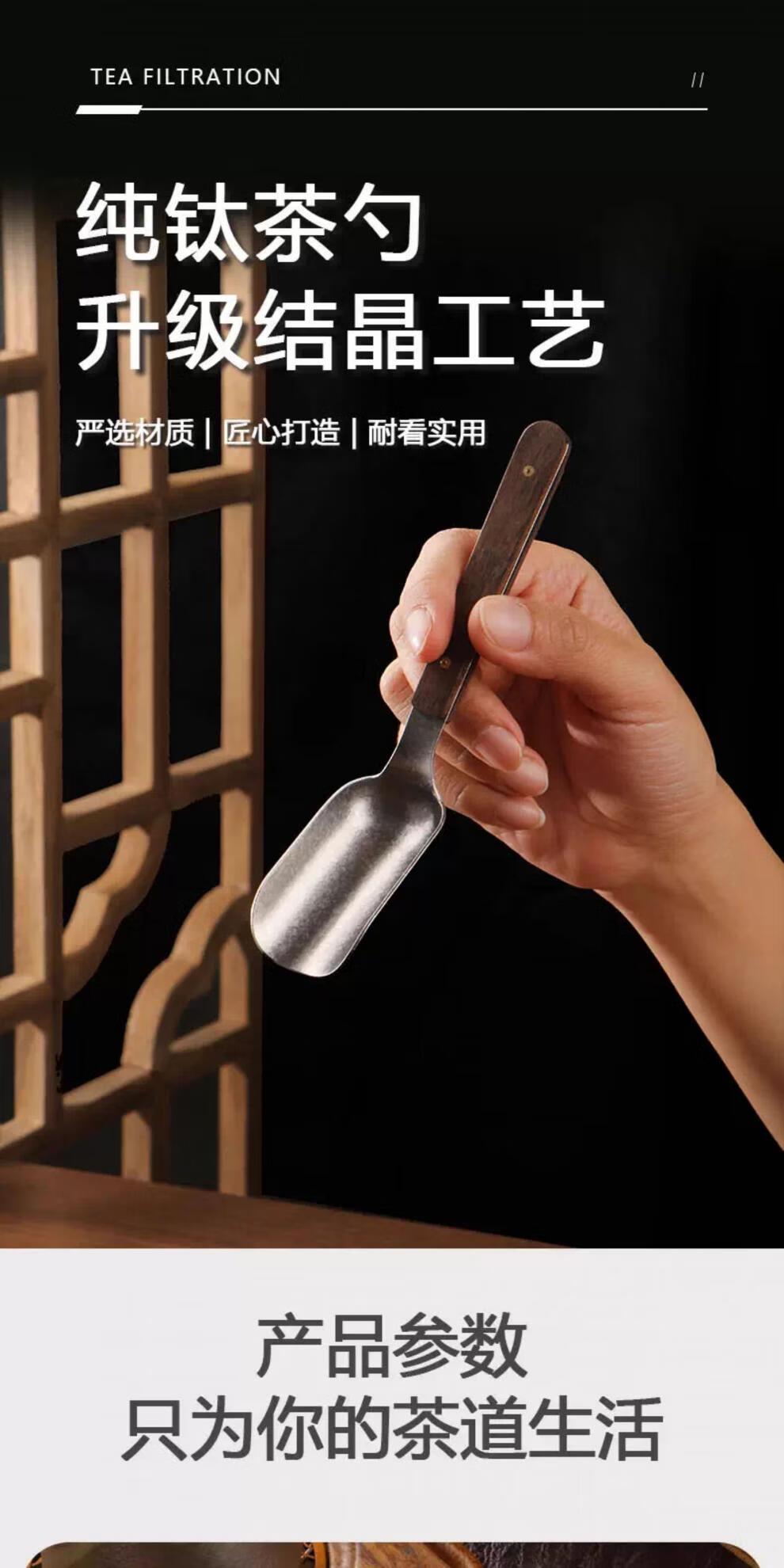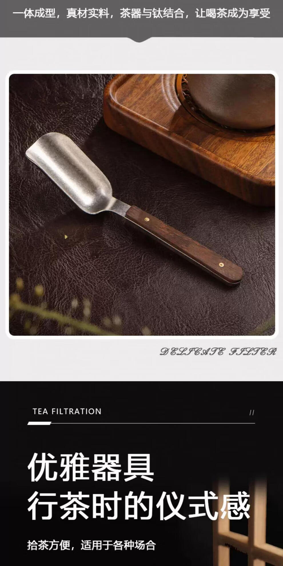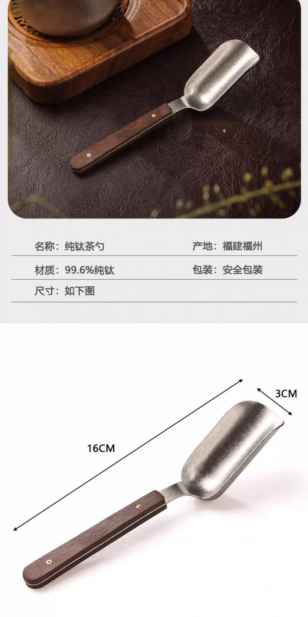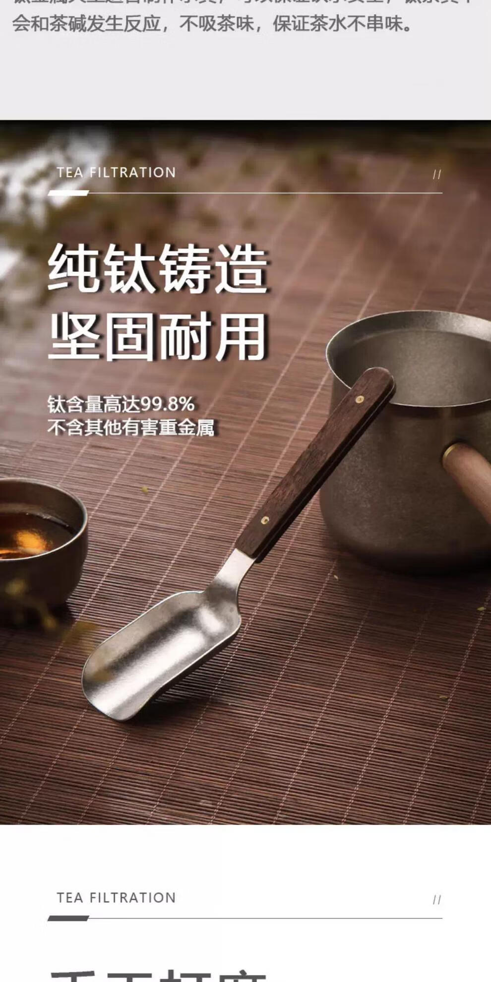 Xiangmanchu solid wood handle pure titanium teaspoon teaspoon tea shovel tea taking tea tool drinking tea shovel metal tea taking tea new upgrade wooden crystal pure titanium tea spoon