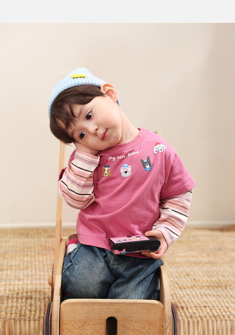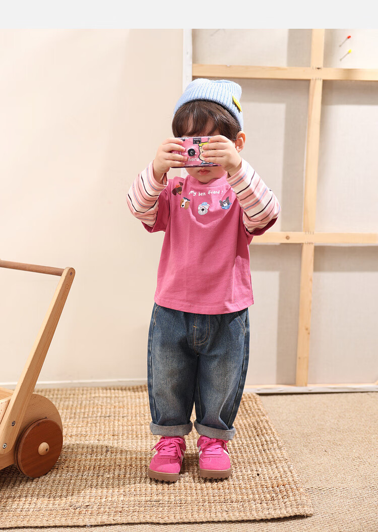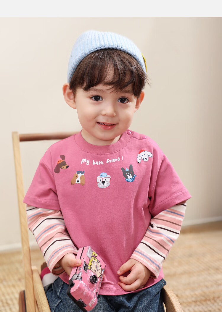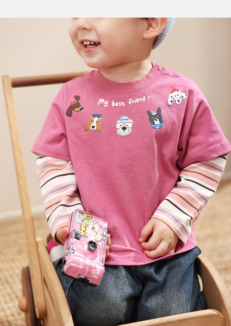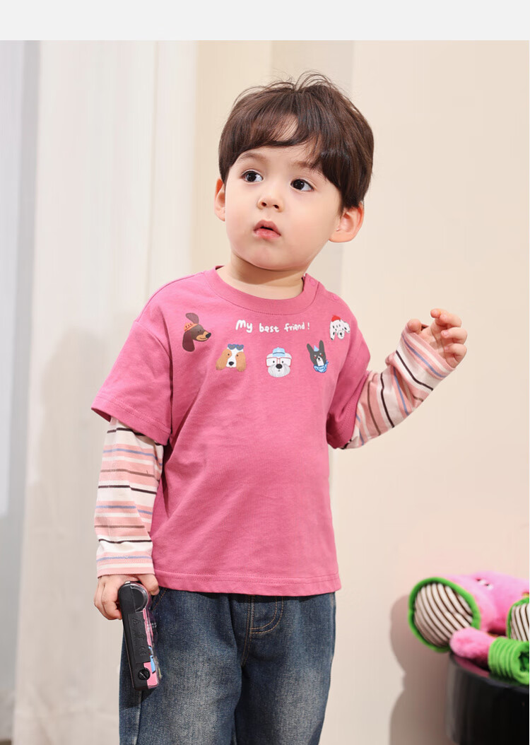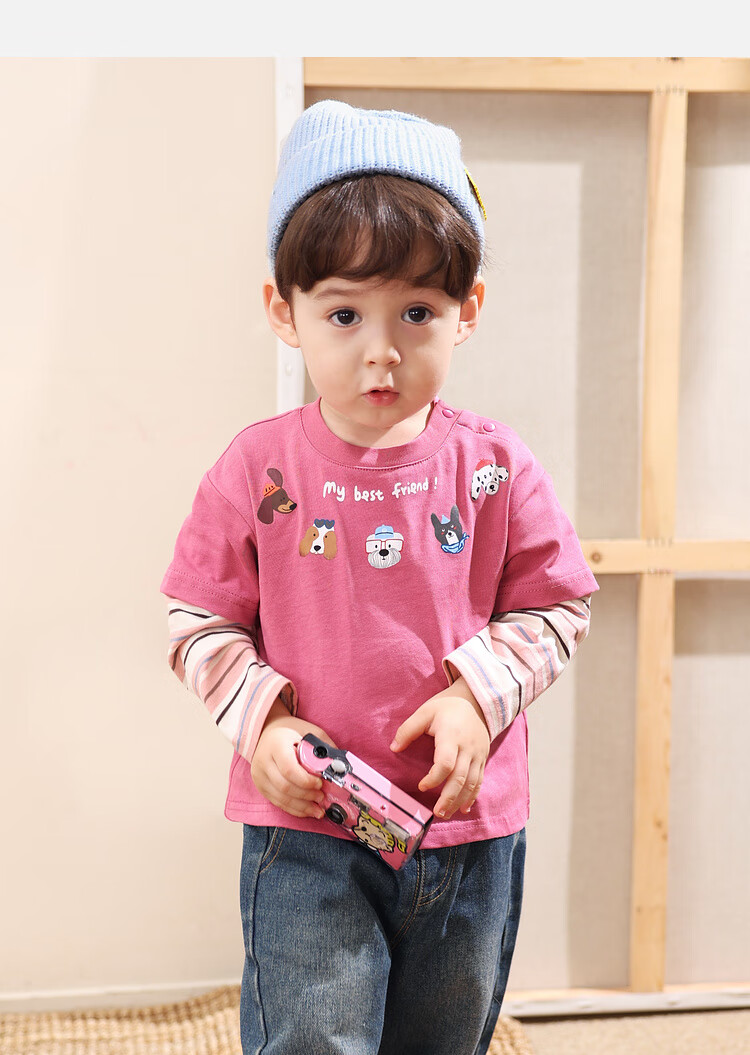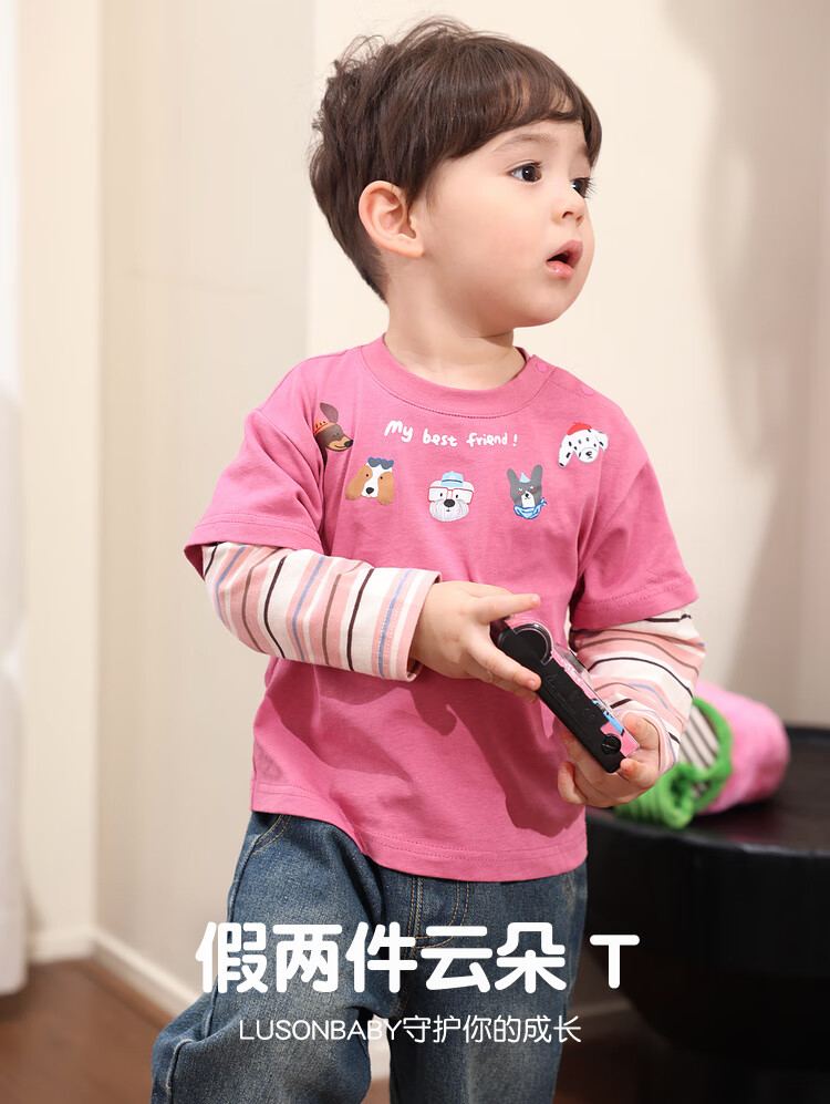 LUSON Little O Dad Baby Boy Baby Long Sleeve T-Shirt Fake Two Pieces 2025 New Autumn Pink Baby Top Rose Pink 110