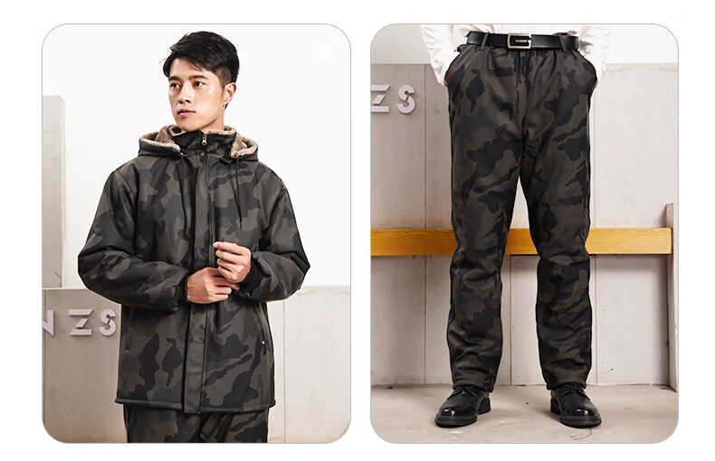 Plush camouflage leather pants for men, windproof, waterproof and warm riding clothes, camouflage plus l thick leather pants 2XL (120-140Jin Jin is equal to 0.5kg)