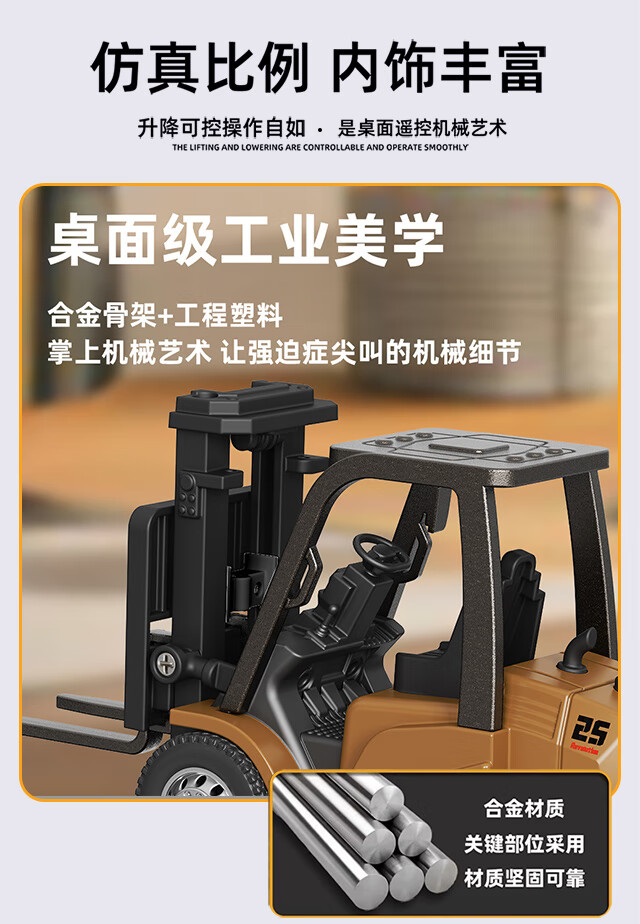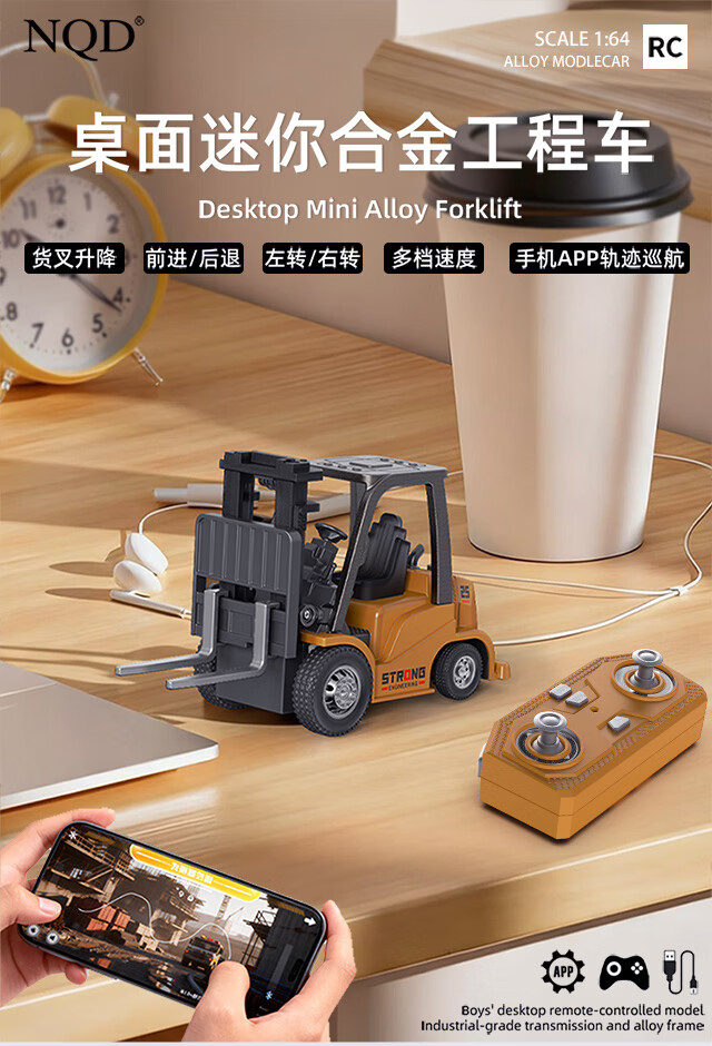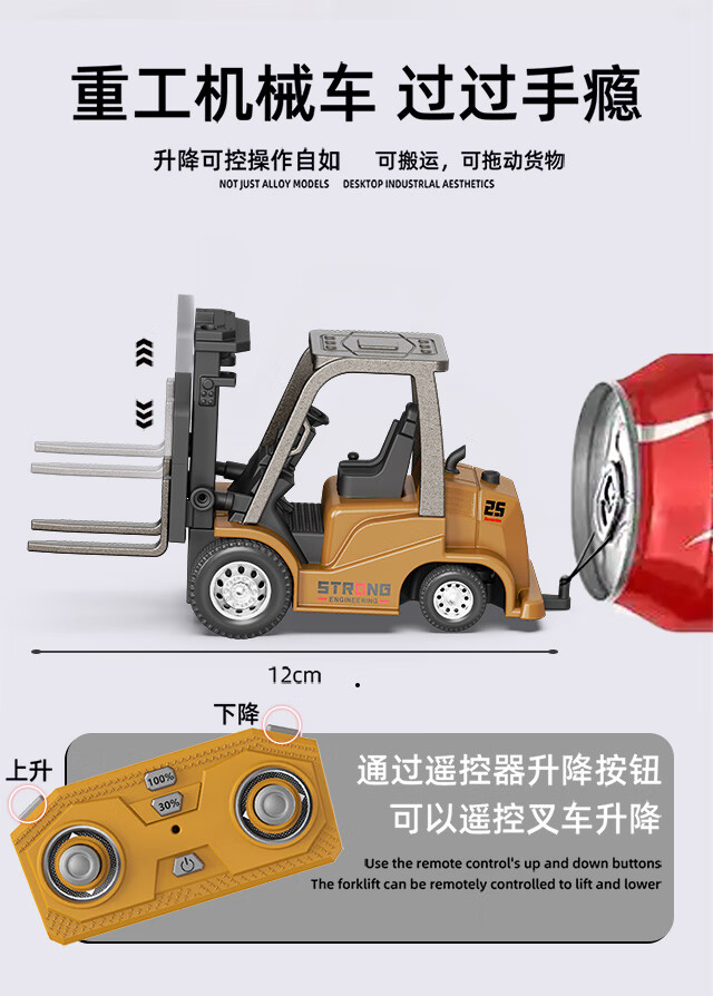 Bandy cute alloy mini remote control forklift toy boy small electric engineering vehicle car model children's birthday remote control car simulation model 3-6 years old 6-10-14 years old