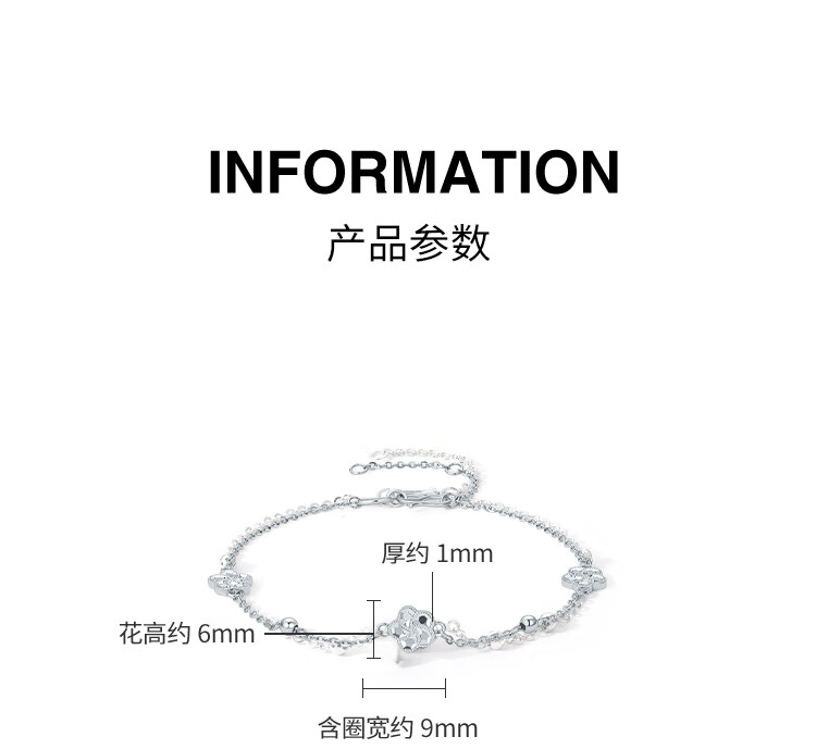 Saturday Fortune (ZLF) PT950 platinum bracelet for women, simple and versatile flower bracelet, holiday gift for girlfriend, 16+3cm-3.04g