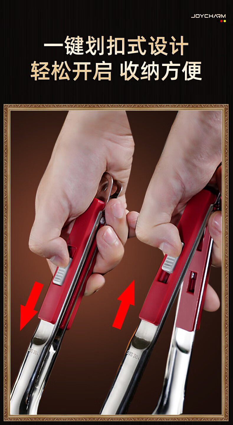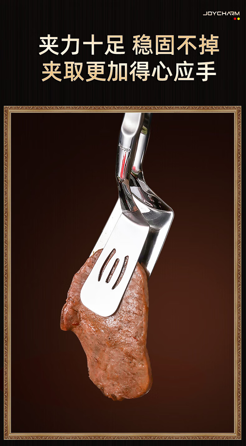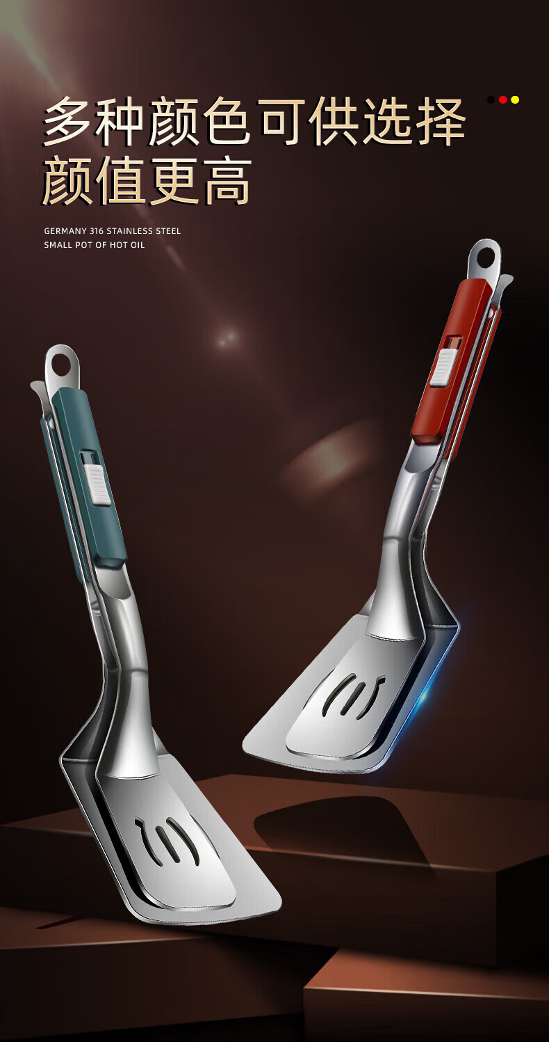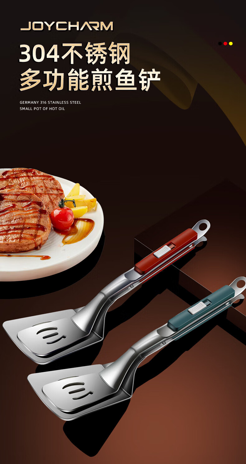 QCSK German 304 stainless steel fish frying spatula clip special multi-functional frying clip shovel pancake shovel tool pancake shovel steak red food grade 304 steel upgraded 4th generation lock frying shovel clip