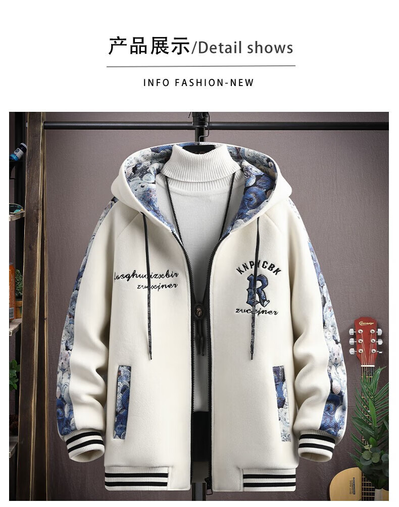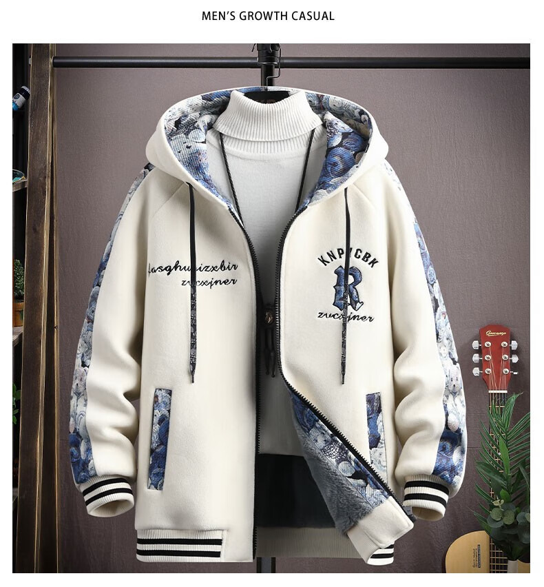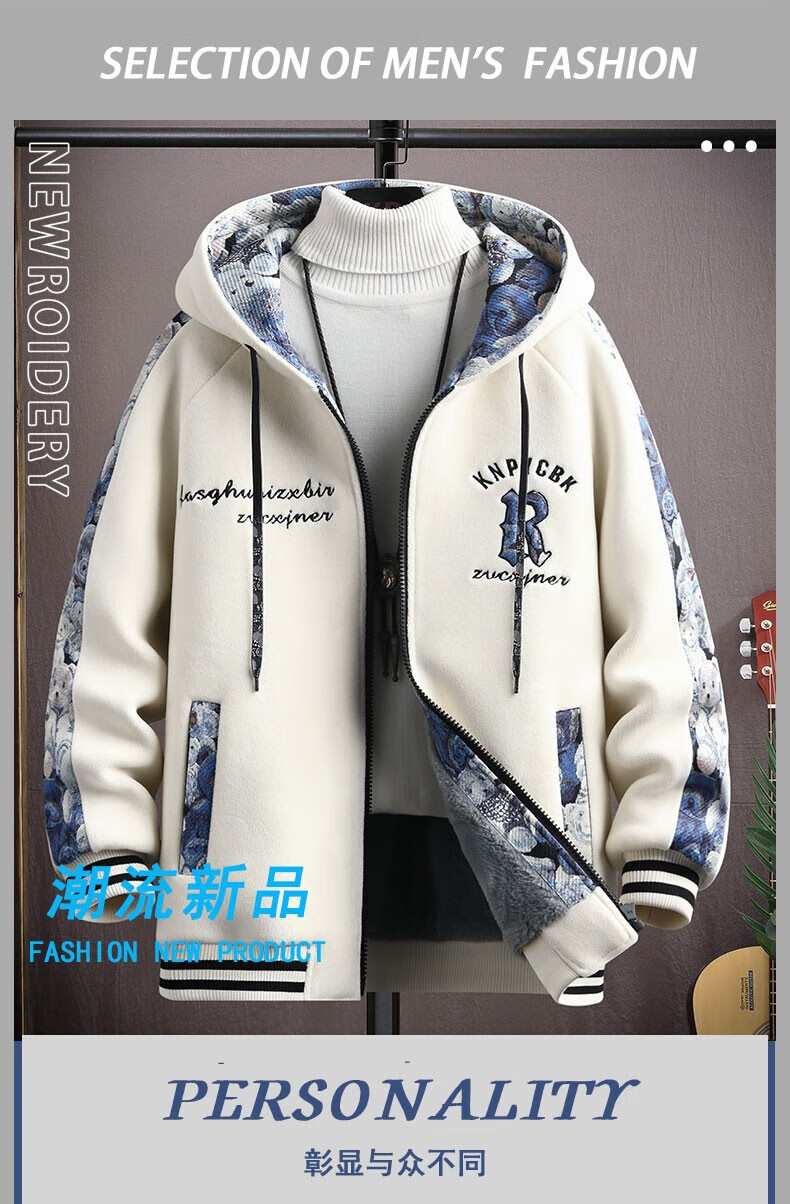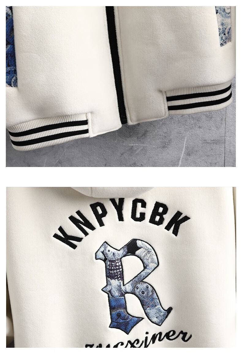 Playboy (PLAYBOY) Chinese style velvet jacket men's 2025 autumn and winter thickened jacket teenagers warm Austrian velvet cotton coat 2307 beige white velvet thickened XL 130-150Jin Jin equals 0.5kg /170-175cm