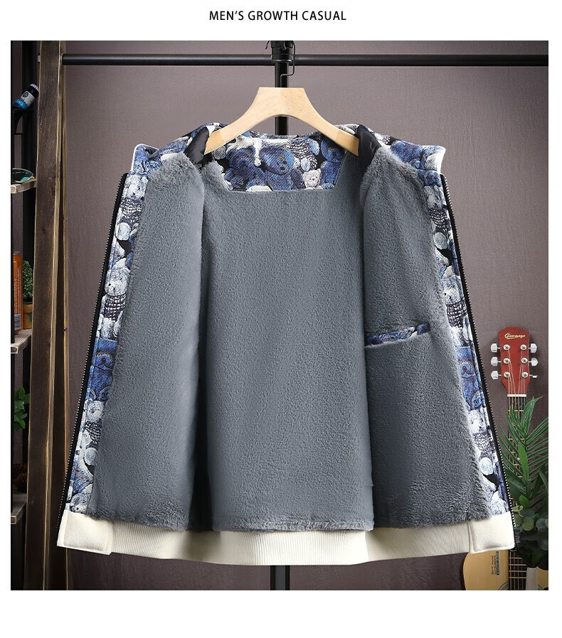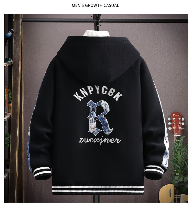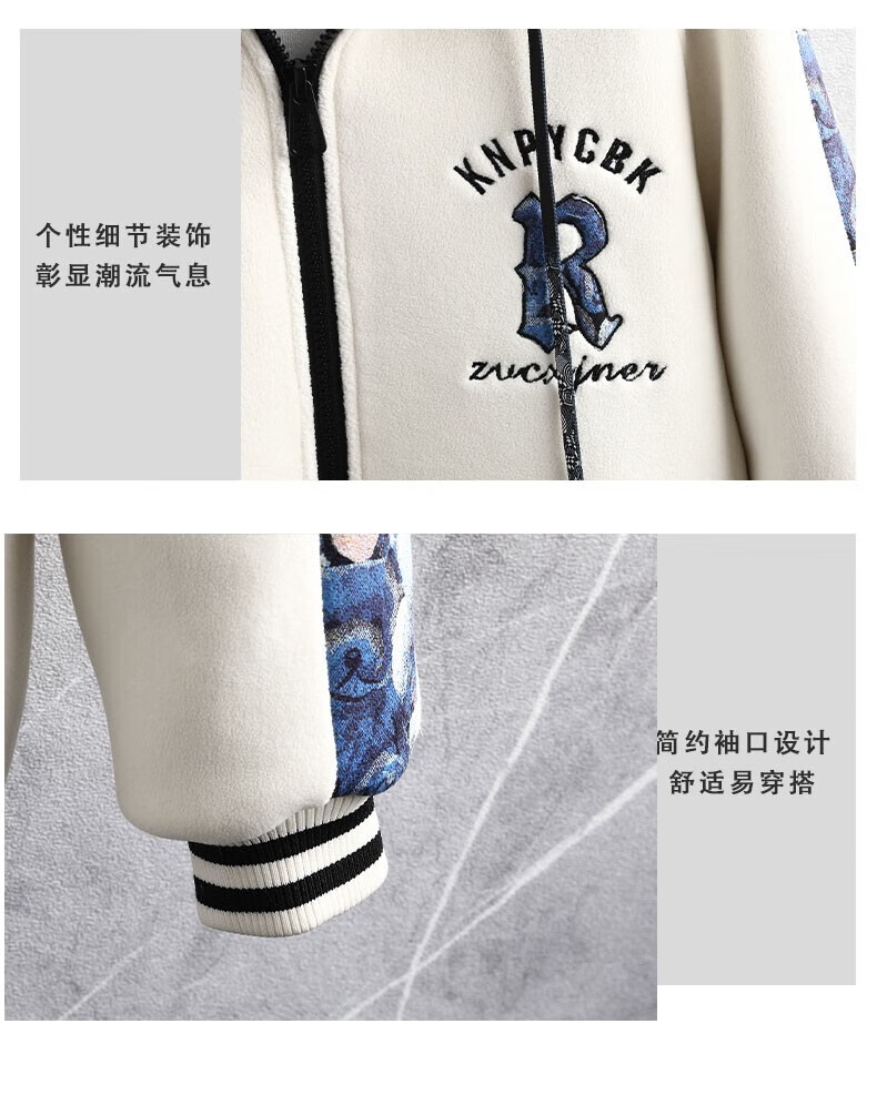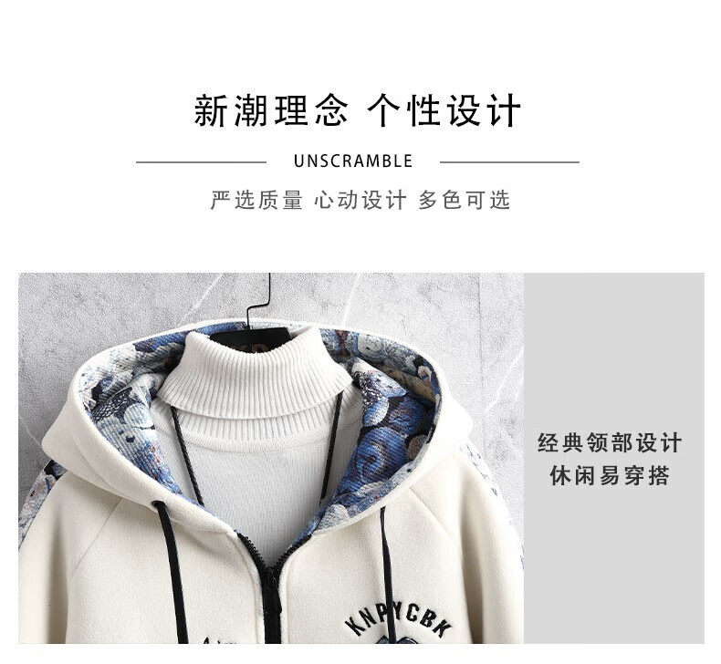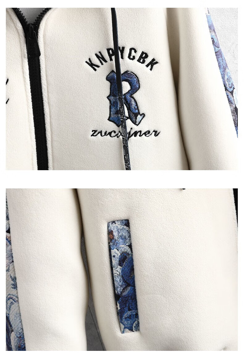Playboy (PLAYBOY) Chinese style velvet jacket men's 2025 autumn and winter thickened jacket teenagers warm Austrian velvet cotton coat 2307 beige white velvet thickened XL 130-150Jin Jin equals 0.5kg /170-175cm