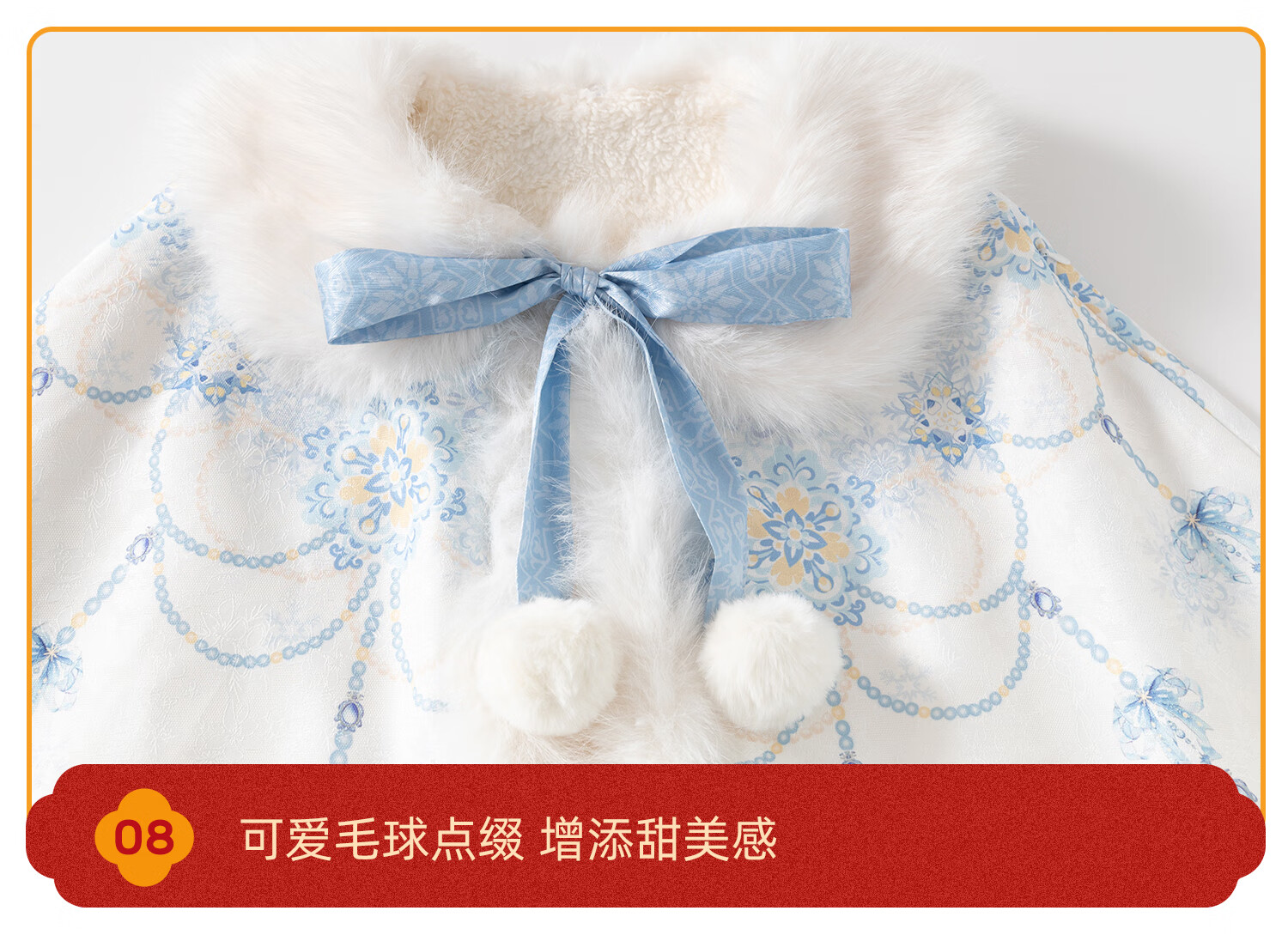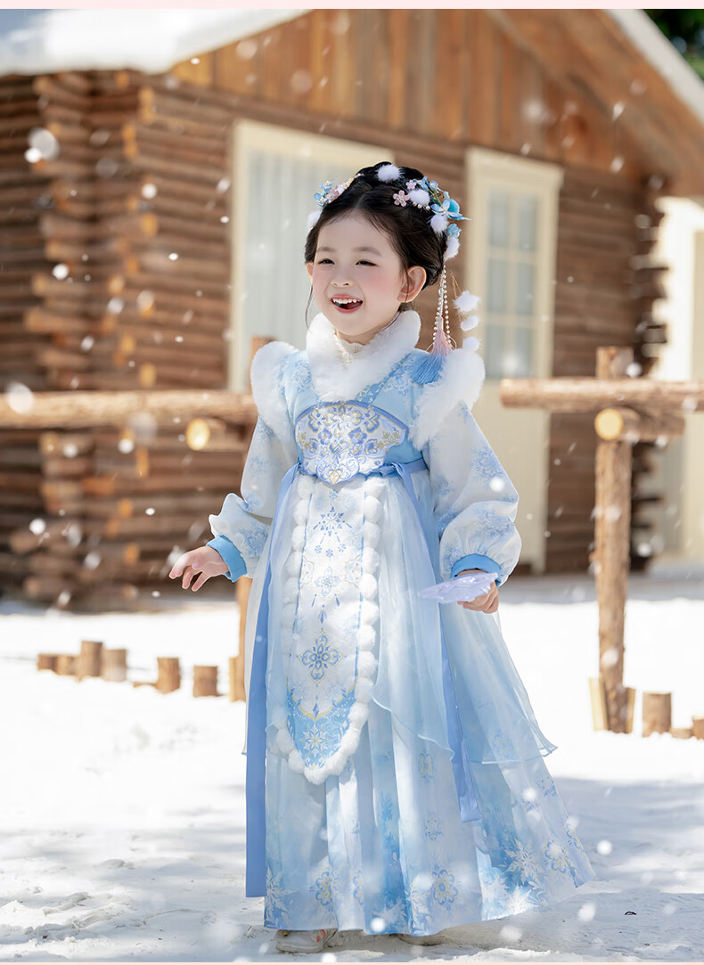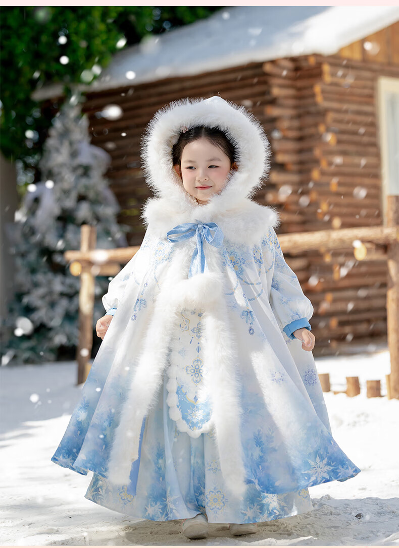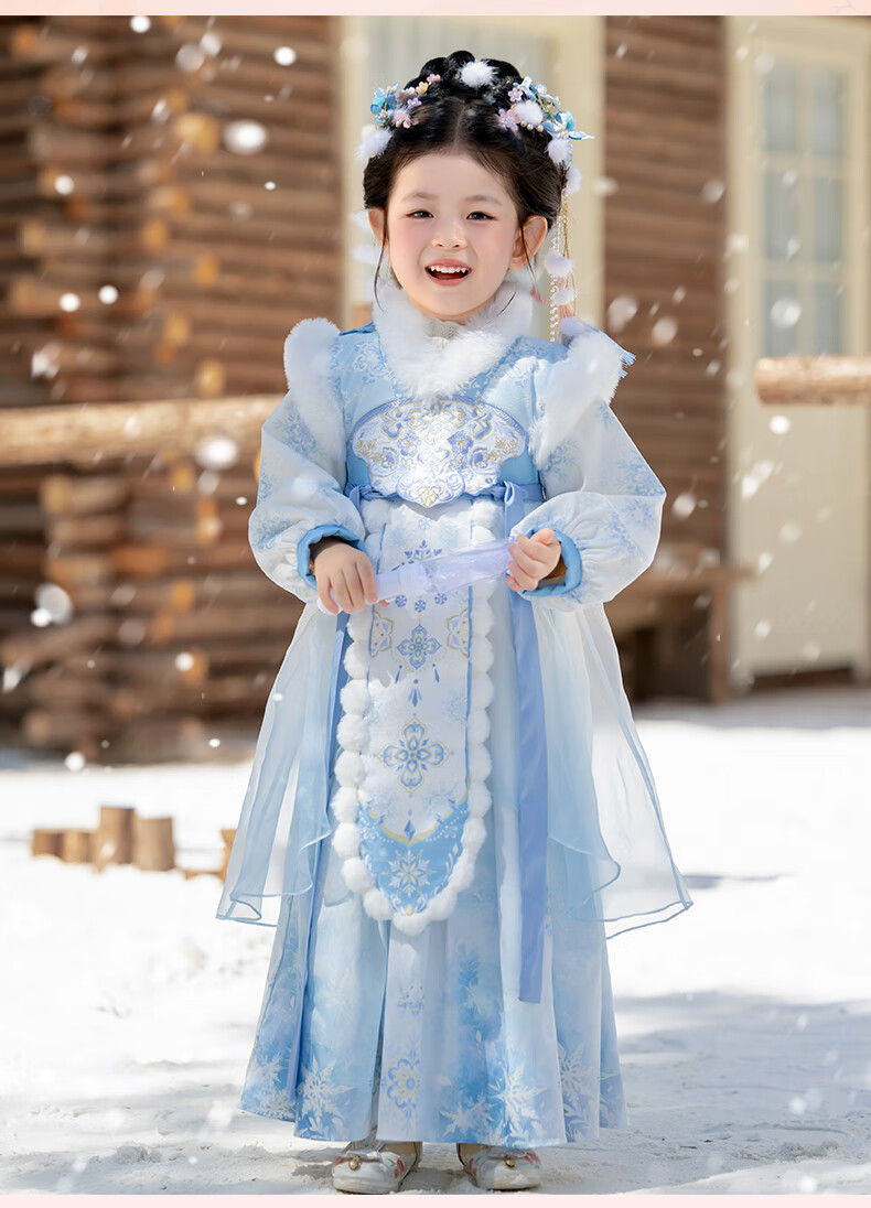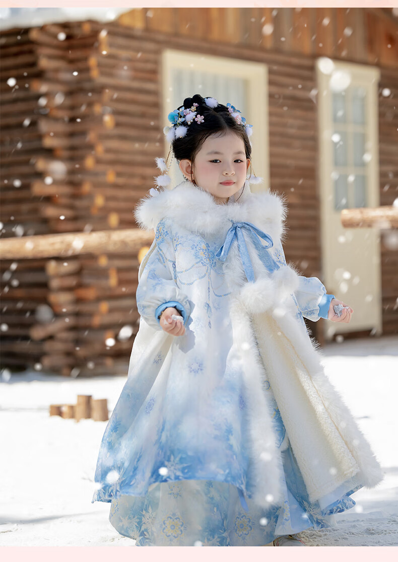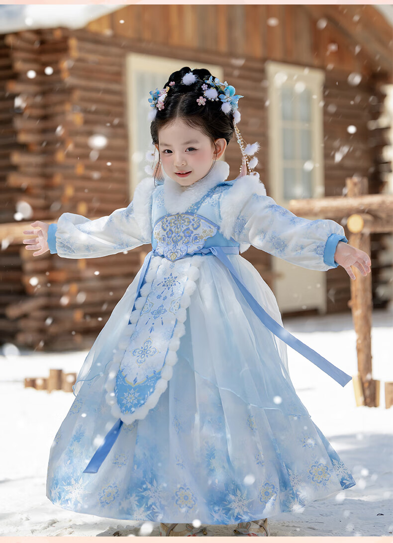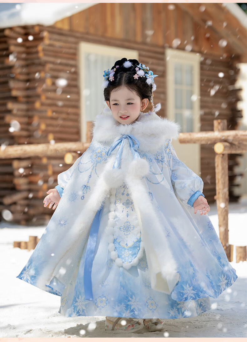 G.duck Winter Elsa Princess Dress Hanfu Girls Chinese Children's Frozen Plus Velvet Thickened Dress Cloak Cloak Ice and Snow Cloak and Skirt 110 Recommended for 3~4 years old 90-105cm