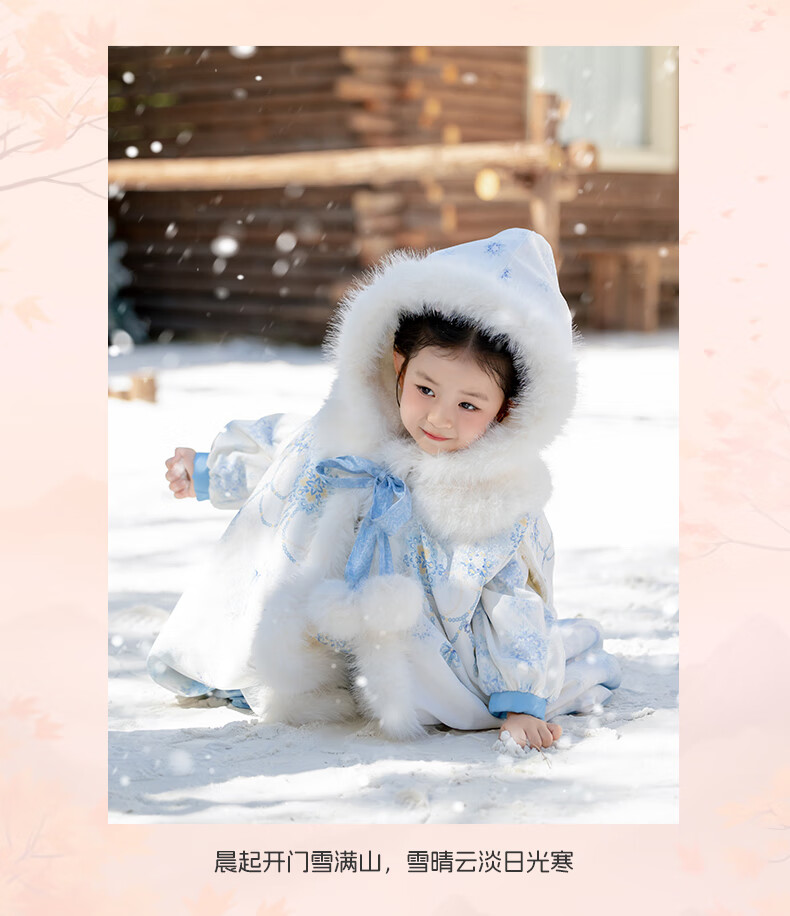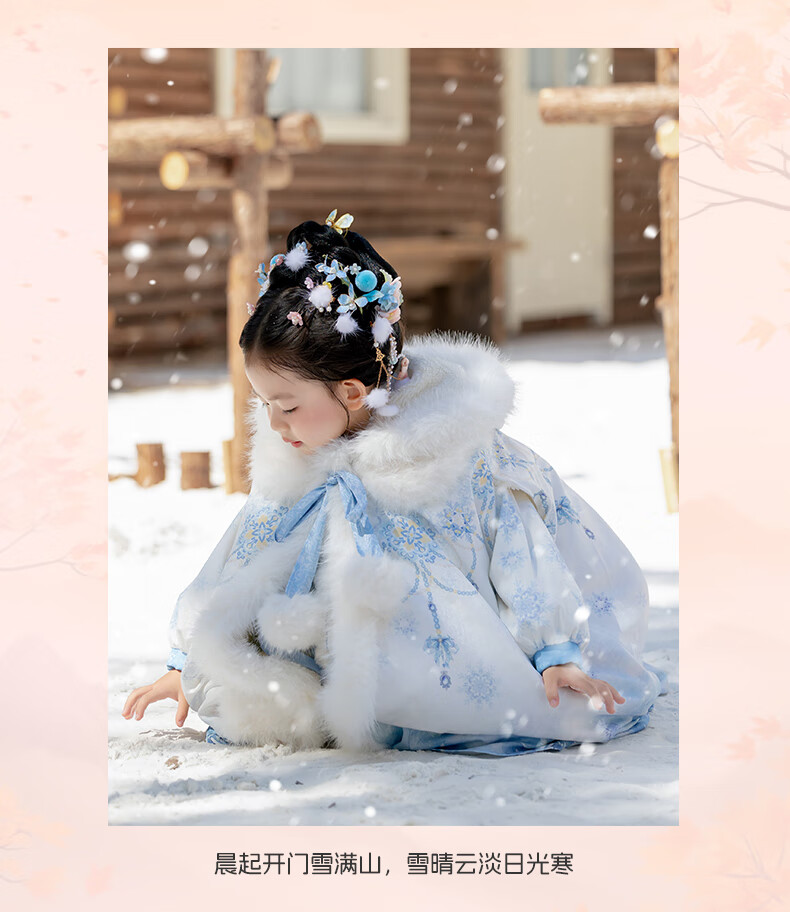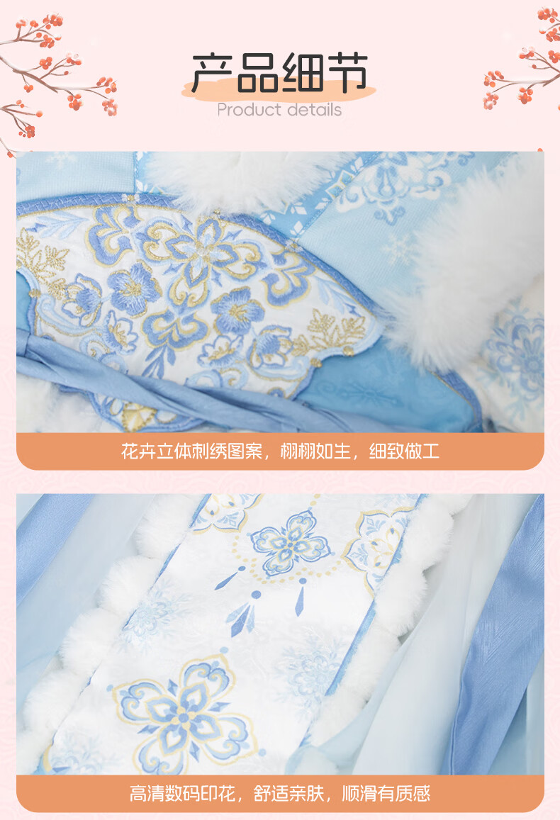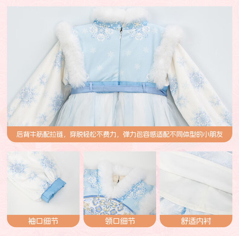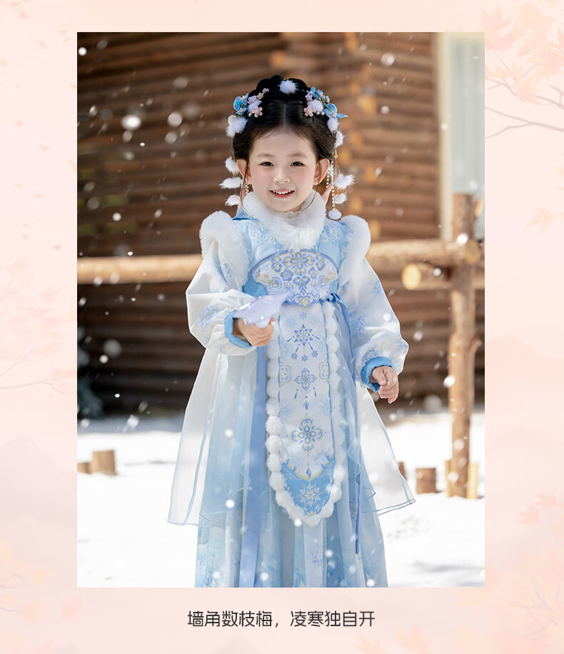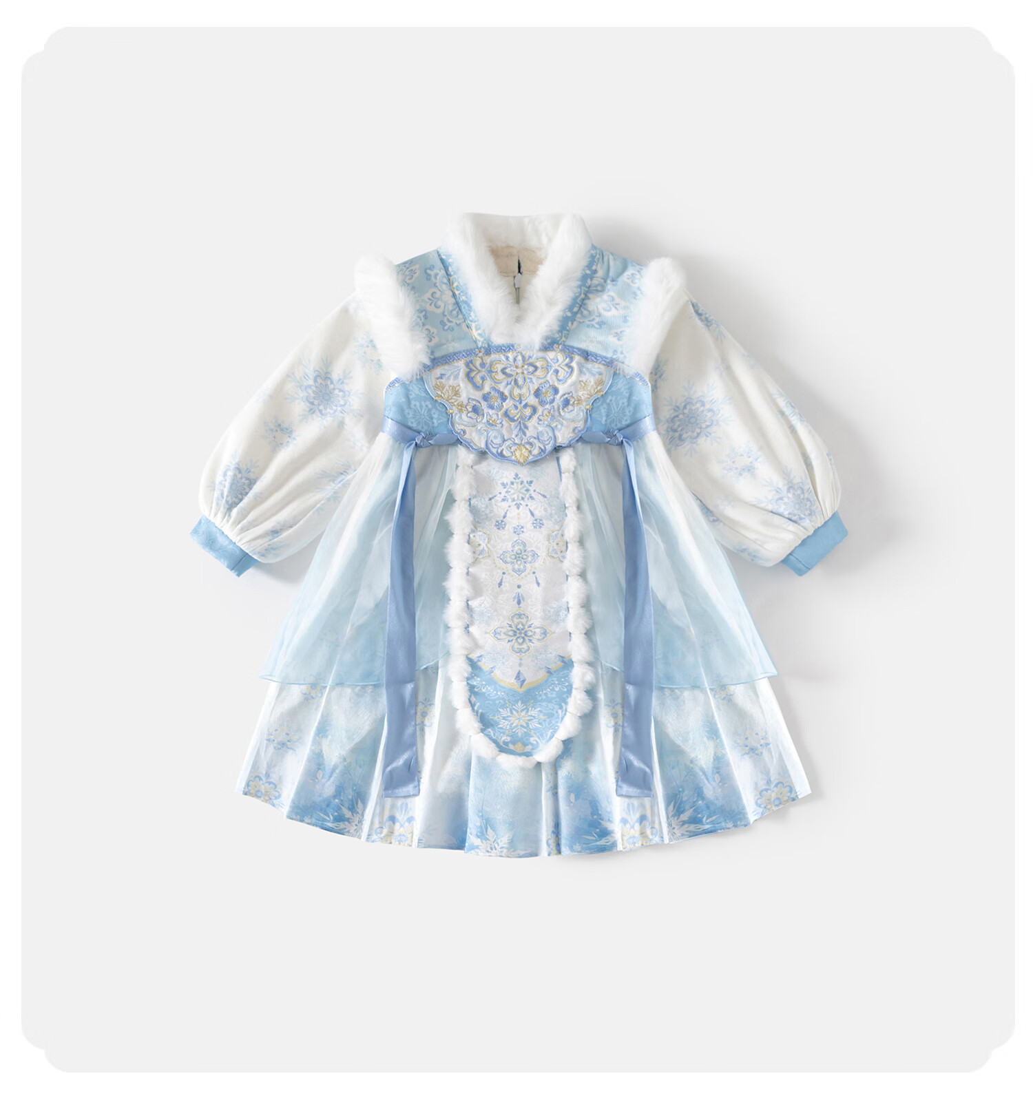 G.duck Winter Elsa Princess Dress Hanfu Girls Chinese Children's Frozen Plus Velvet Thickened Dress Cloak Cloak Ice and Snow Cloak and Skirt 110 Recommended for 3~4 years old 90-105cm
