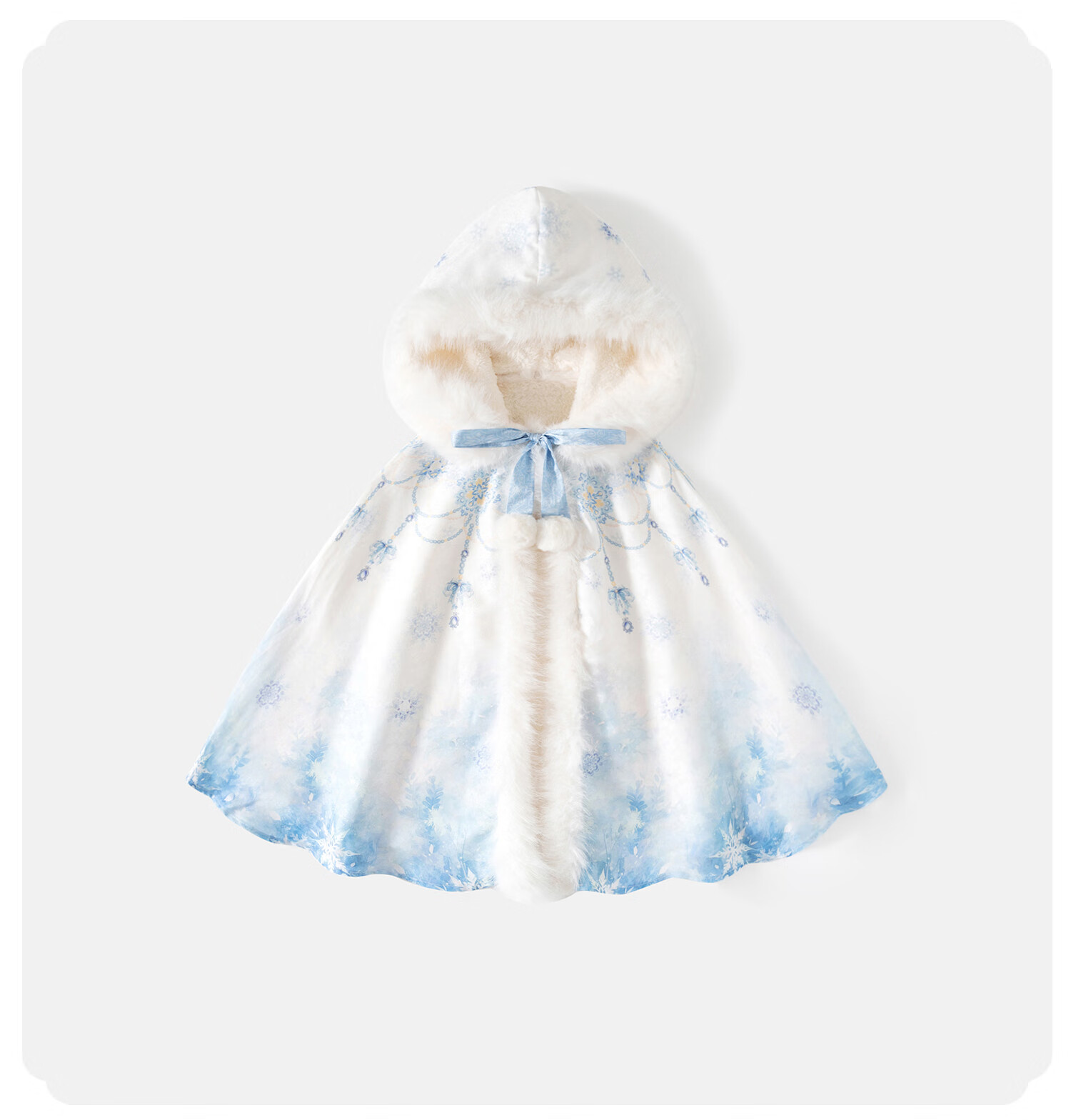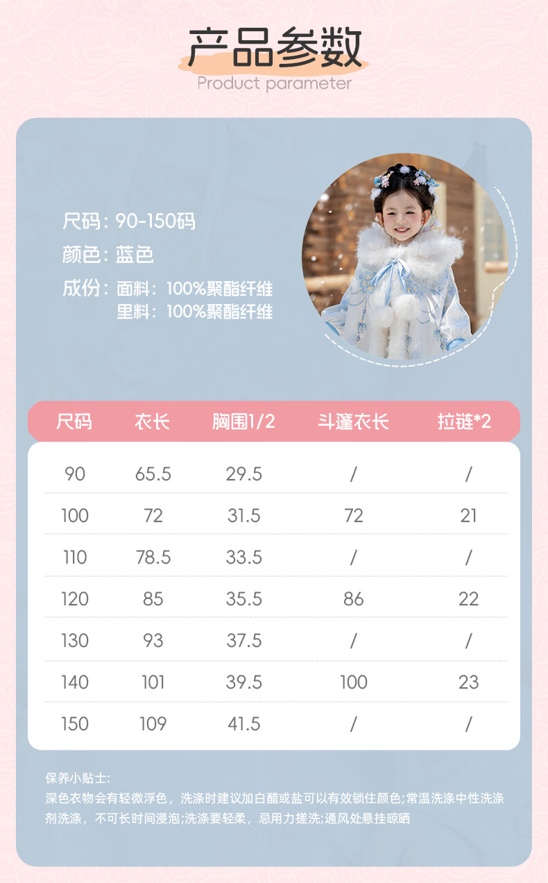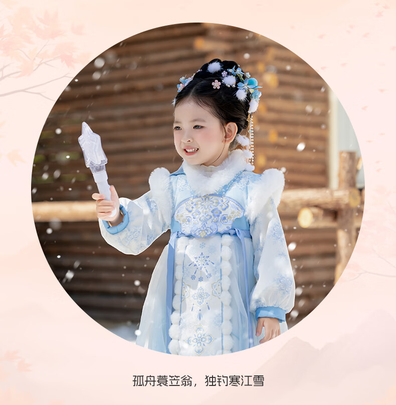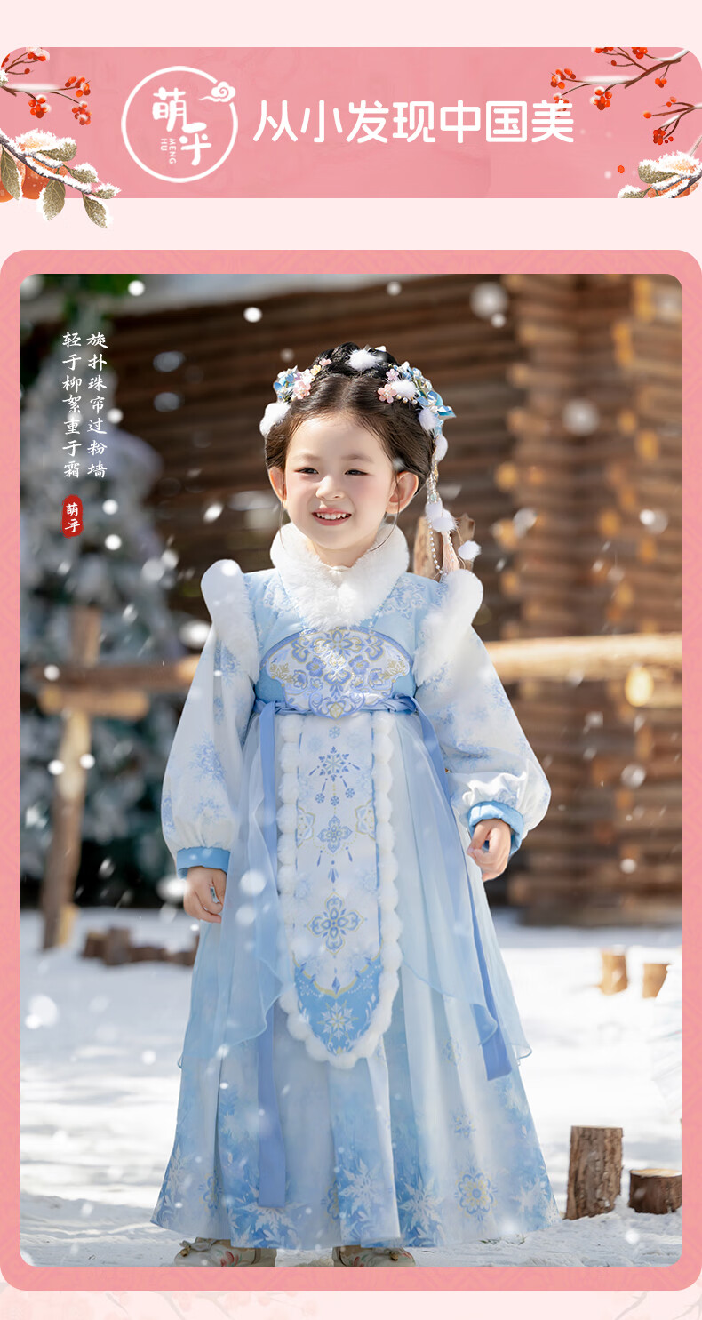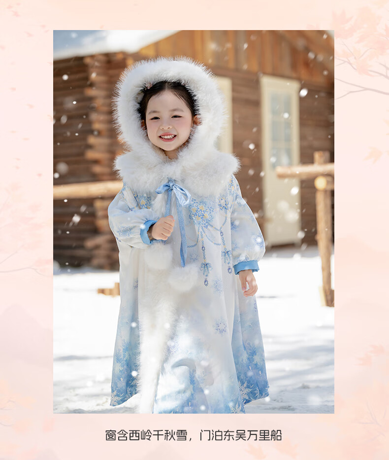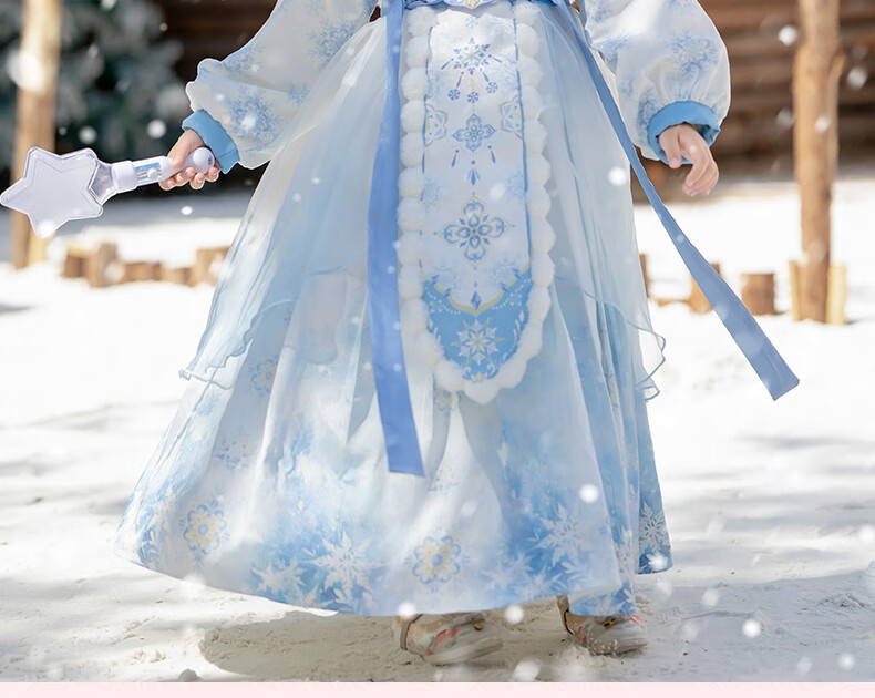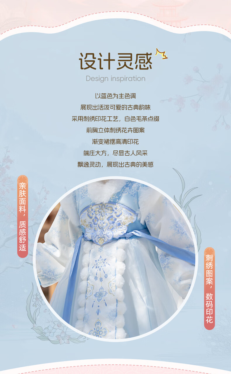 G.duck Winter Elsa Princess Dress Hanfu Girls Chinese Children's Frozen Plus Velvet Thickened Dress Cloak Cloak Ice and Snow Cloak and Skirt 110 Recommended for 3~4 years old 90-105cm