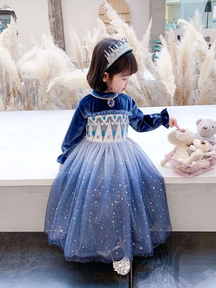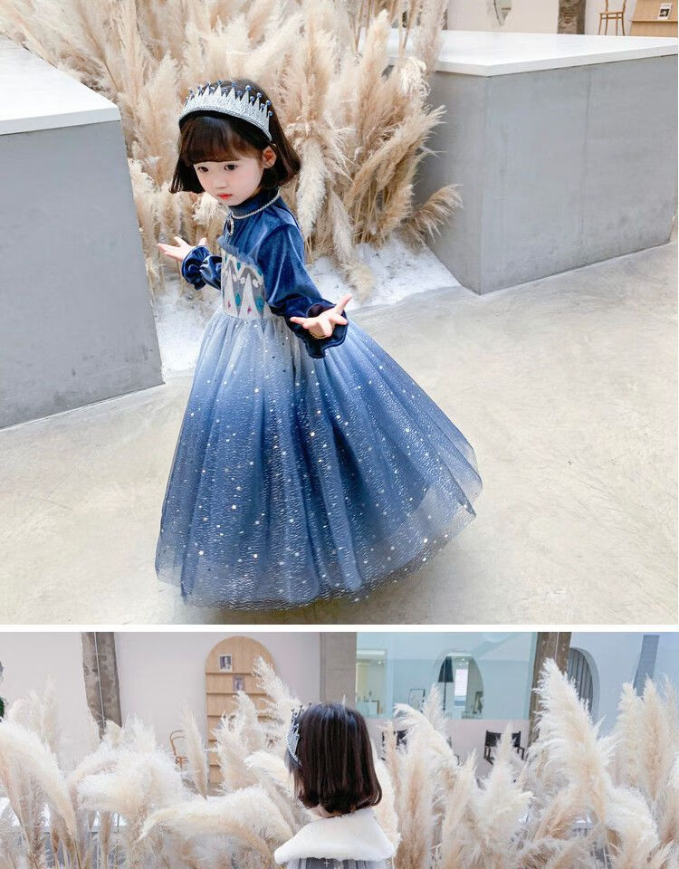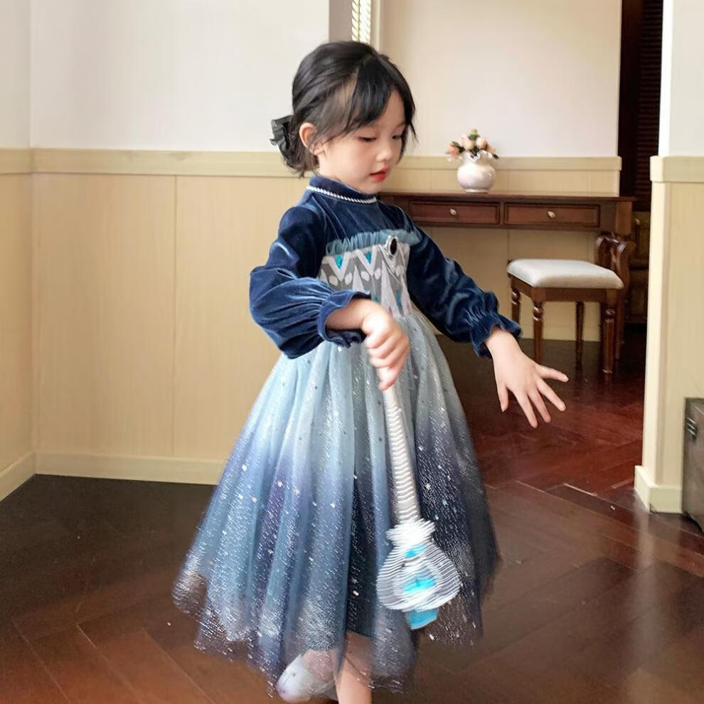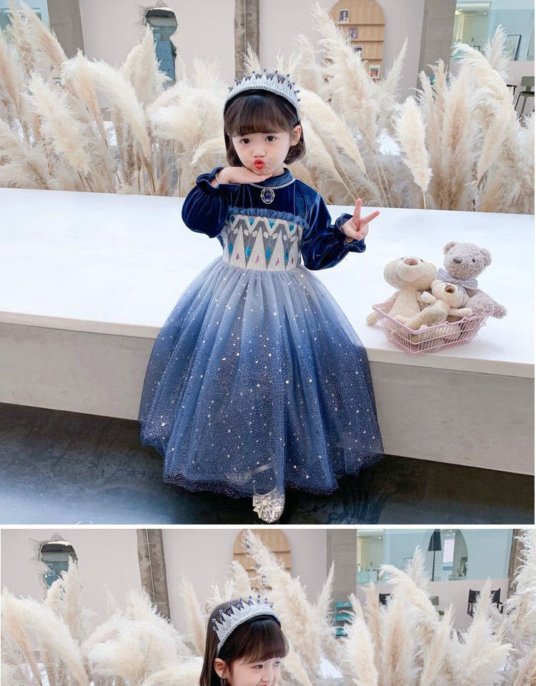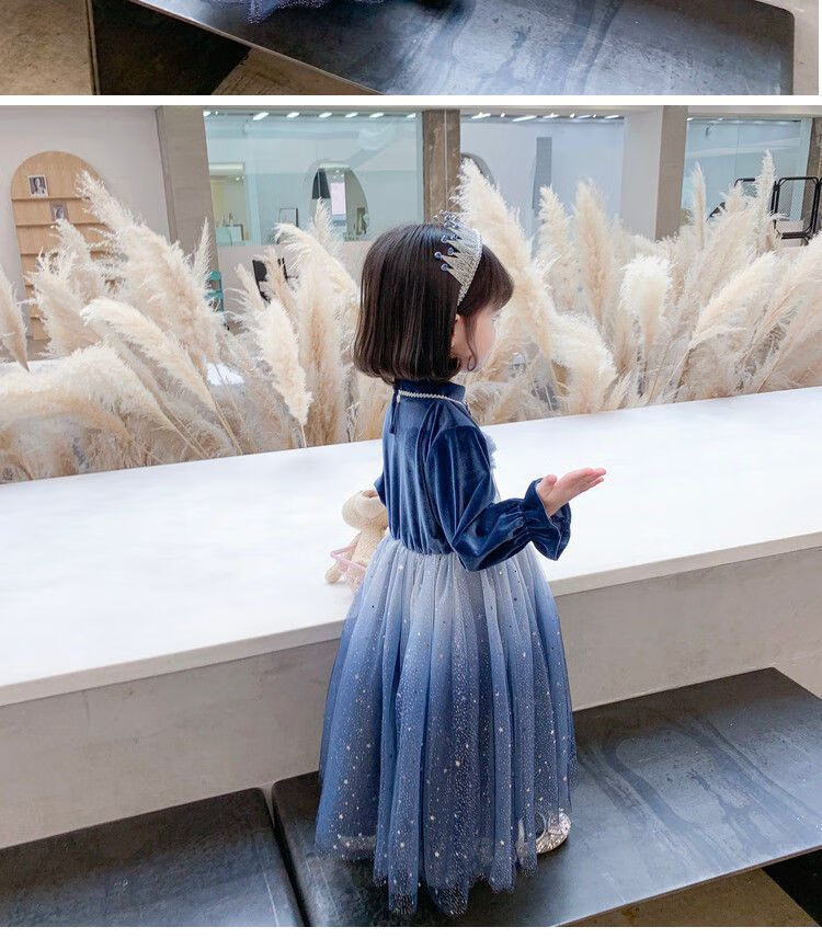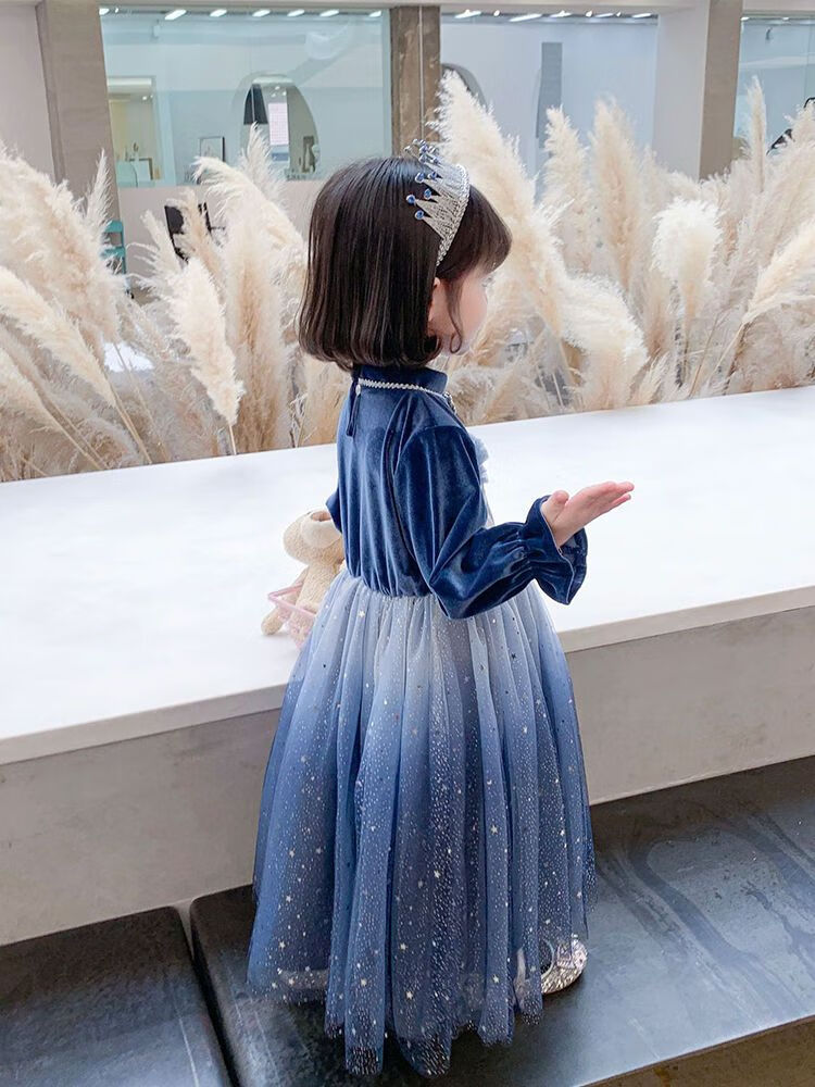 G.duck Girls 2025 Autumn and Winter Frozen Elsa Princess Dress Mesh Gradient Color Princess Dress Dress Plus Velvet Skirt Autumn 120