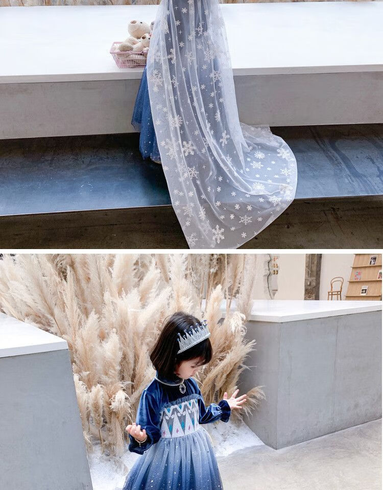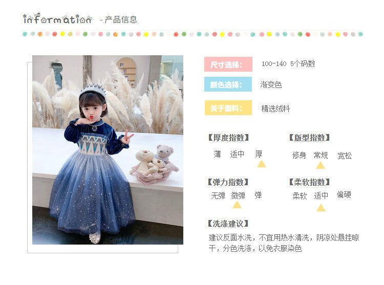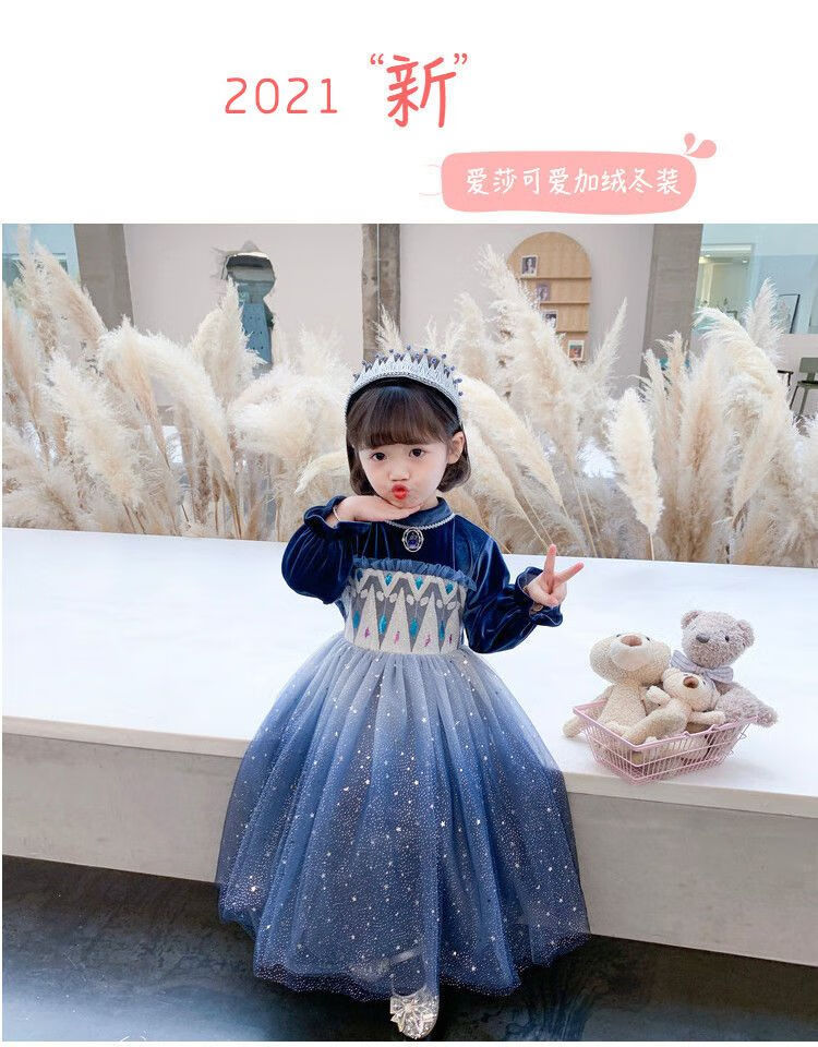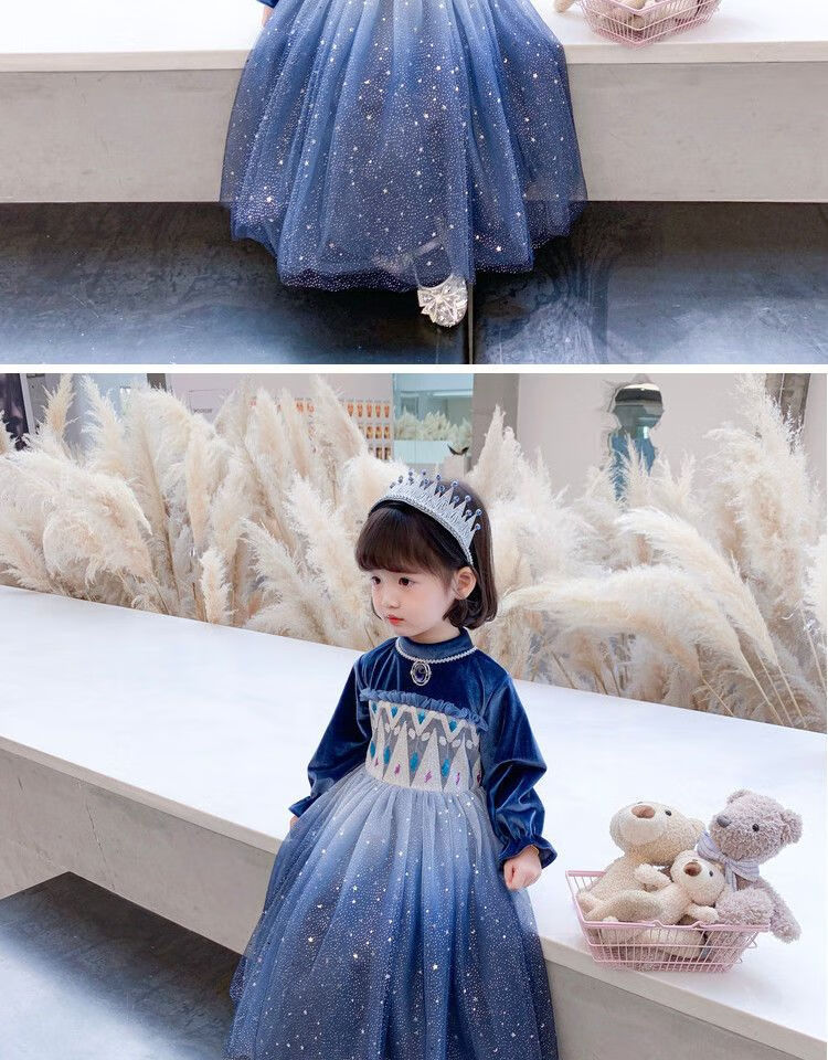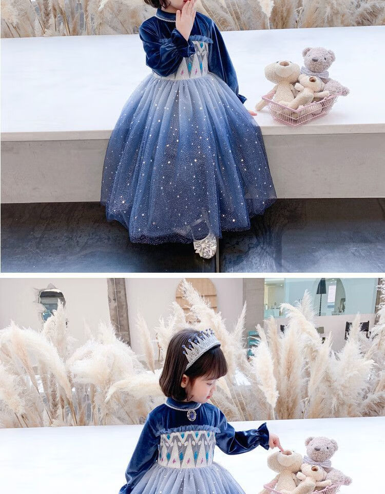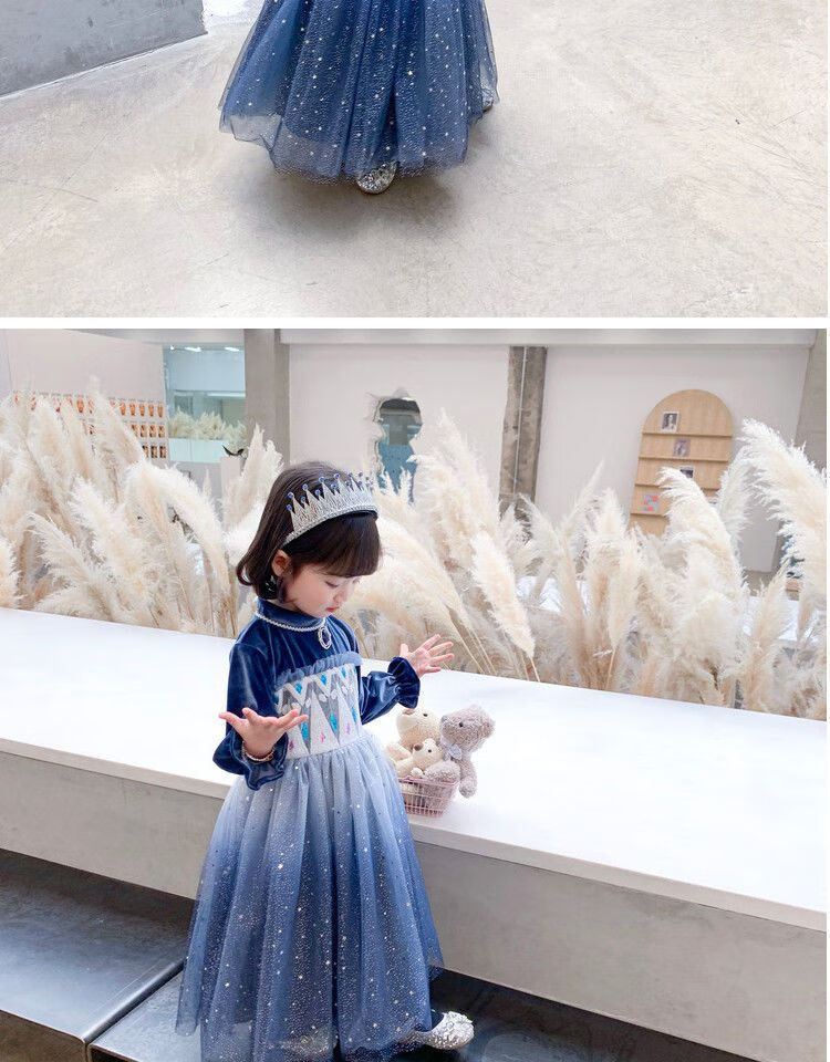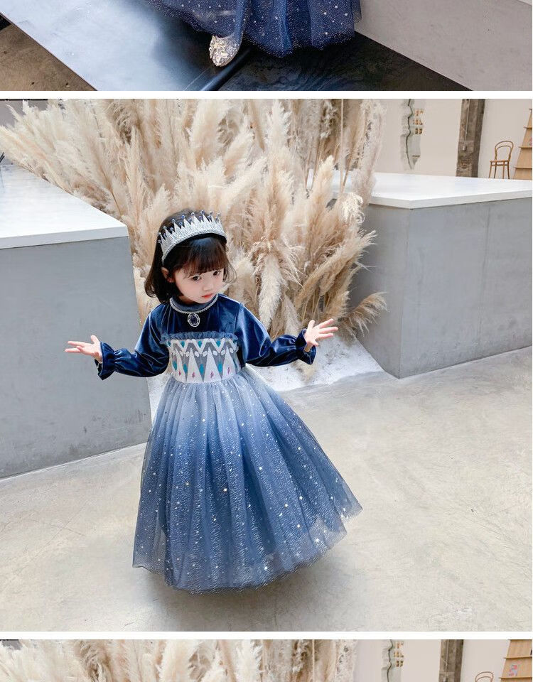 G.duck Girls 2025 Autumn and Winter Frozen Elsa Princess Dress Mesh Gradient Color Princess Dress Dress Plus Velvet Skirt Autumn 120