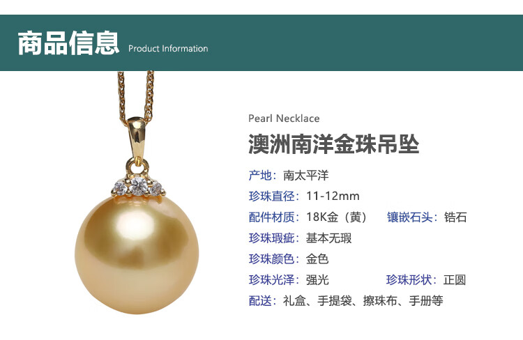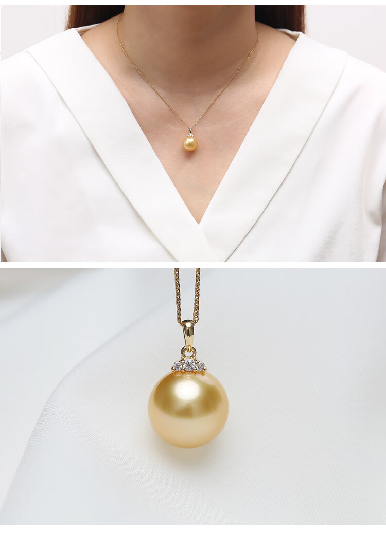 Xiqi Color Australian Gold Bead Pendant Eyelash Seawater Pearl Necklace Unoptimized Pendant Perfect Round 10-11mm