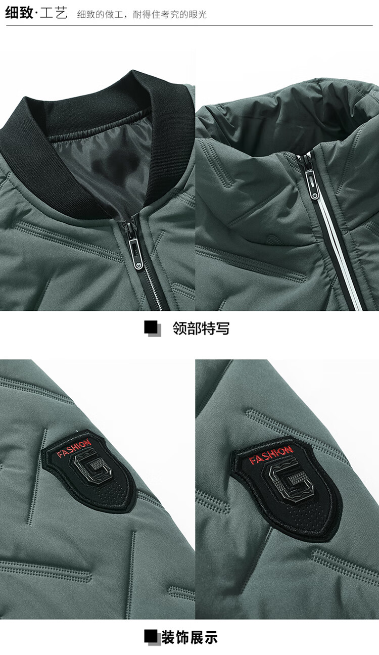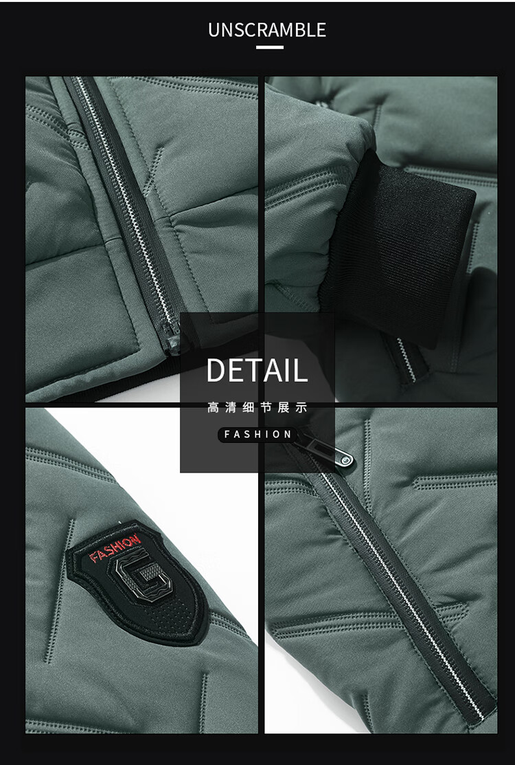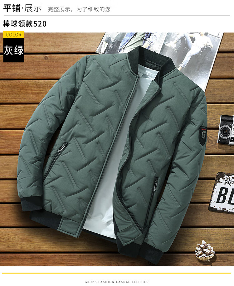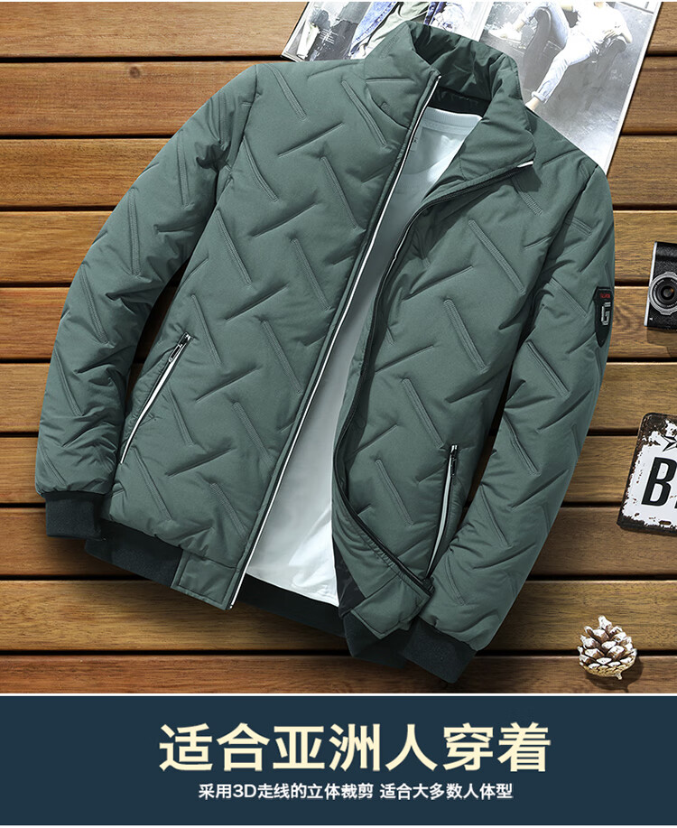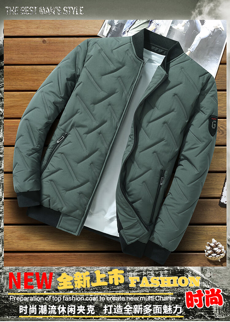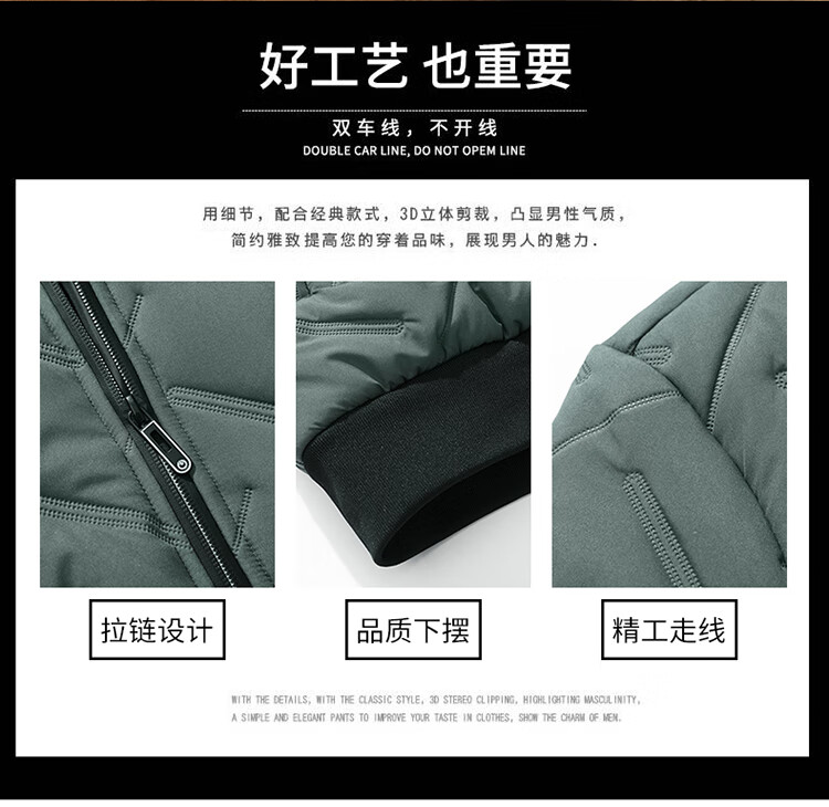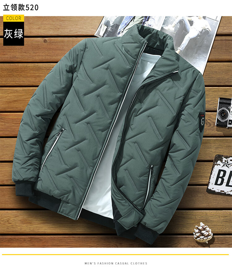 Playboy Cotton Jacket Men's Winter Jacket 2025 Winter Trendy Brand Thickened Jacket Short Warm Cotton Jacket Winter Coldproof Cotton Jacket Men 519 Style Gray Green Stand Collar Upgraded Version/Thickened 2XL 130-145Jin Jin is equal to 0.5 kg