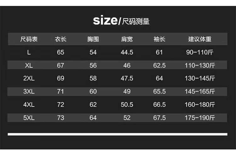 China (cm) 165 / 88-90 170 / 96-98 175 / 108-110 180 / 118-122 185 / 126-130