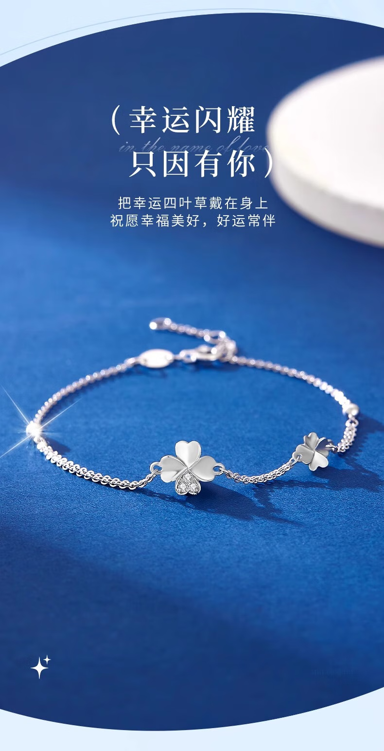 Lao Fengxiang pt950 platinum bracelet for women, lucky four-leaf clover platinum bracelet, practical Valentine's Day birthday gift for girlfriend, platinum lucky four-leaf clover bracelet, about 2.2g, brand gift box