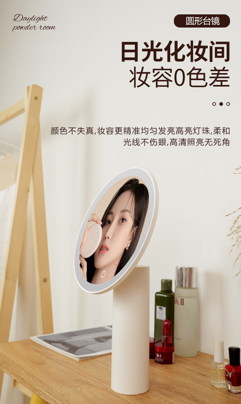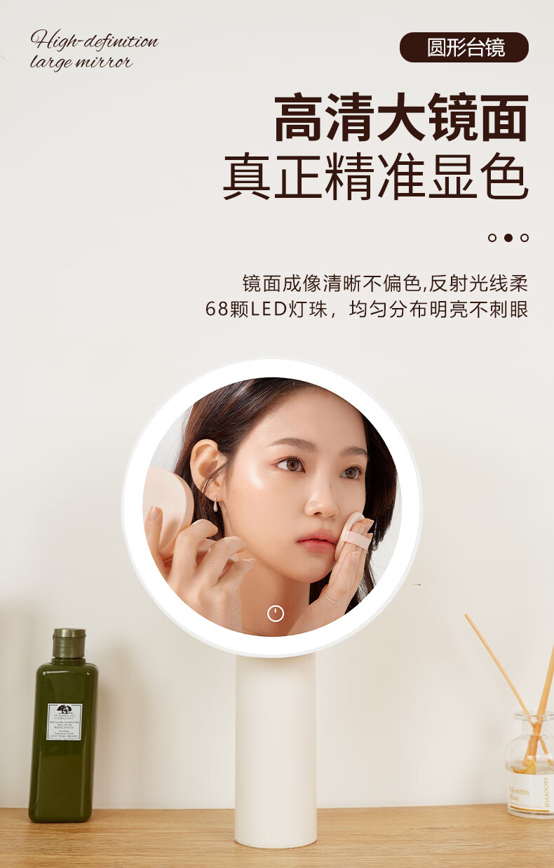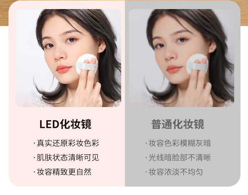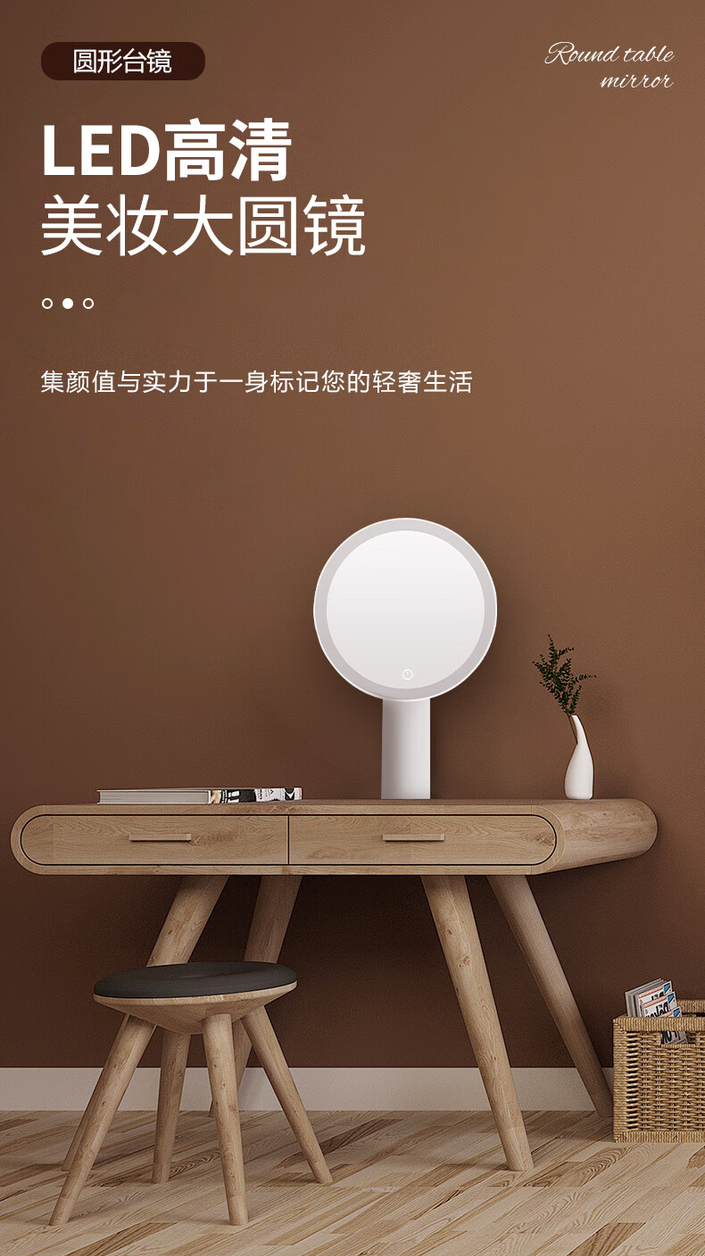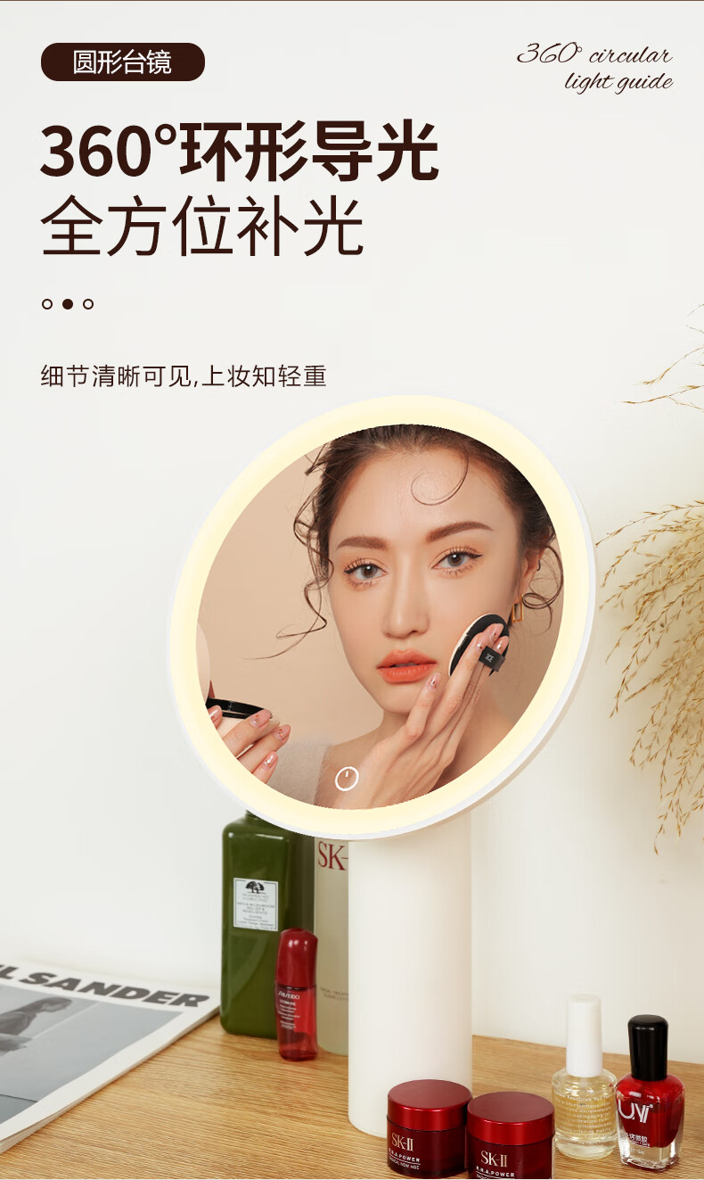 Makeup mirror with light LED smart beauty mirror gift box model Miguang flat desktop desktop high-definition makeup mirror practical gift for girls, friends and wife New Year's Day birthday gift white