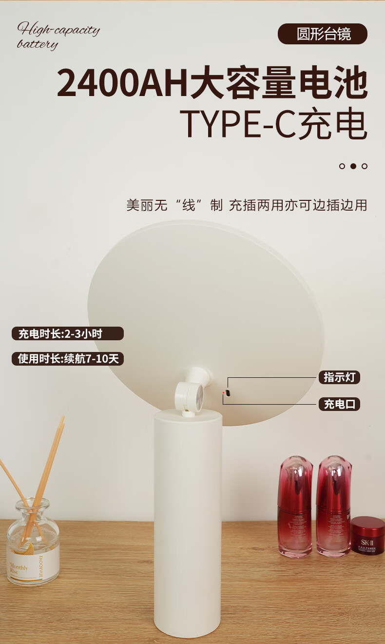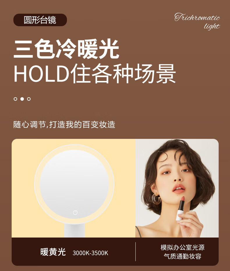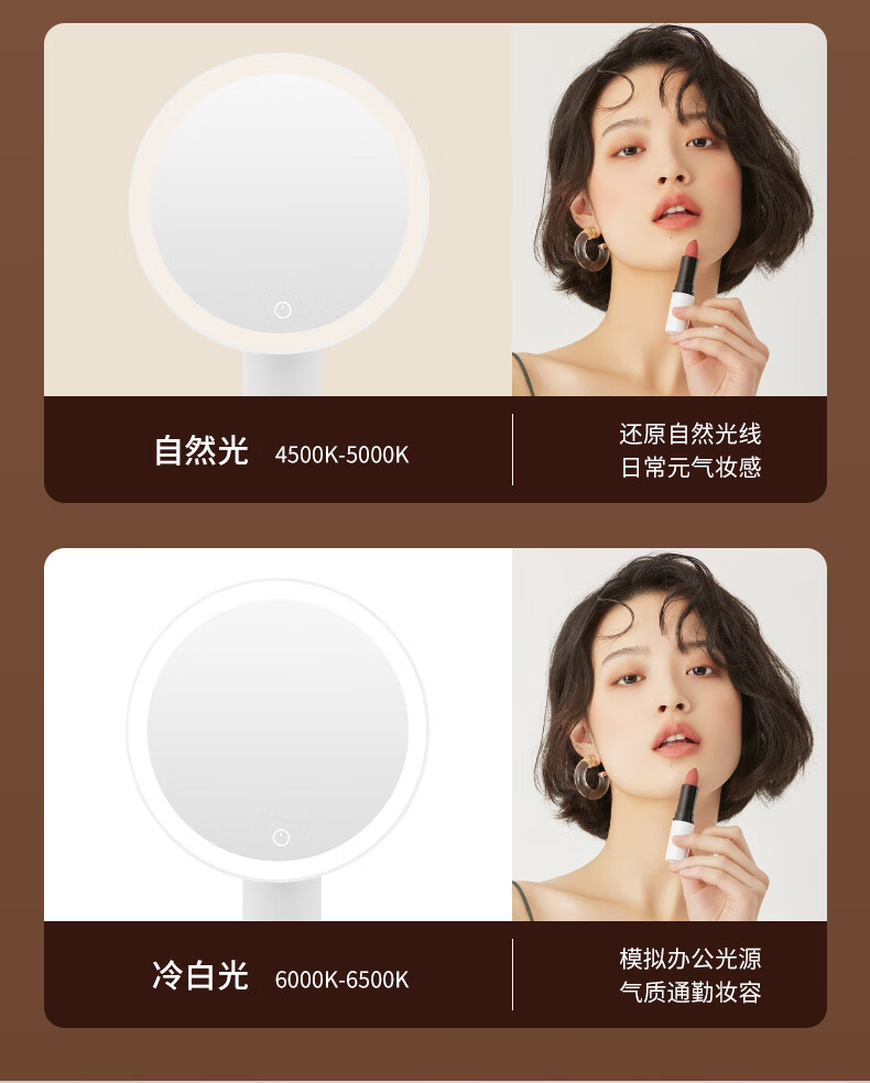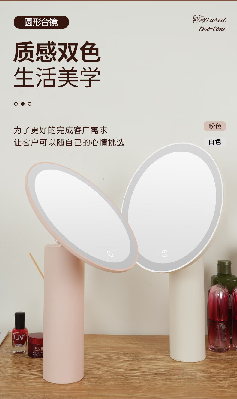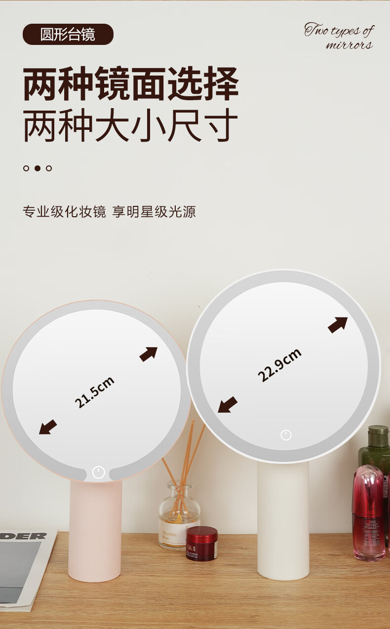 Makeup mirror with light LED smart beauty mirror gift box model Miguang flat desktop desktop high-definition makeup mirror practical gift for girls, friends and wife New Year's Day birthday gift white