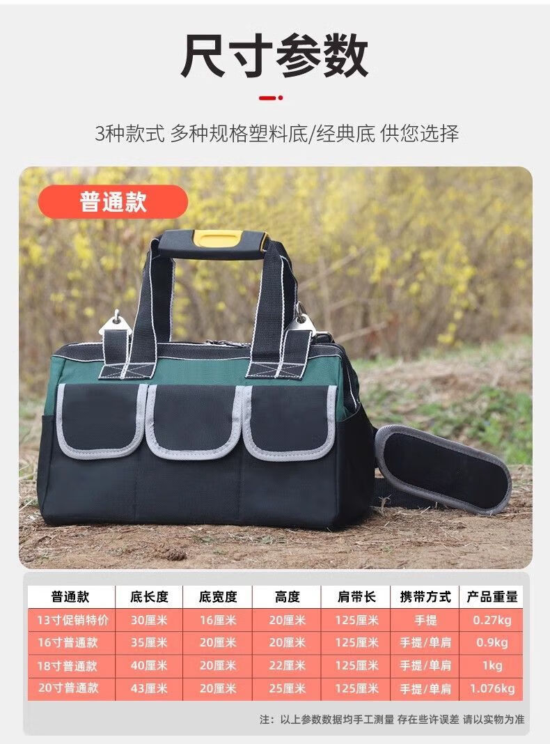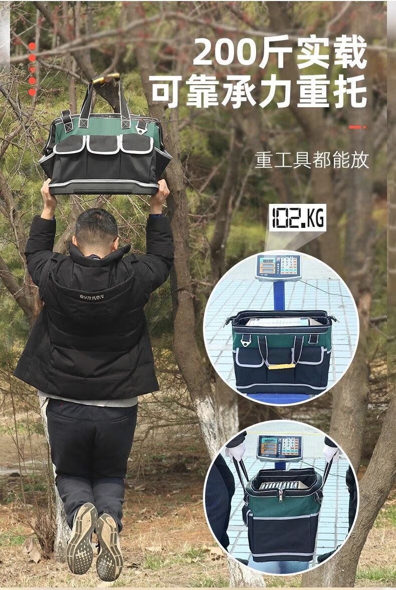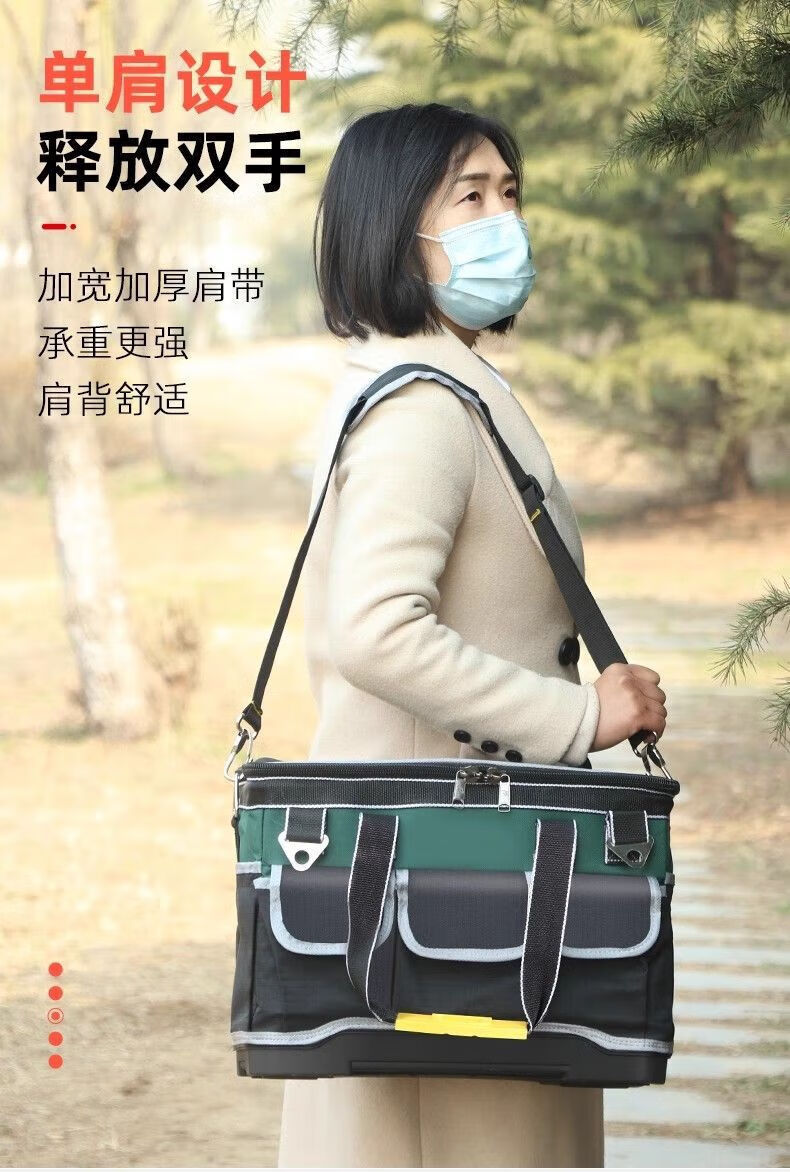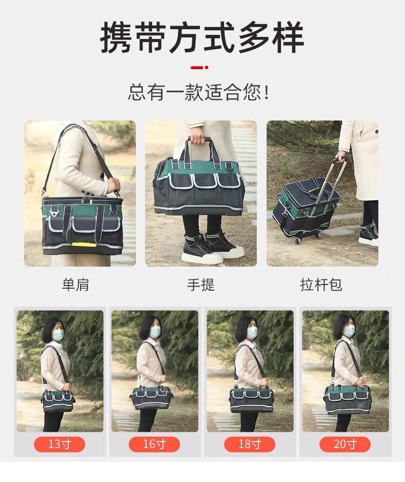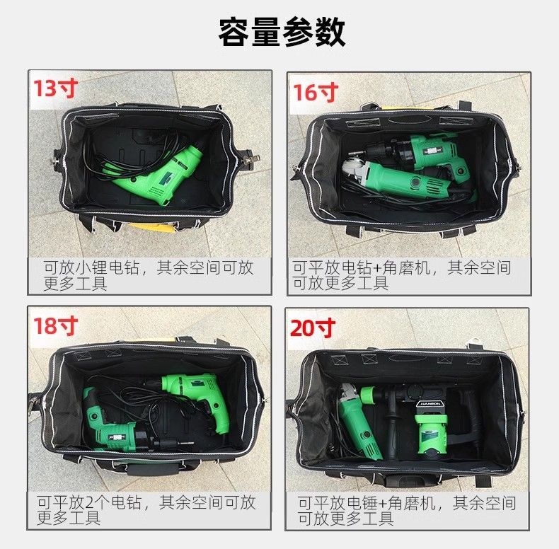Runhuanian Multifunctional Tool Bag Thickened Wear-Resistant Tool Bag Portable Shoulder Canvas Bag Men's Electrician Maintenance Site Durable Trolley Square Bag-18 Inch