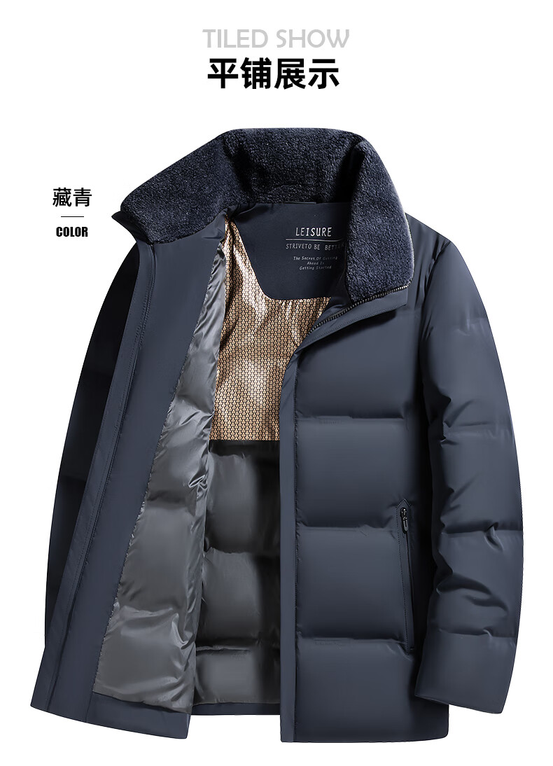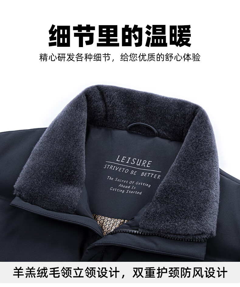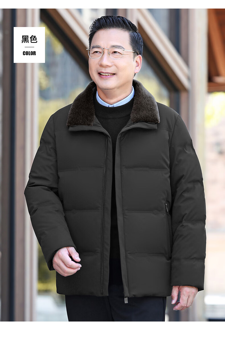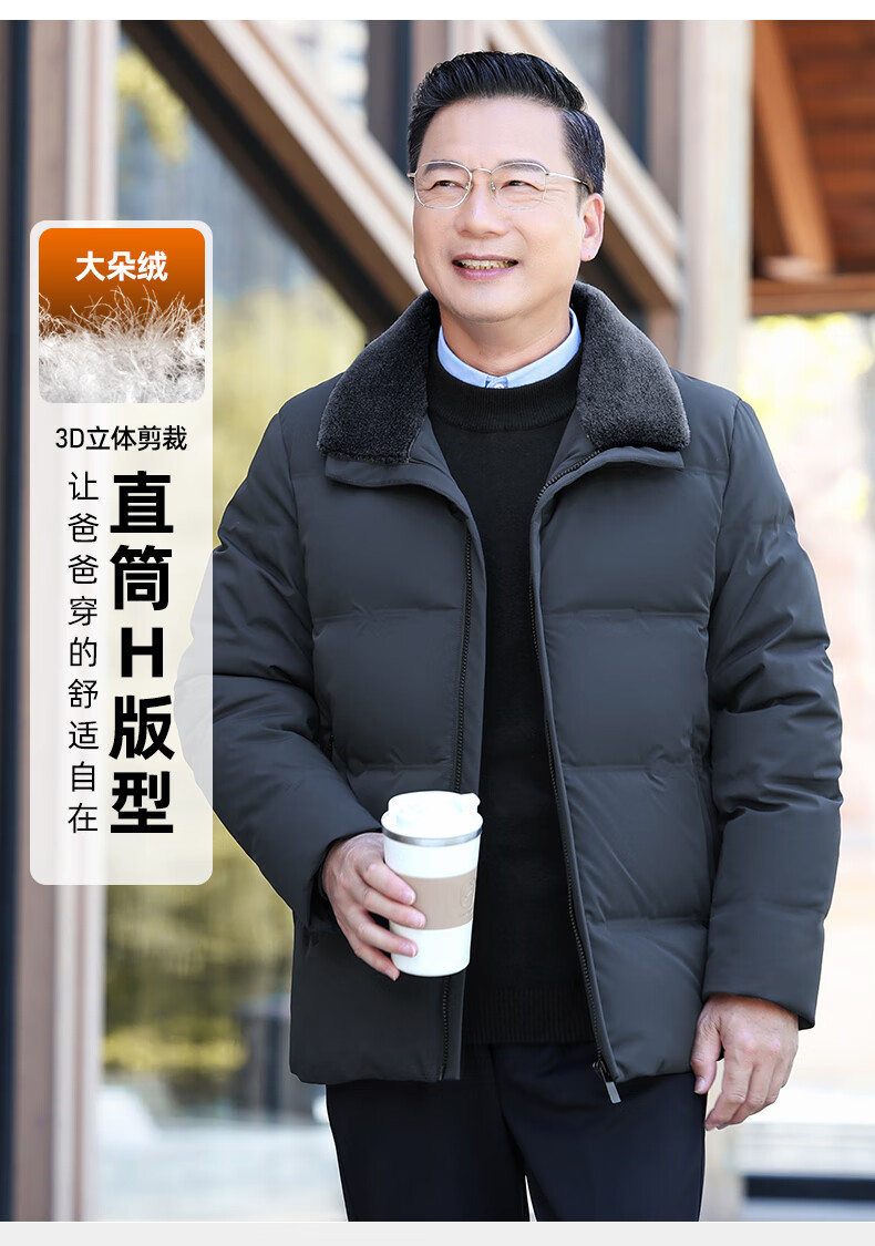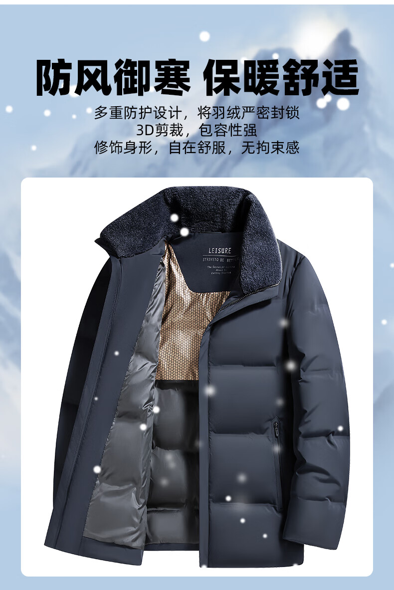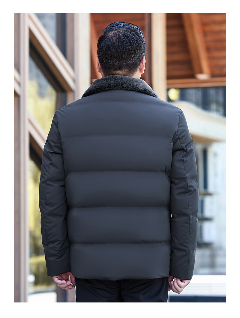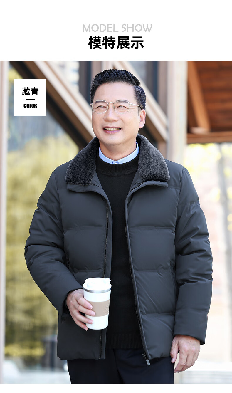 Duck Goose Down + Graphene Wool Collar Down Jacket Men's Middle-aged and Elderly Short Business Casual Dad Jacket JH Navy Blue 2XL (185/100A)