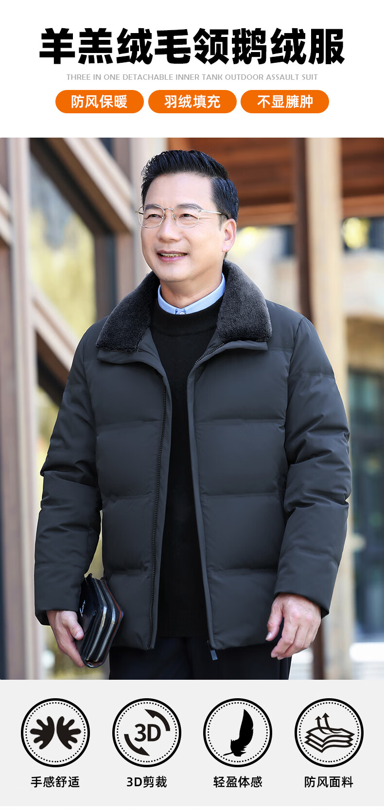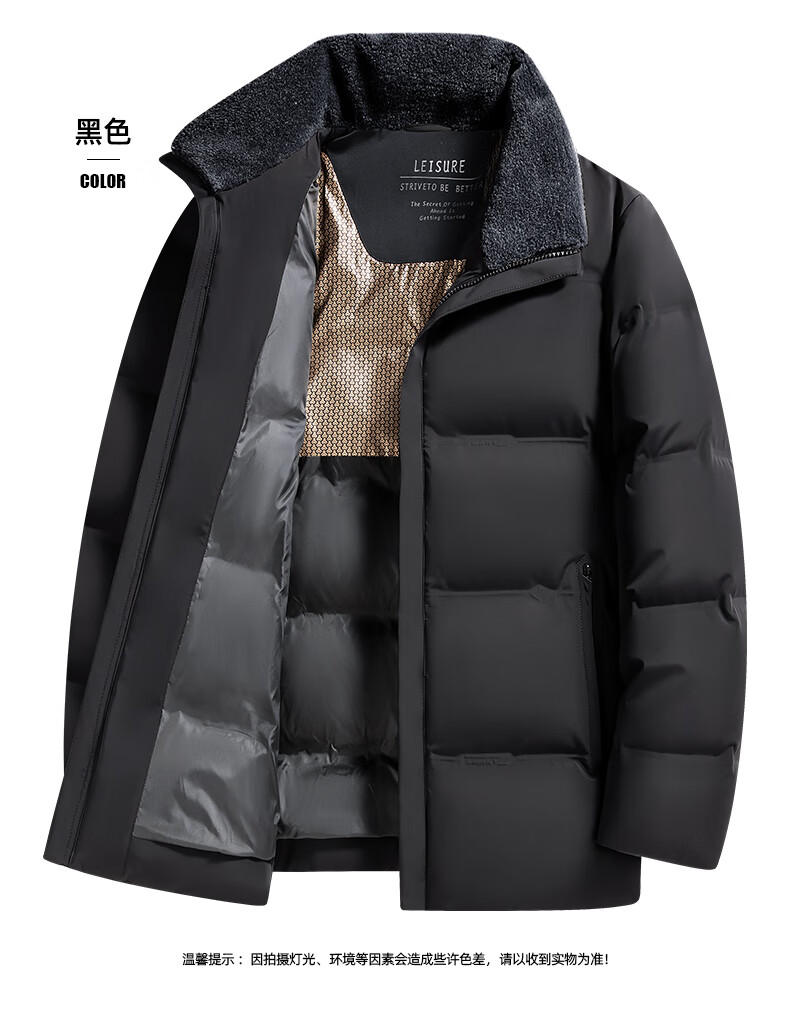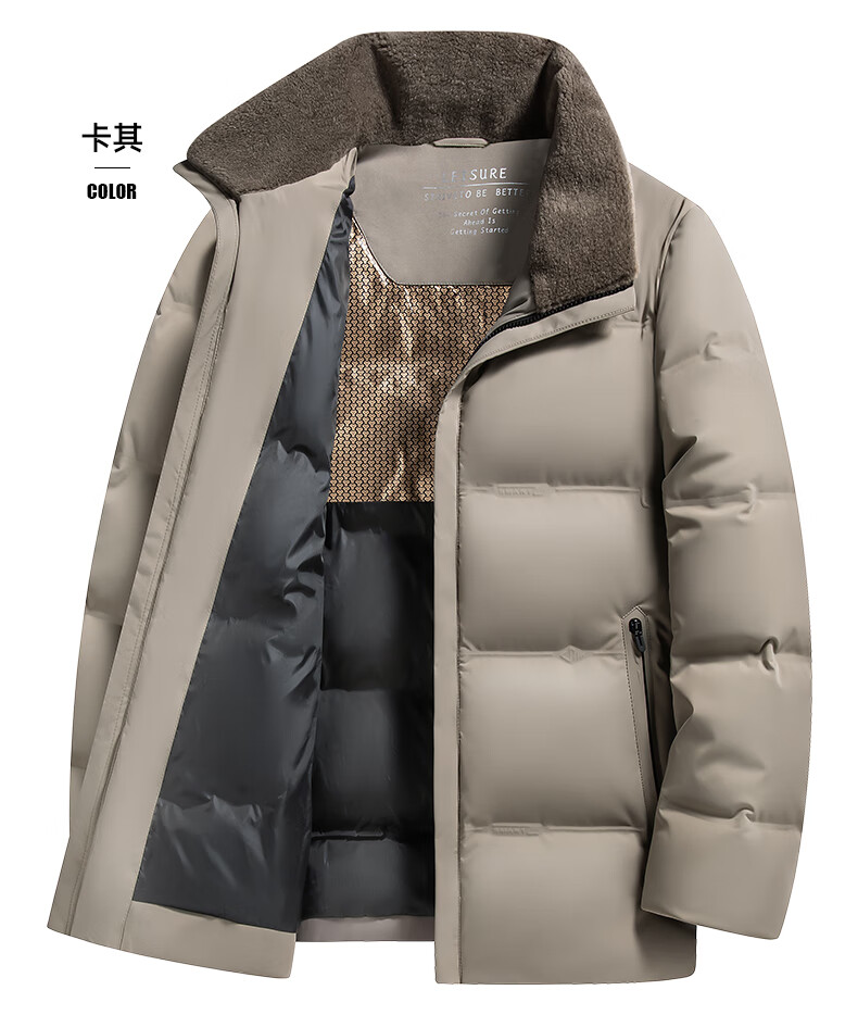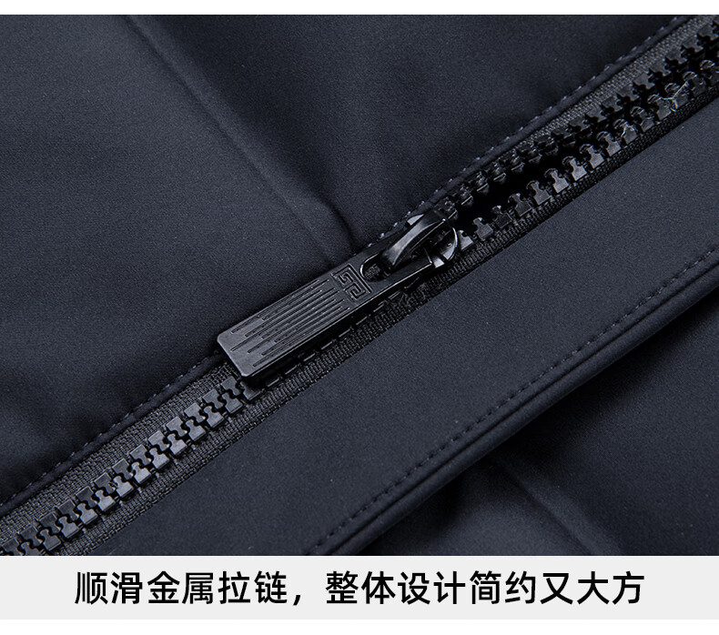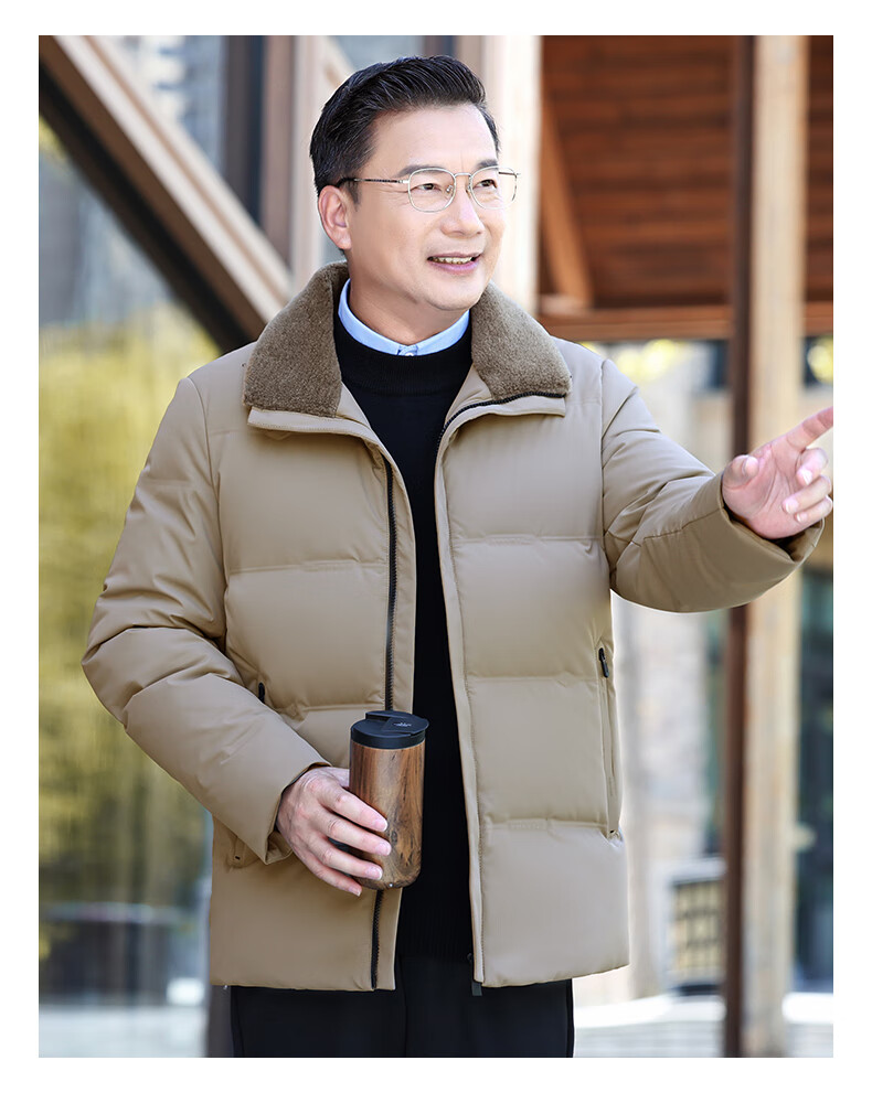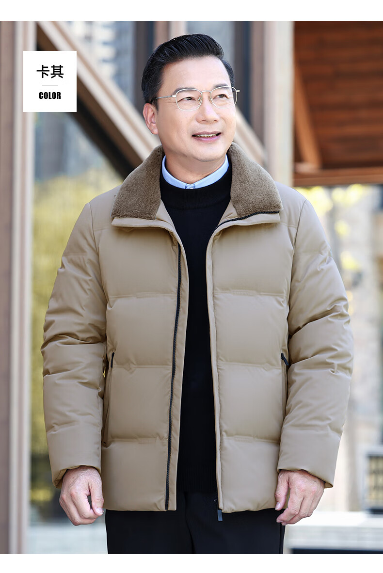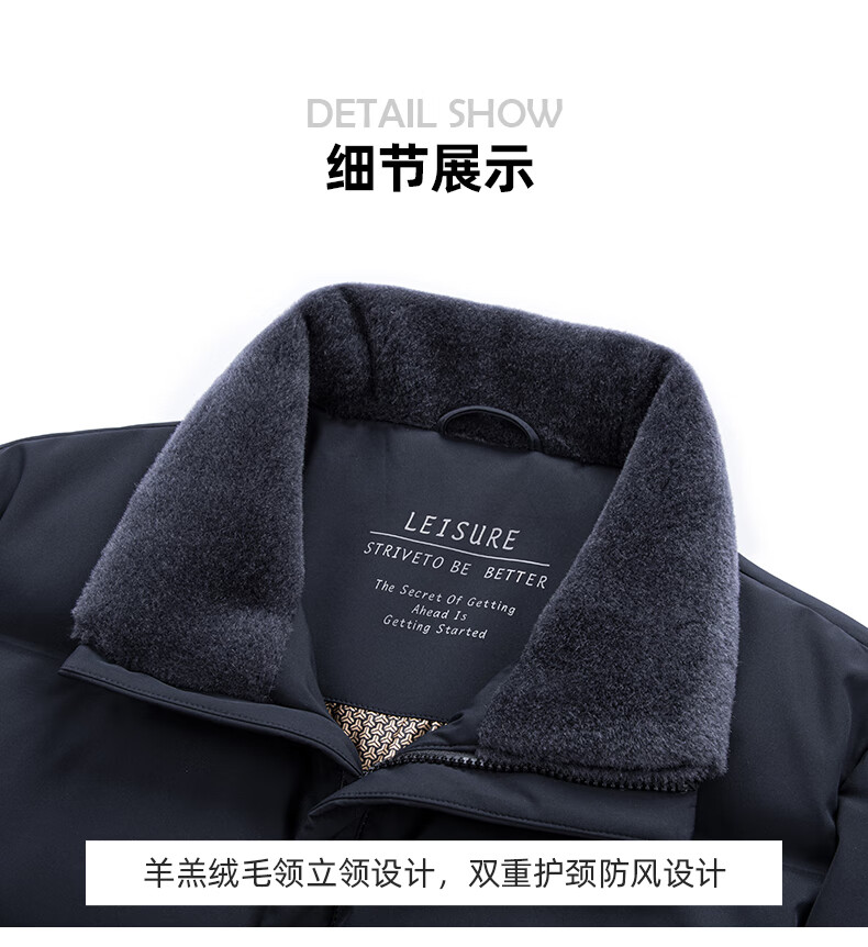 Duck Goose Down + Graphene Wool Collar Down Jacket Men's Middle-aged and Elderly Short Business Casual Dad Jacket JH Navy Blue 2XL (185/100A)