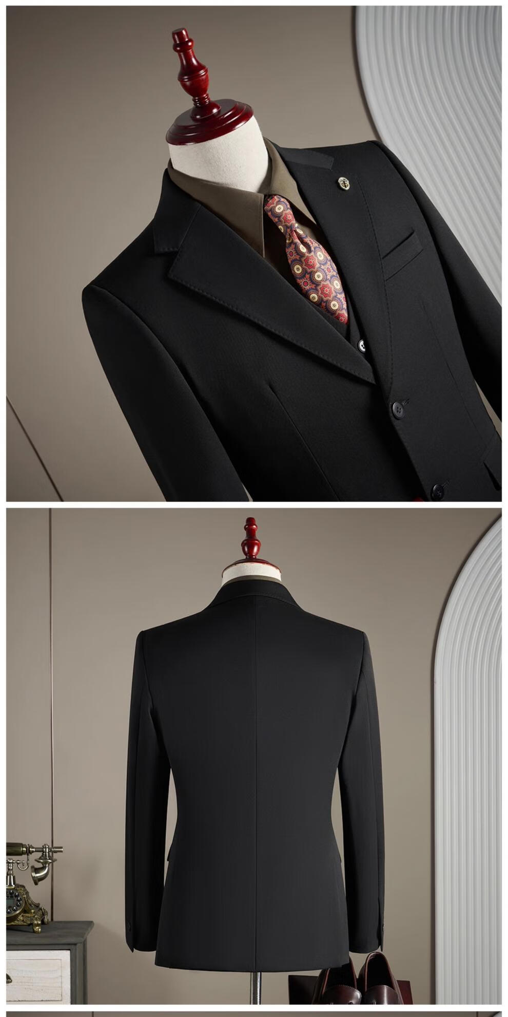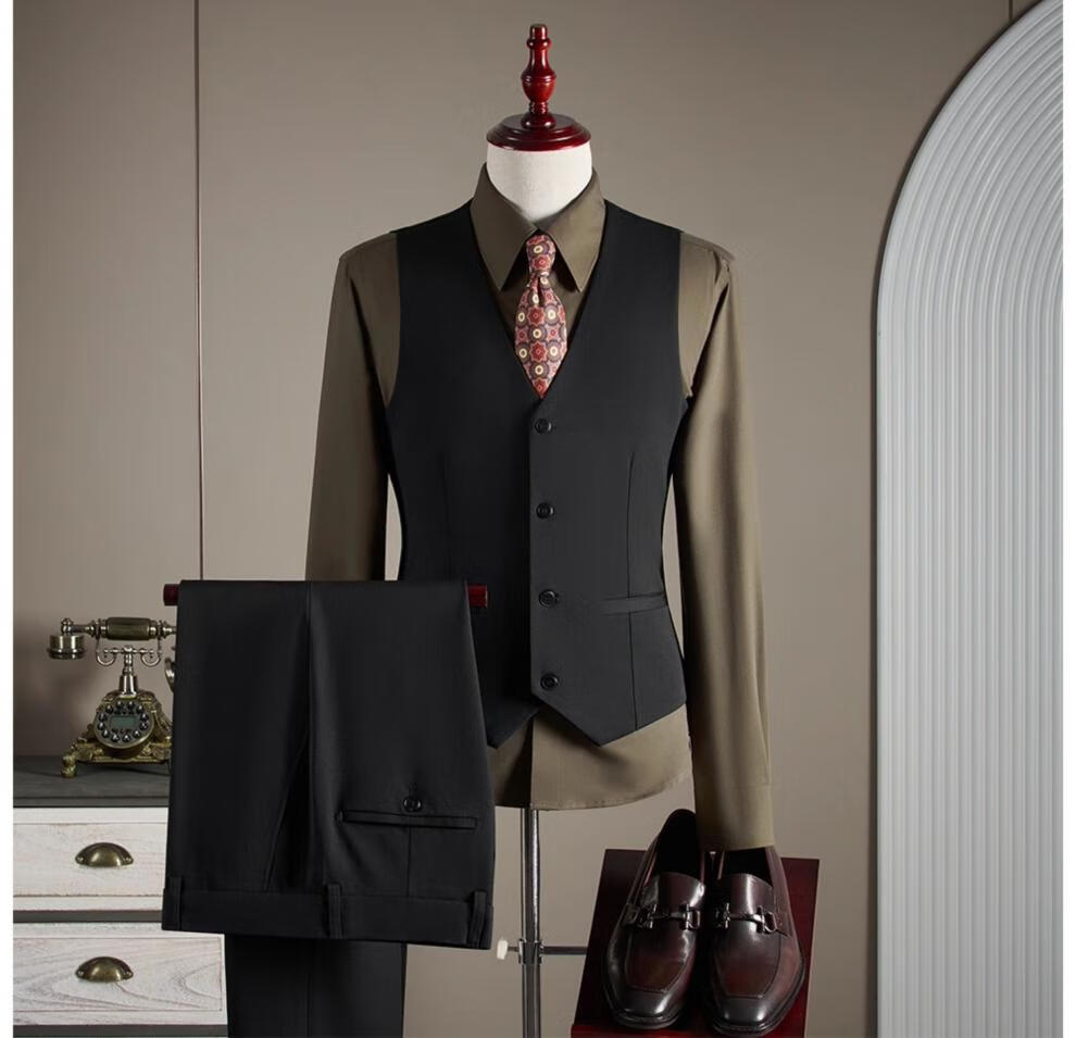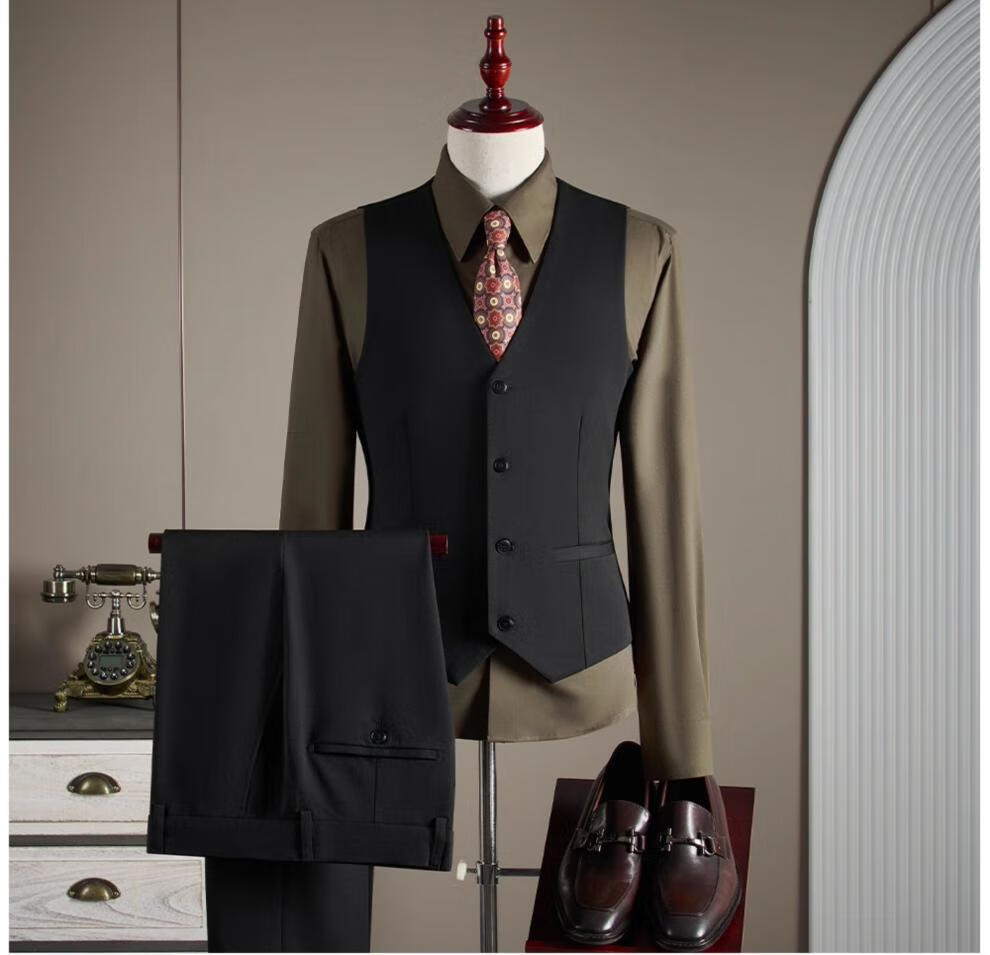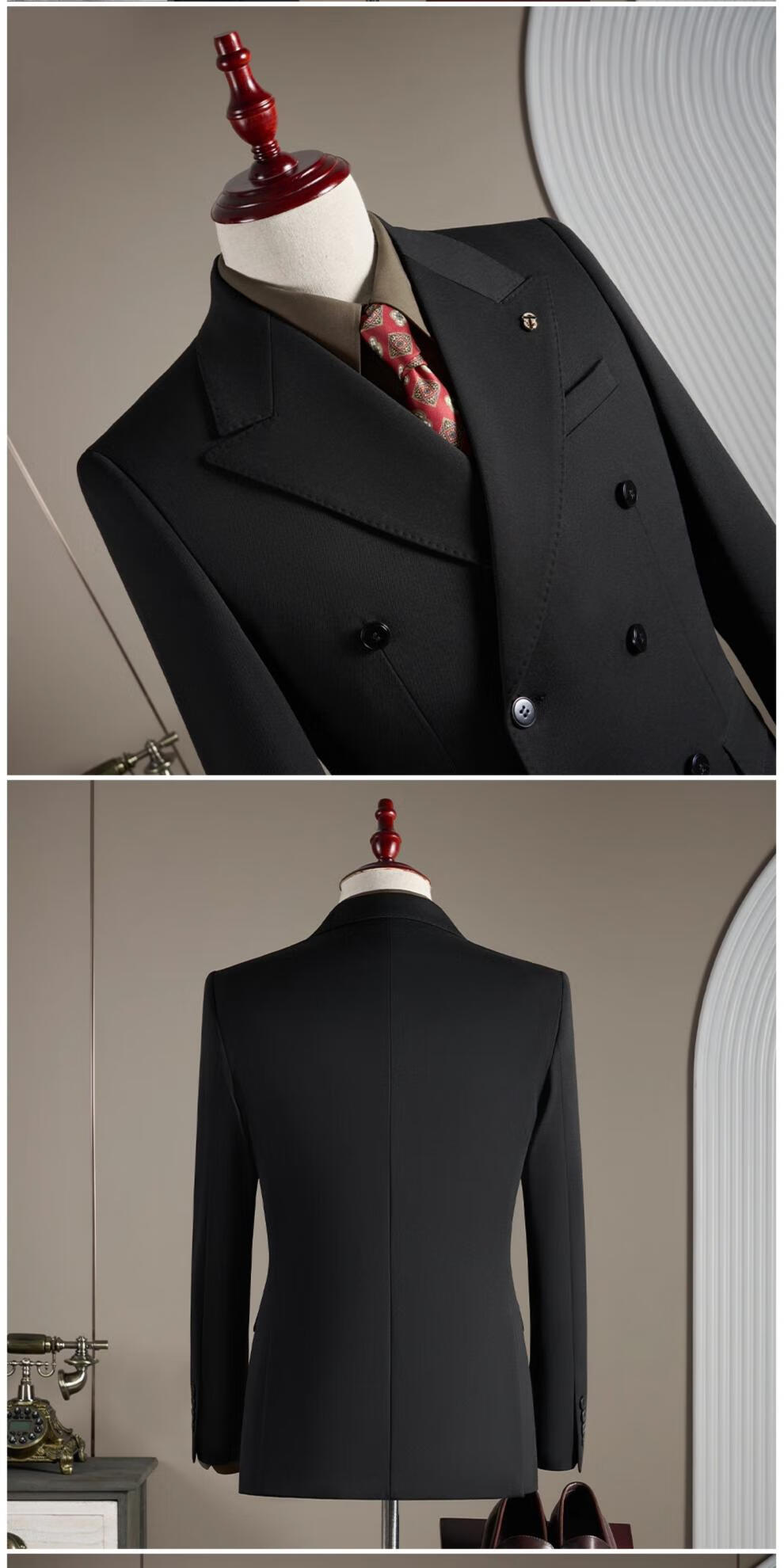 Pierre Cardin high-end men's wool suit suit engagement dress groom wedding business black suit professional formal three-piece suit double-breasted black (suit + vest + trousers) 3XL 56