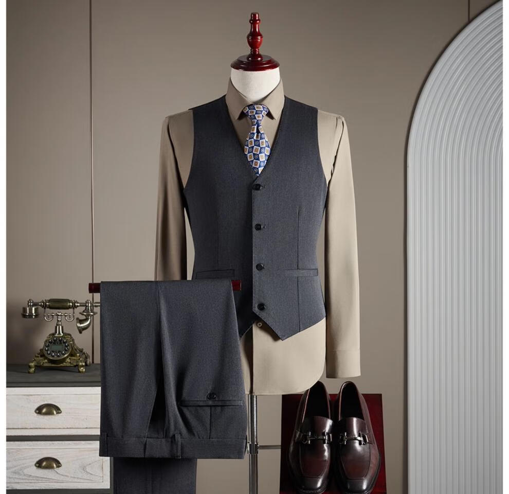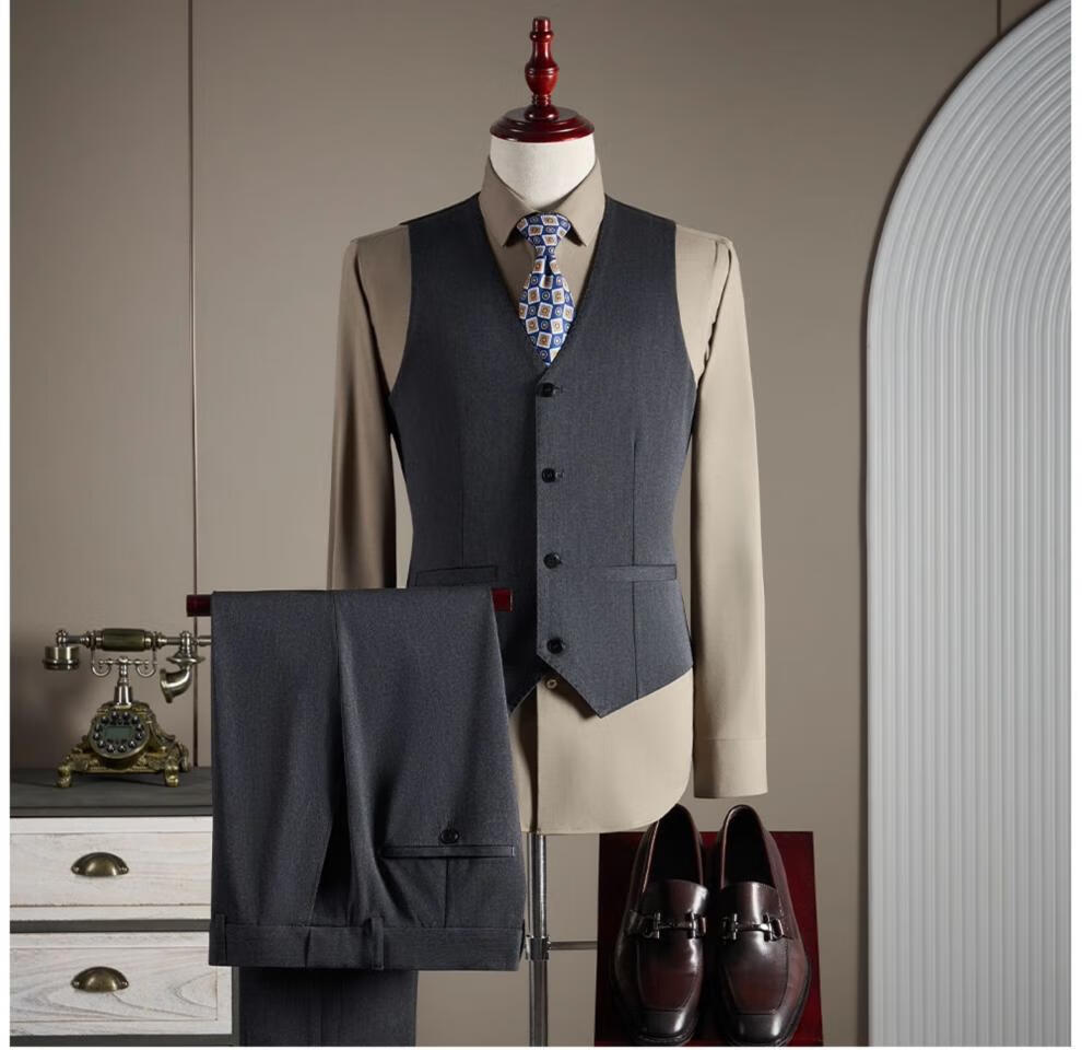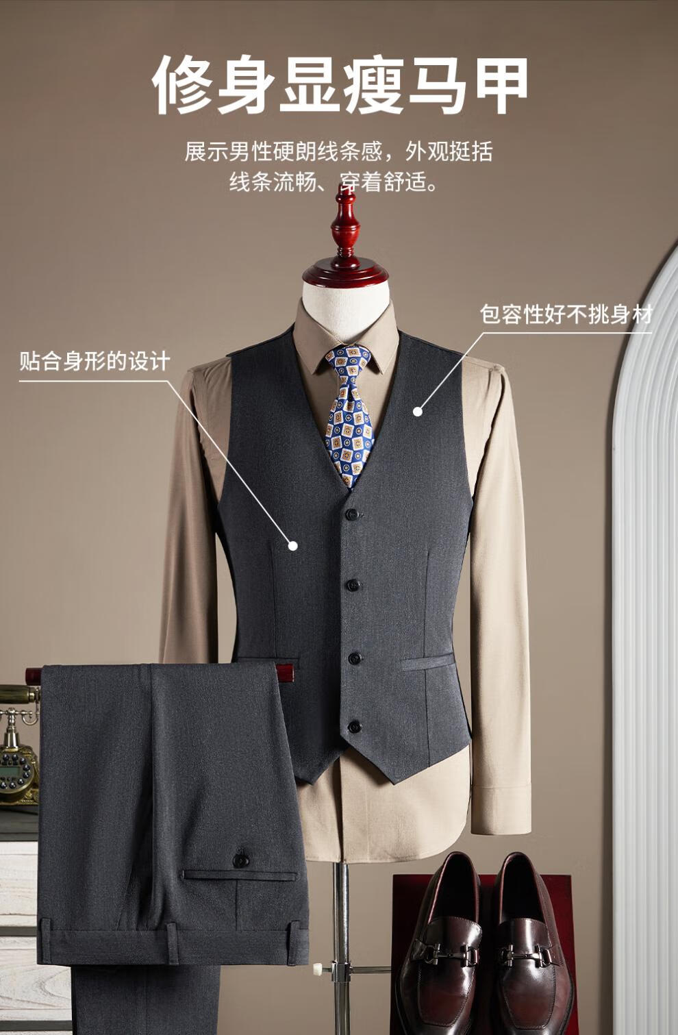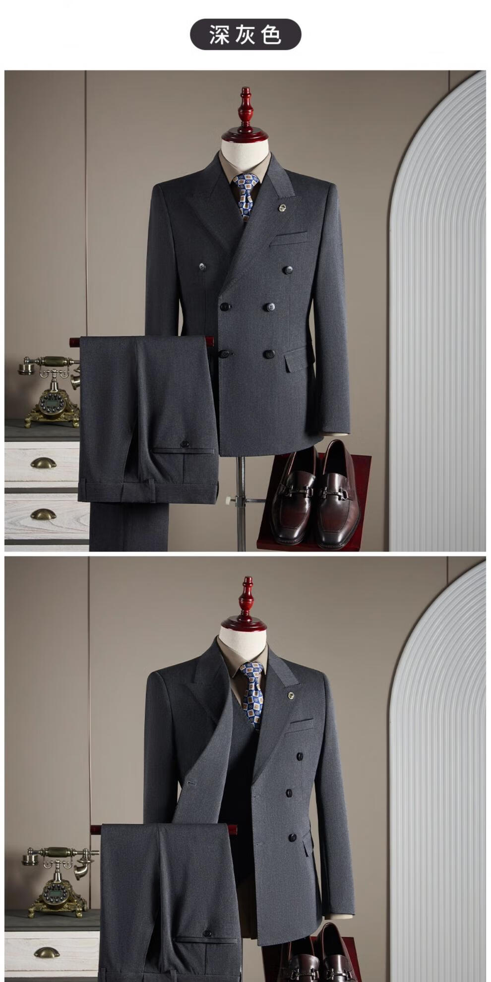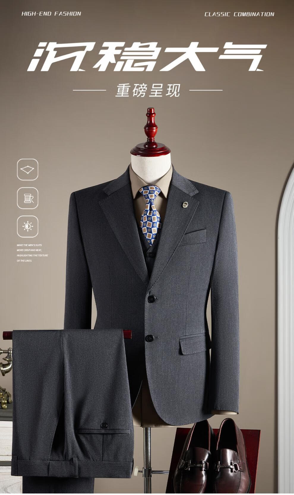 Pierre Cardin high-end men's wool suit suit engagement dress groom wedding business black suit professional formal three-piece suit double-breasted black (suit + vest + trousers) 3XL 56