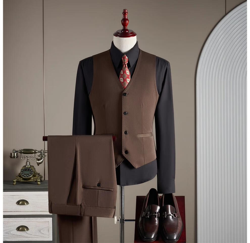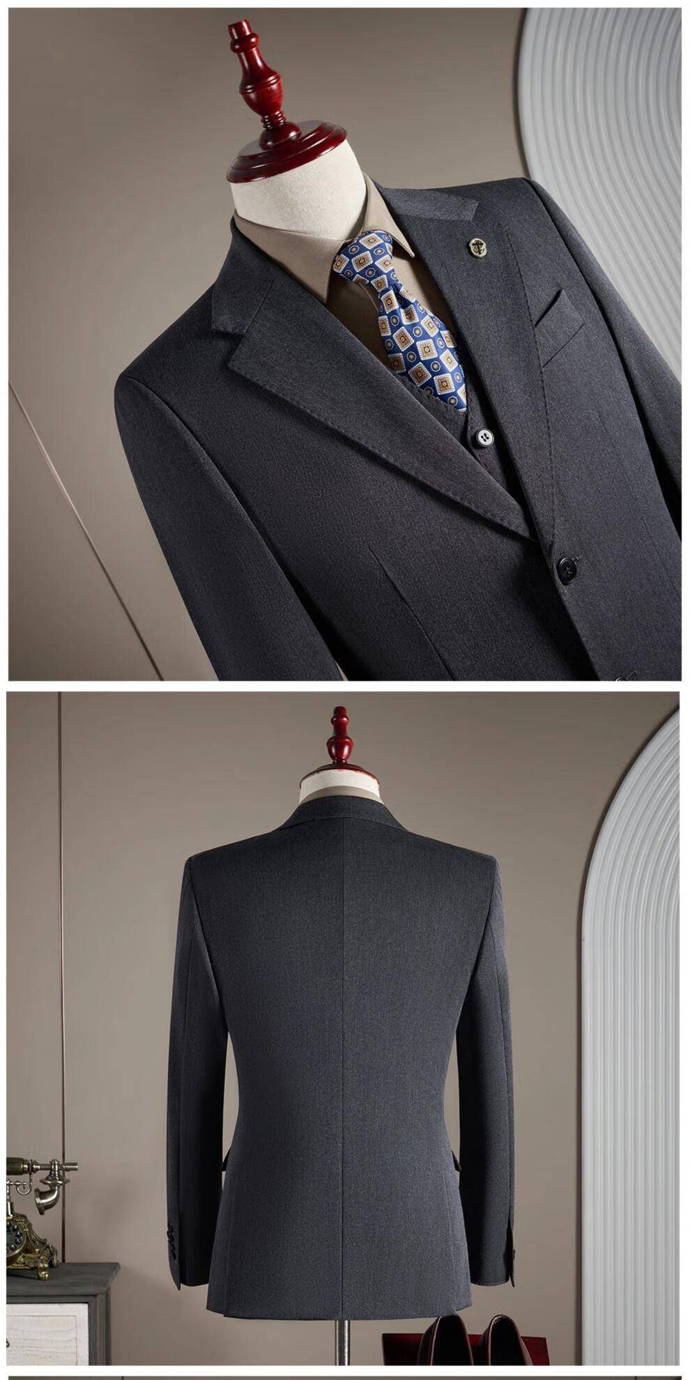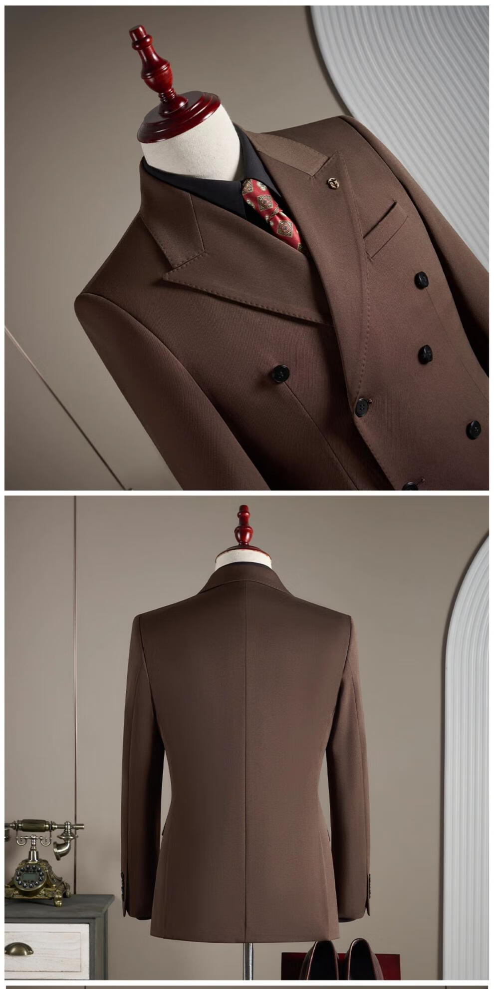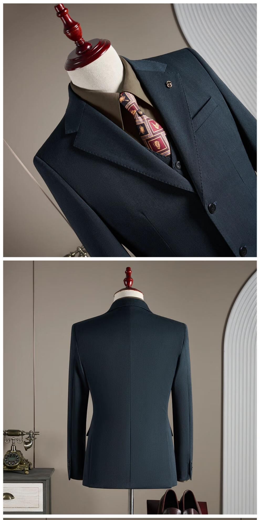 Pierre Cardin high-end men's wool suit suit engagement dress groom wedding business black suit professional formal three-piece suit double-breasted black (suit + vest + trousers) 3XL 56