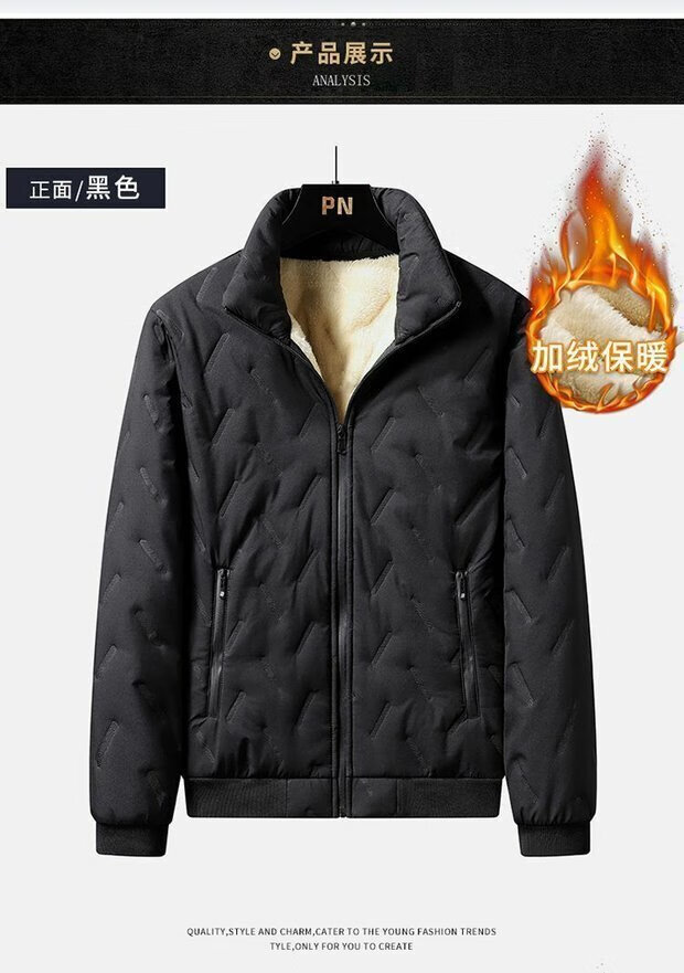 Jacket for work, men's winter warm cotton coat, wear-resistant, dirt-resistant, cold-proof, plus velvet, thickened work sherpa jacket, black XL recommended 115-130 Jin Jin equals 0.5 kg