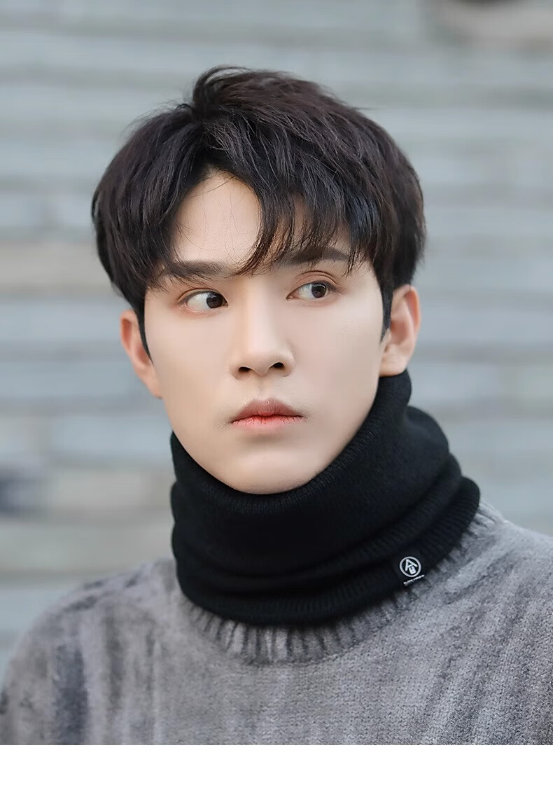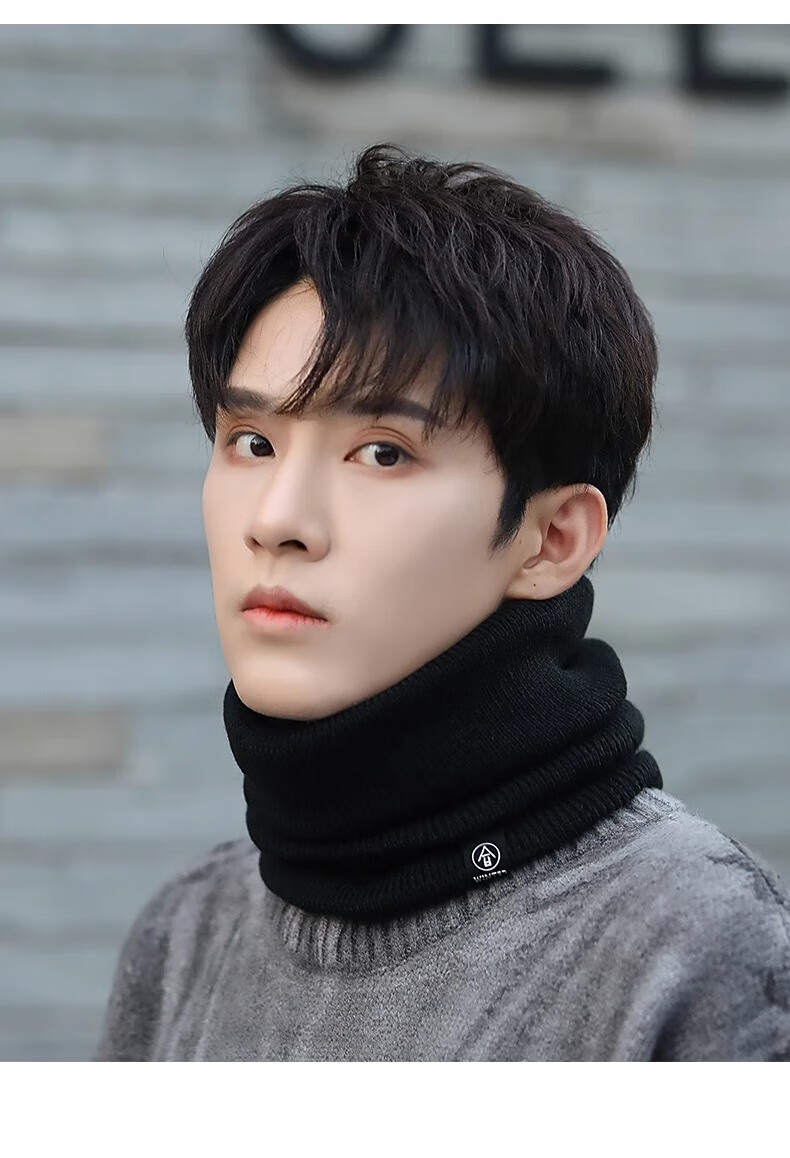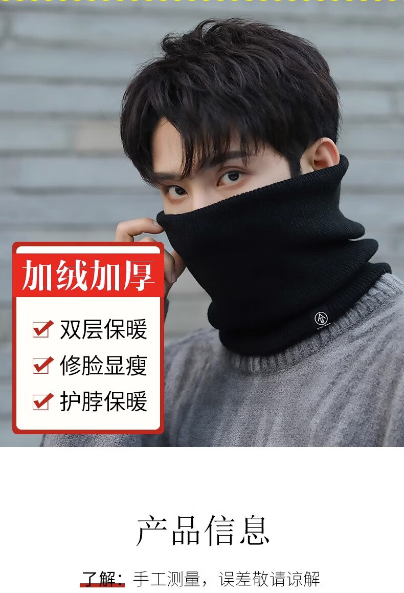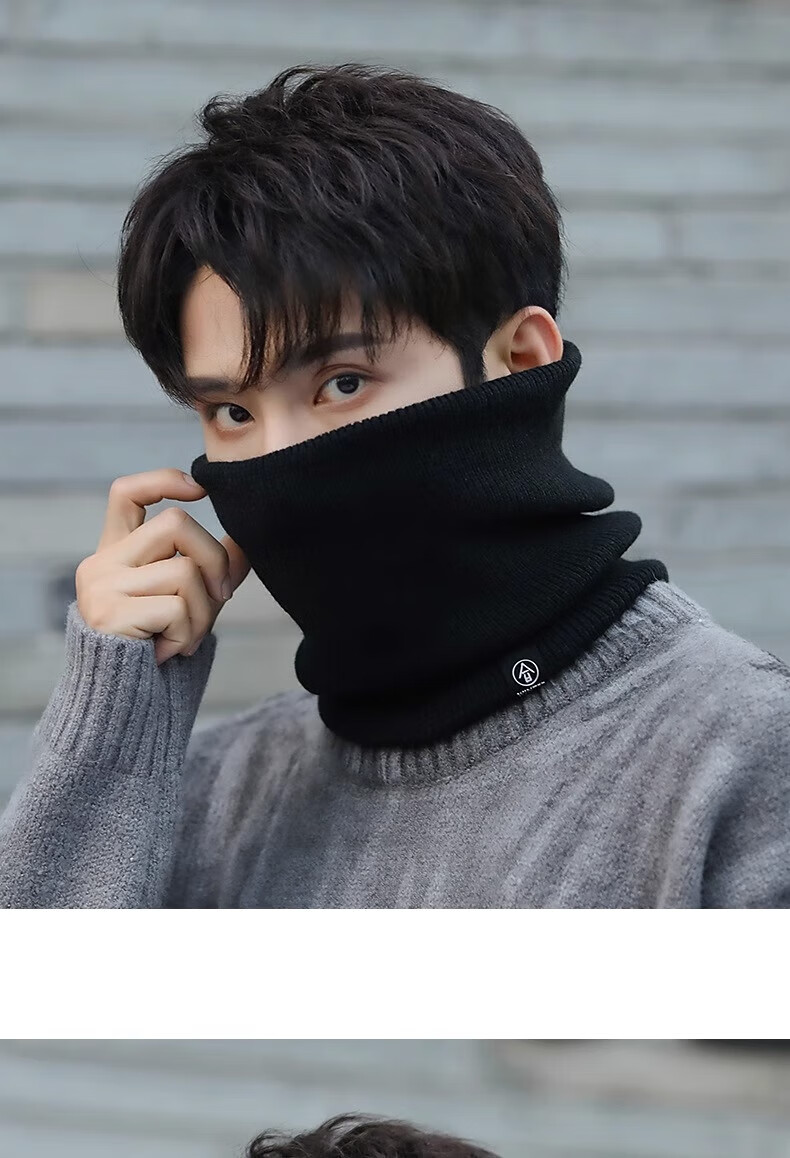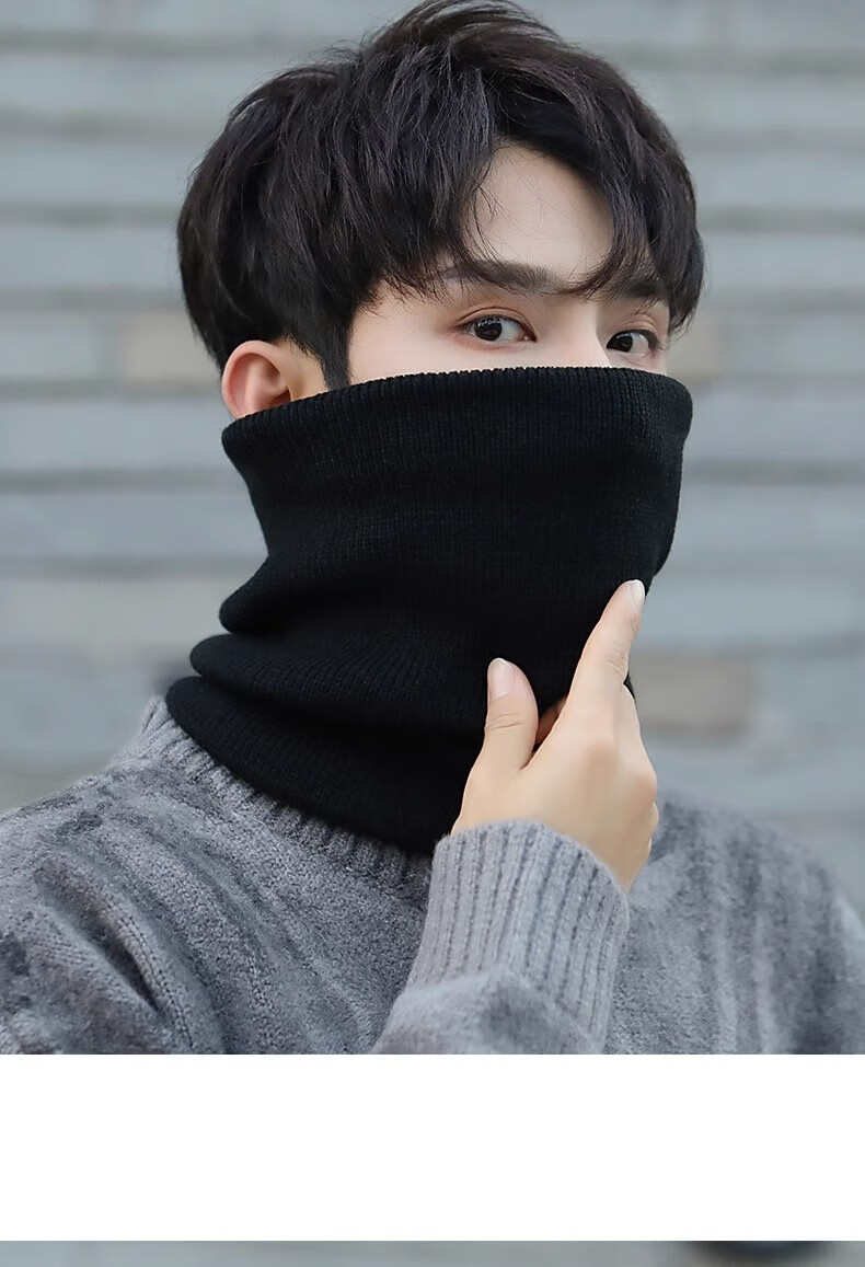 Winter scarf, unisex, thickened velvet, outdoor riding mask, versatile knitted neck gaiter, black