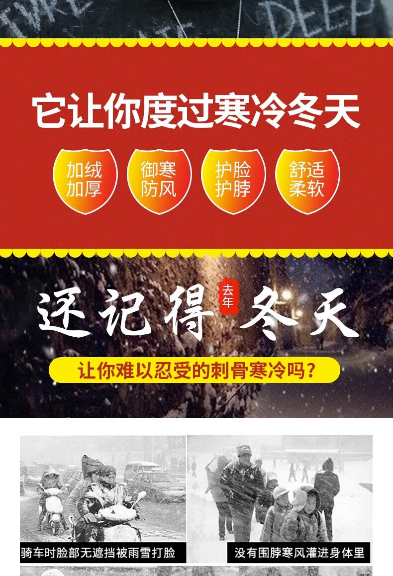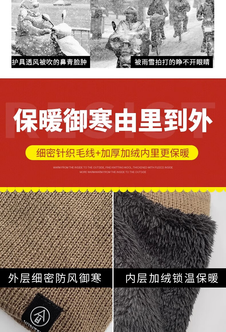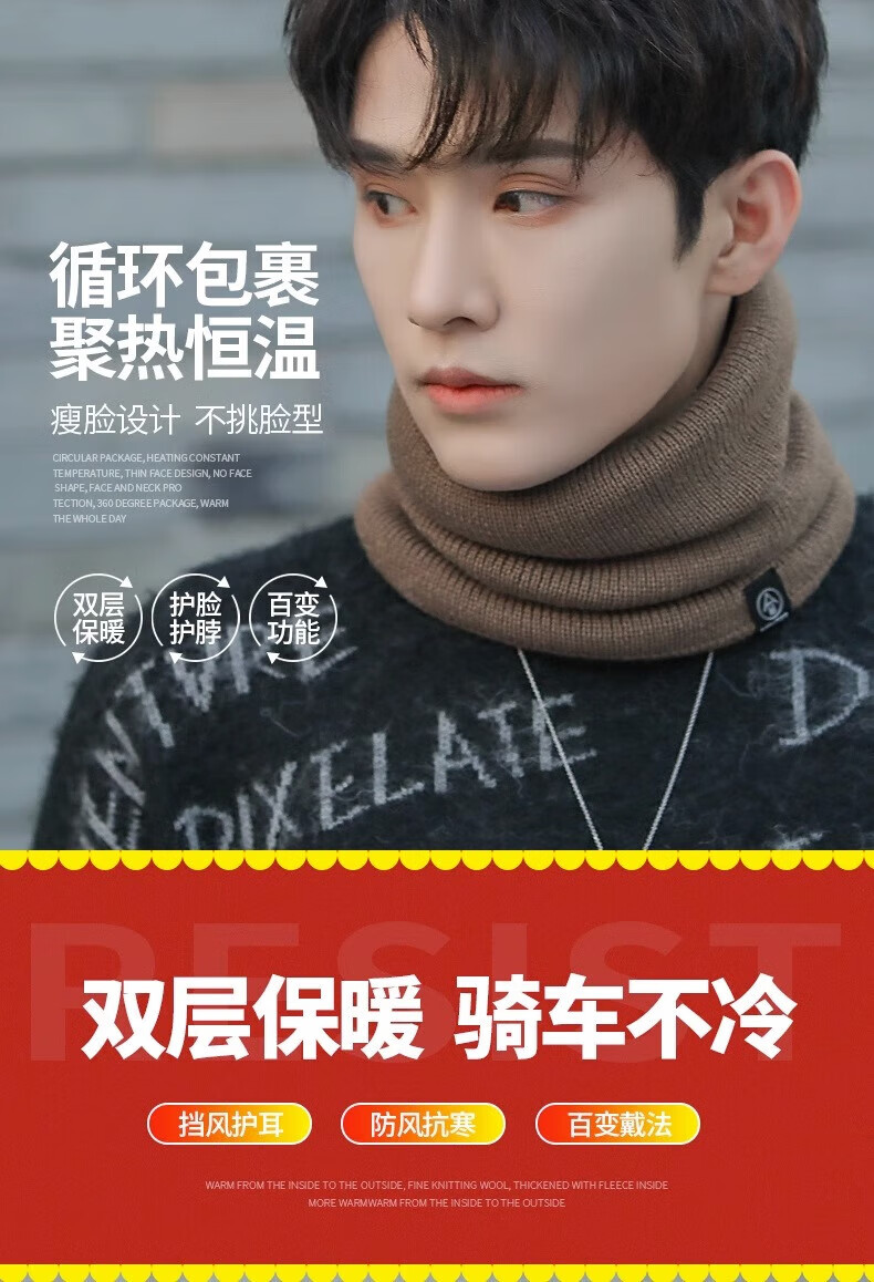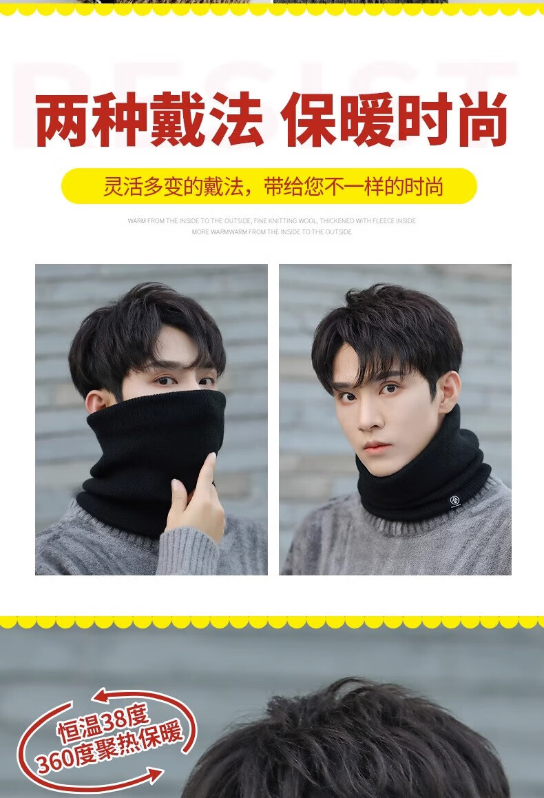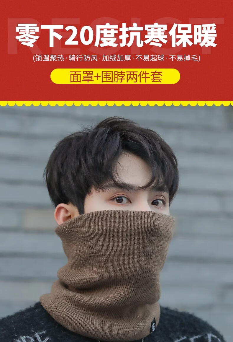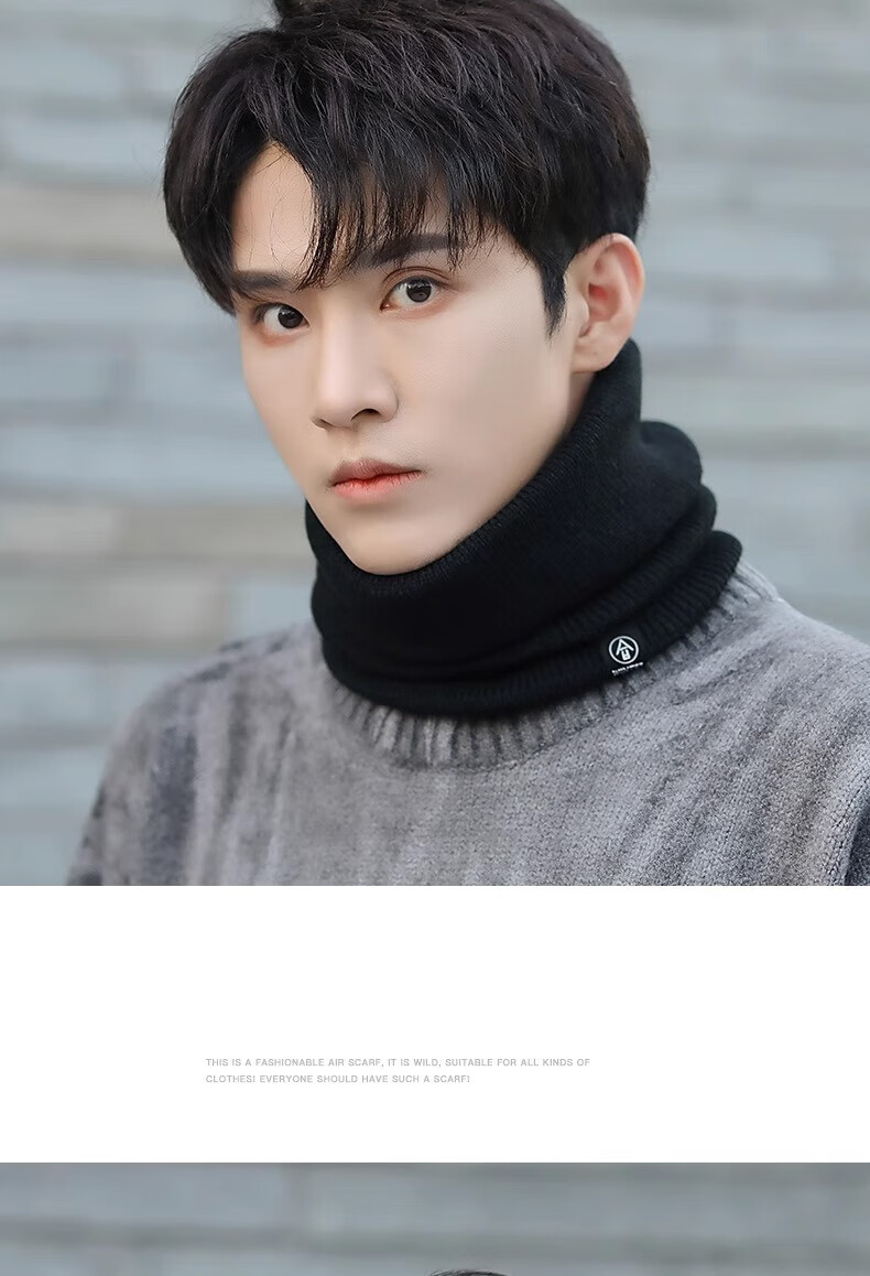 Winter scarf, unisex, thickened velvet, outdoor riding mask, versatile knitted neck gaiter, black