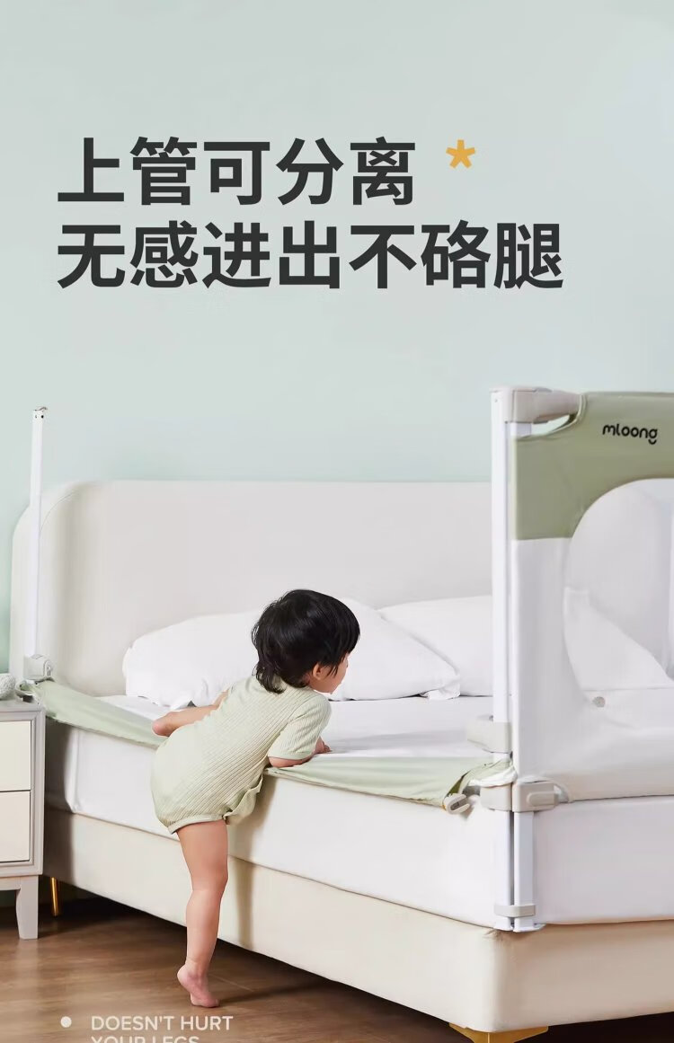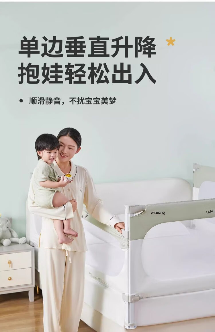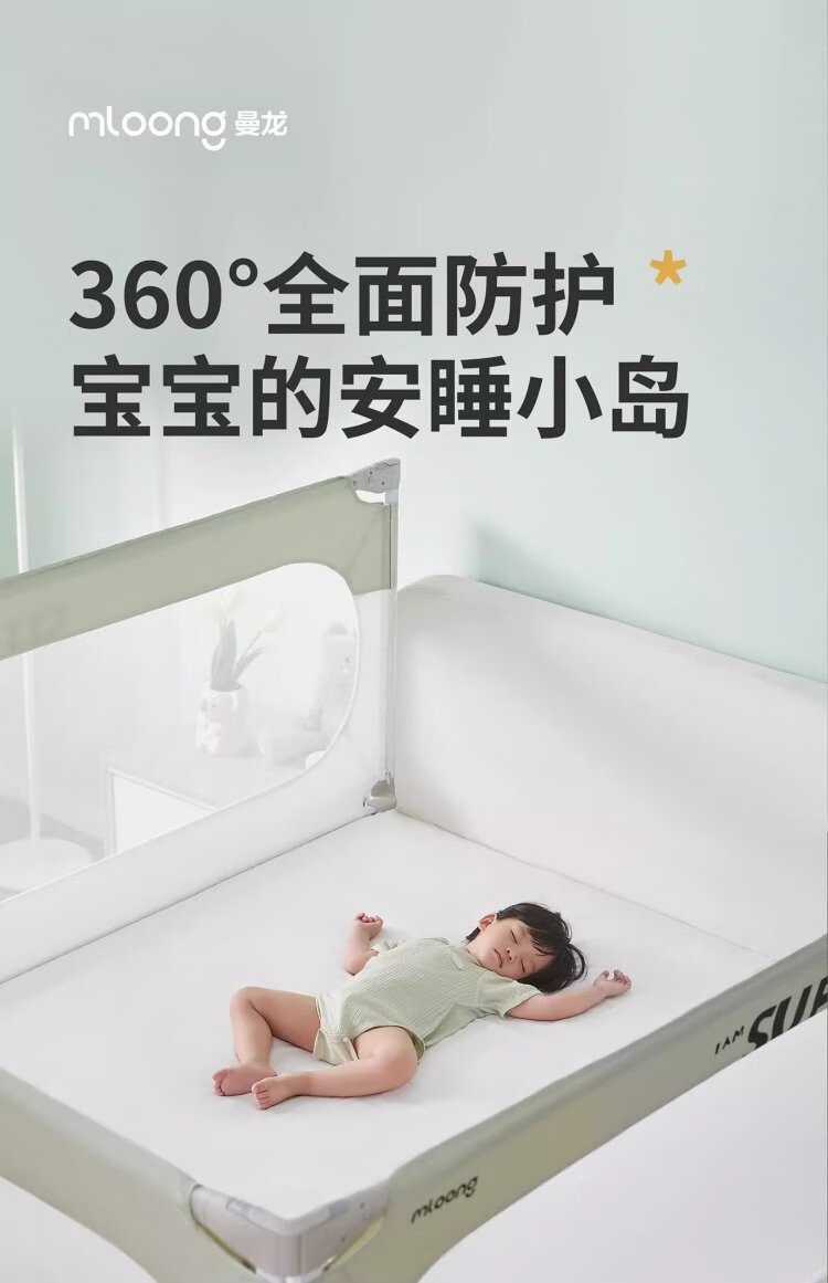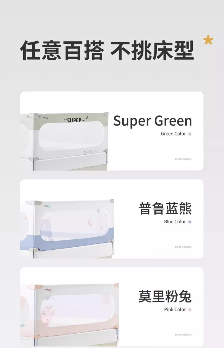 Manlong bed fence baby anti-fall guardrail children's bedside anti-fall guardrail baby raised bed guardrail old old model Pru Blue Bear 1.8m single-sided