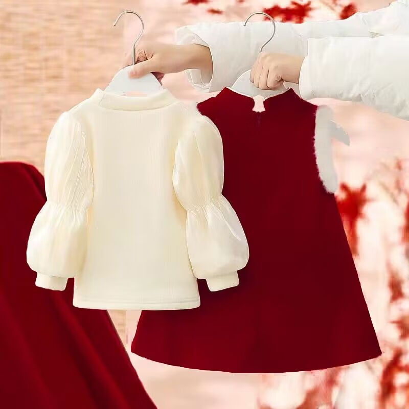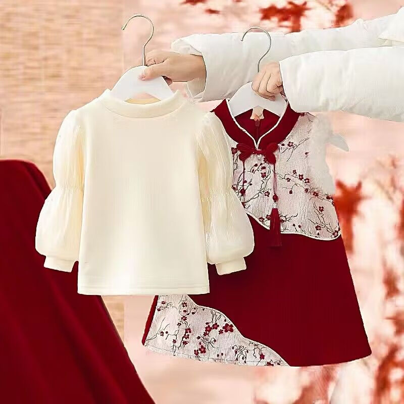 HAL.DUCK Girls' Hanfu Dress Set Autumn and Winter 2026 New Baby One-Year-Old Dress New Year's Eve Chinese Style Cheongsam Dress Brand Plum Blossom Skirt 2-piece Set Red 80